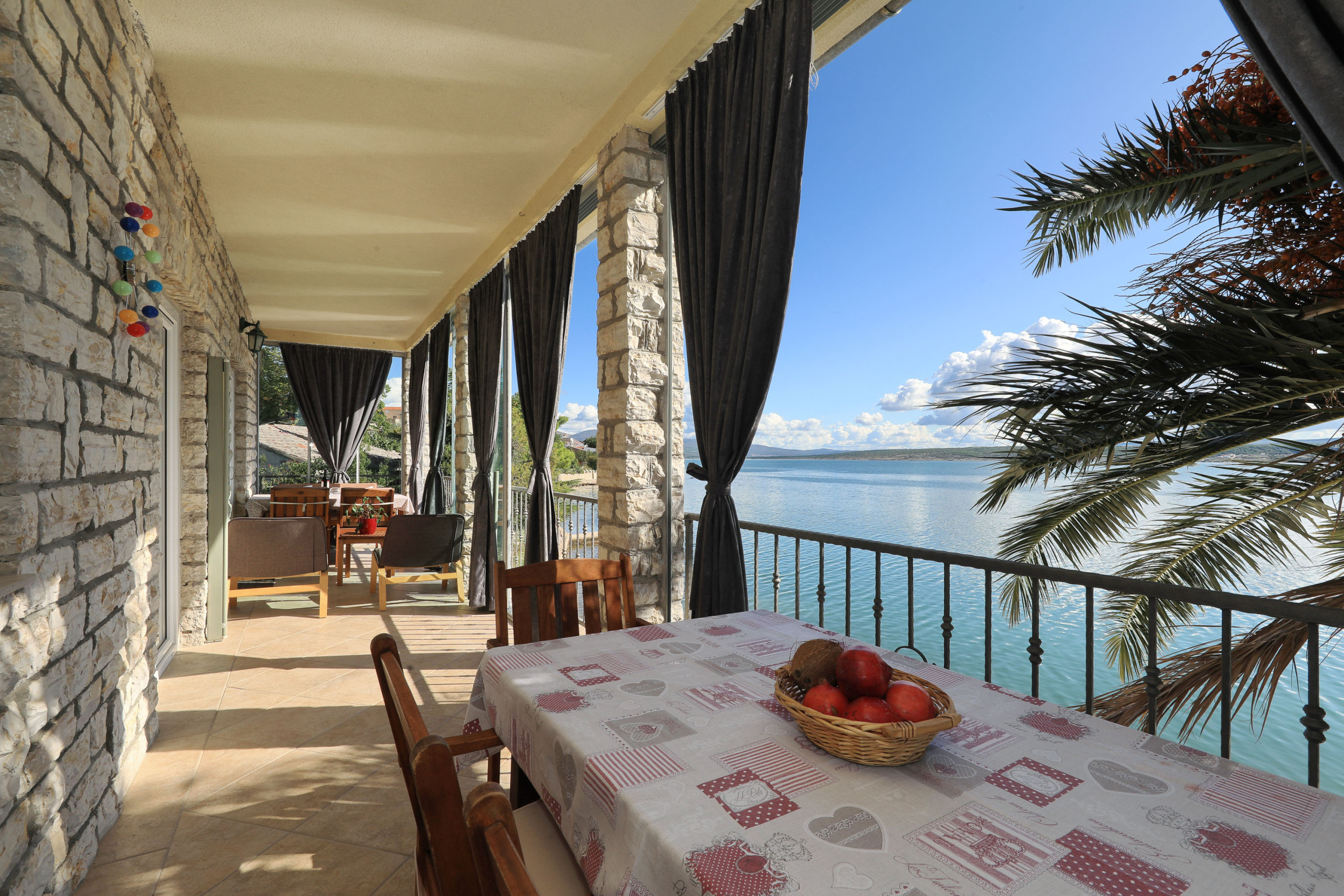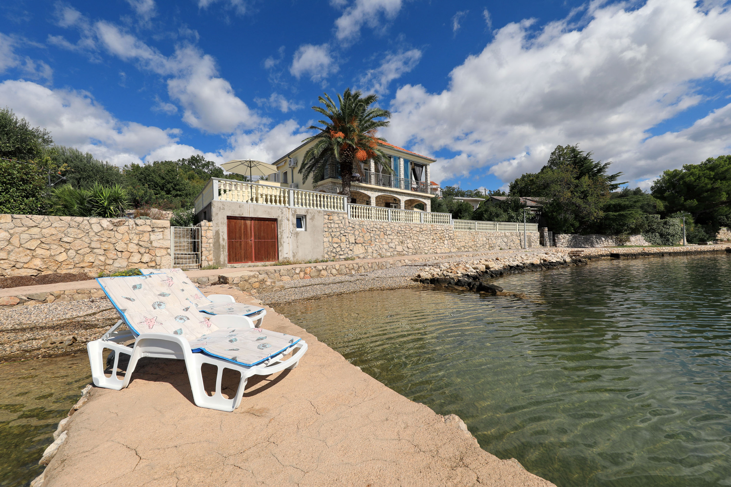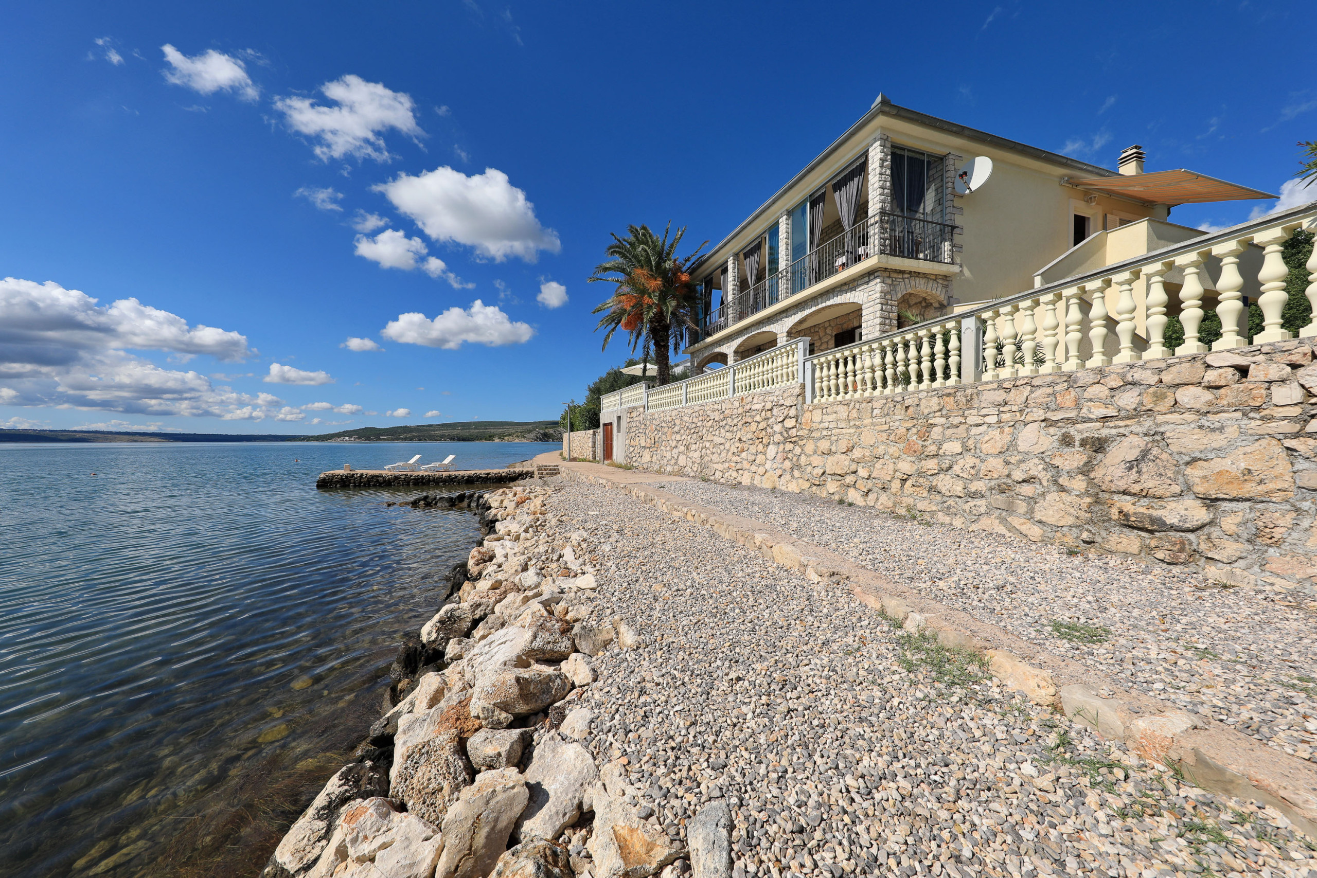 In the house there are 2 apartments on the upper floor and a large one on the ground floor. The apartment is on the upper floor with a fantastic sea view. The sea is only a few steps away.
