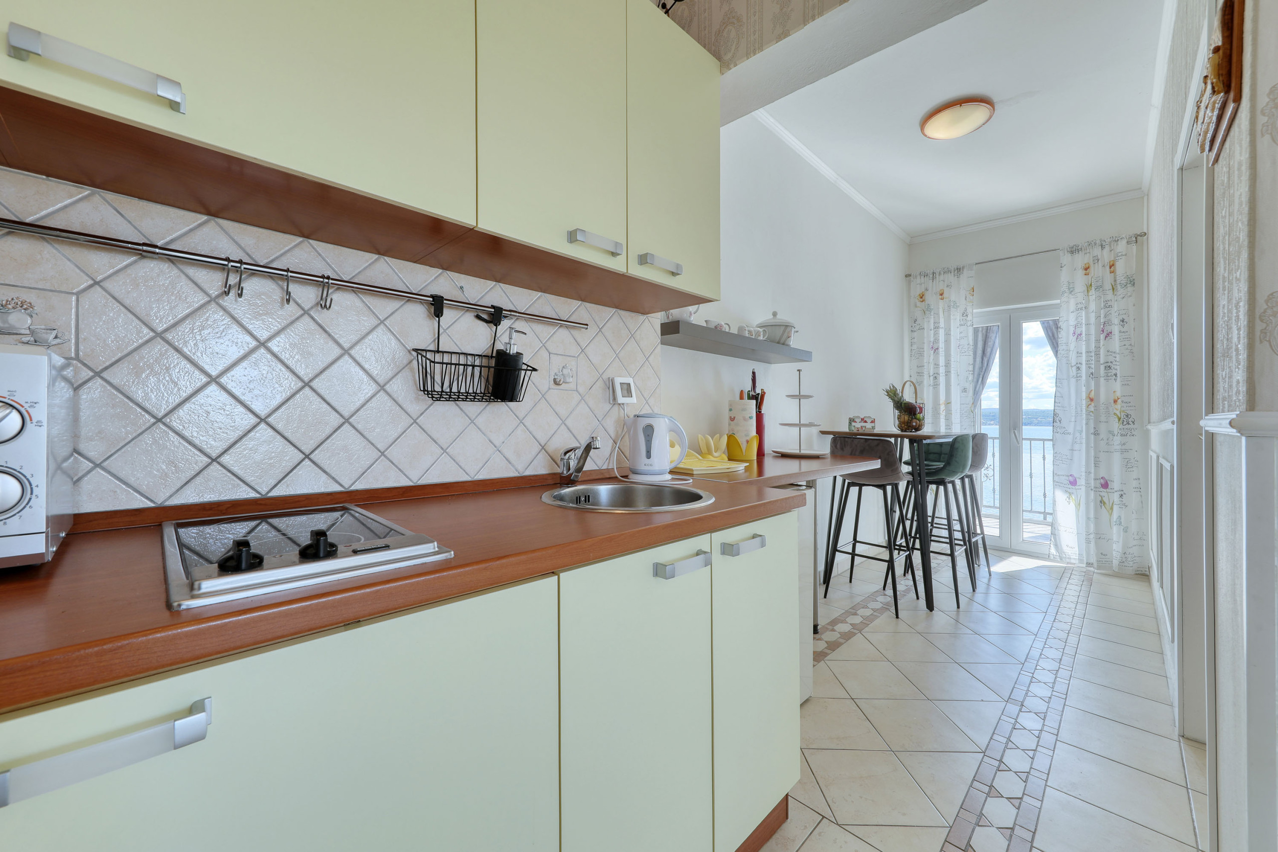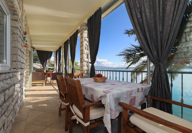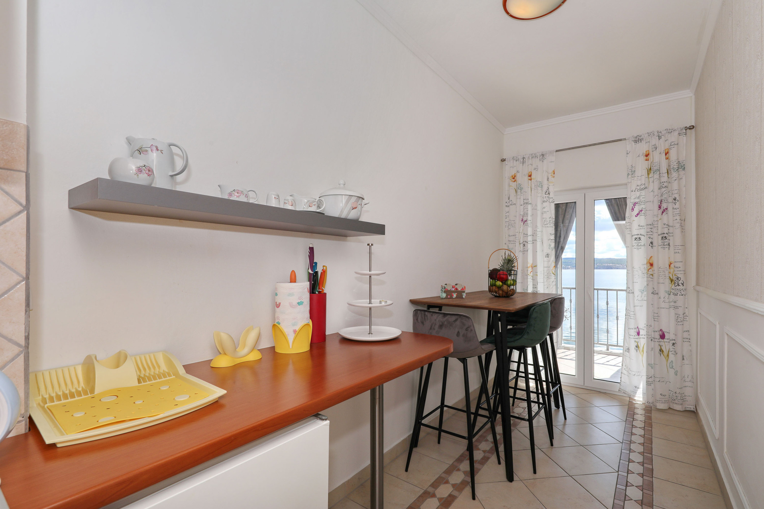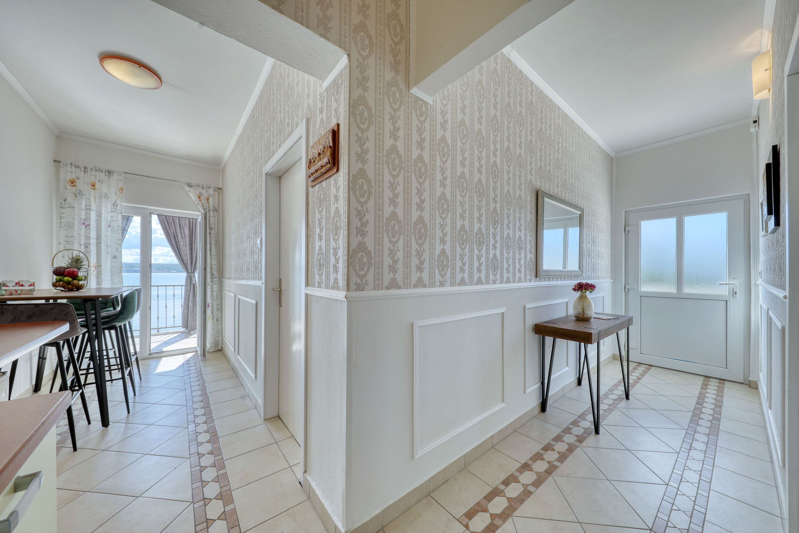 In the house there are 2 apartments on the upper floor and a large one on the ground floor. The apartment is on the upper floor with a fantastic sea view. The sea is only a few steps away.
