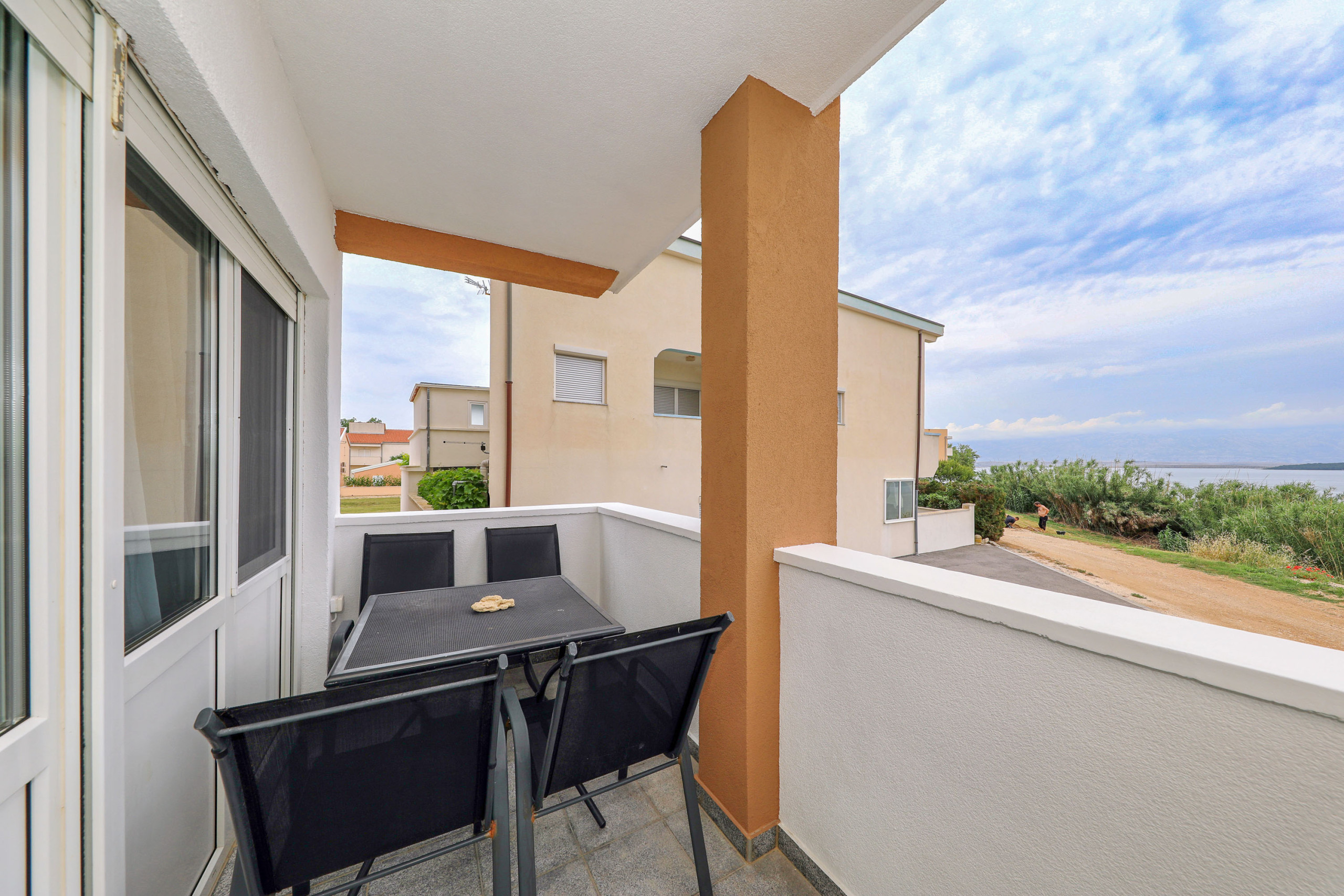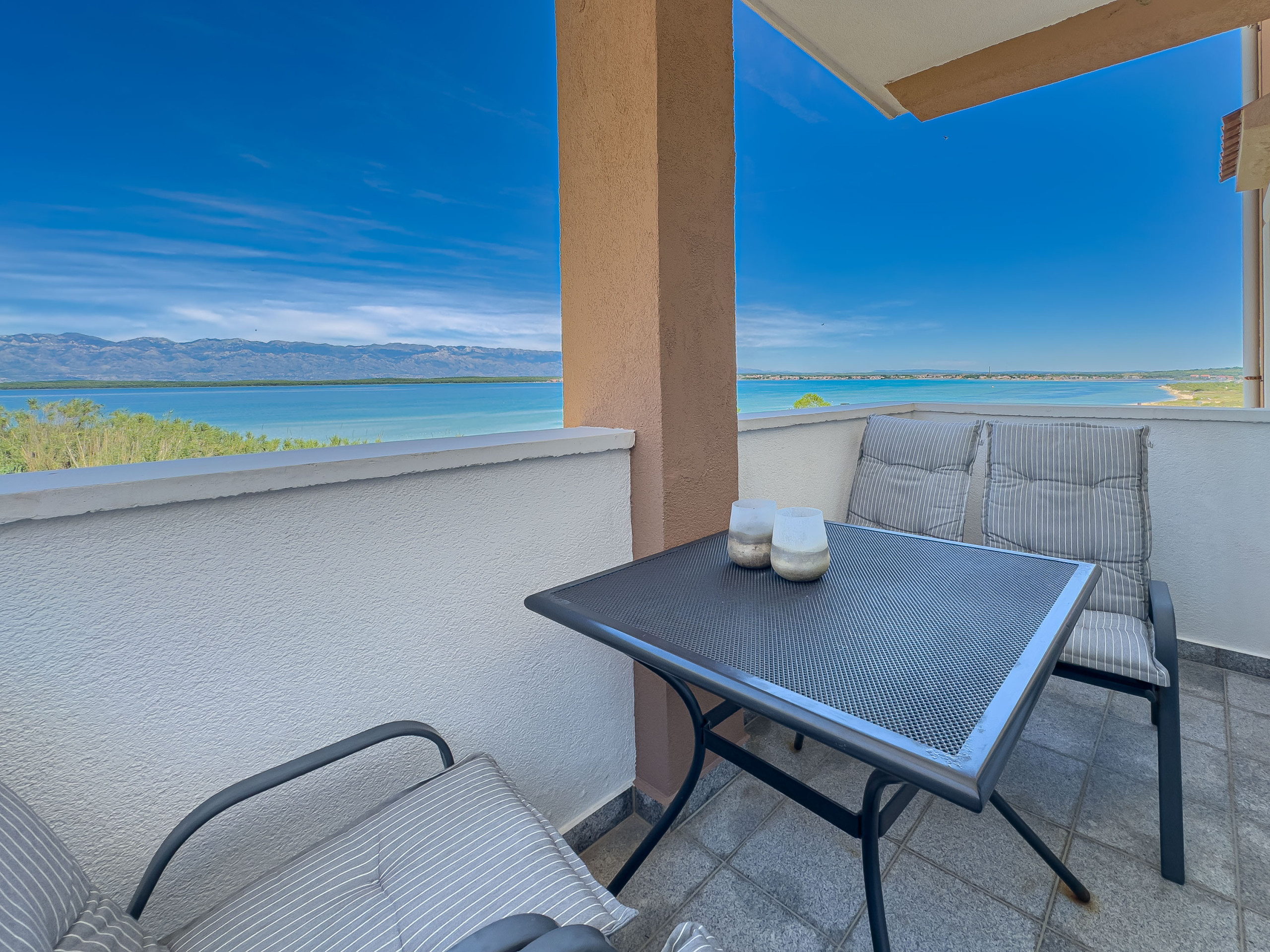 1 beautiful covered balcony with furniture and sea view