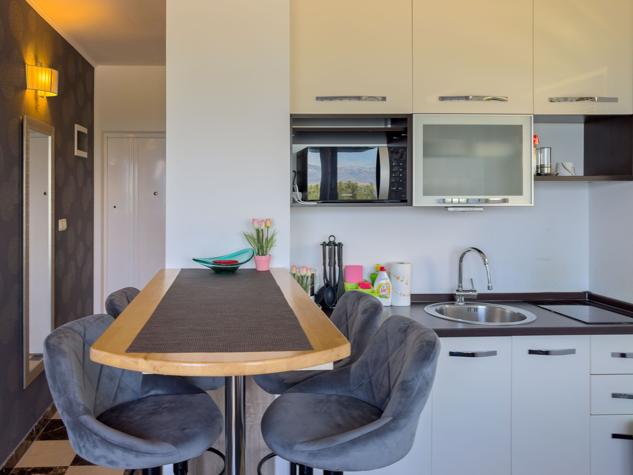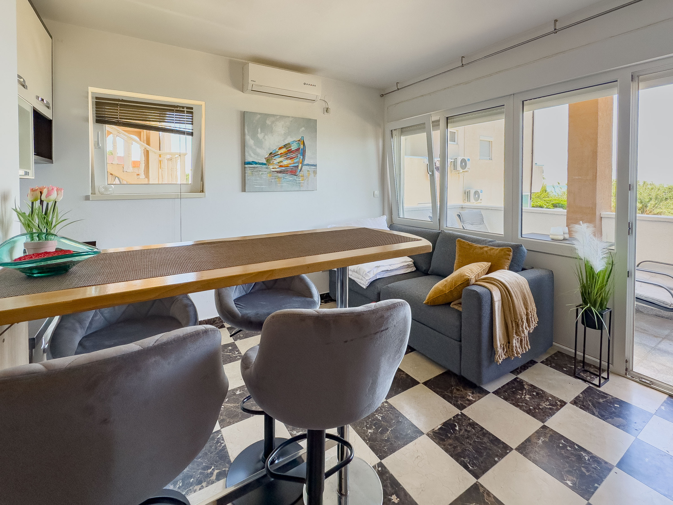Discover a charming seaside retreat in the picturesque town of Nin, perfectly situated for families and couples seeking a relaxing coastal getaway. This cosy 31m² apartment offers an ideal base for exploring the stunning Croatian coastline, with direct access to beautiful sandy beaches and breathtaking sea and mountain views.