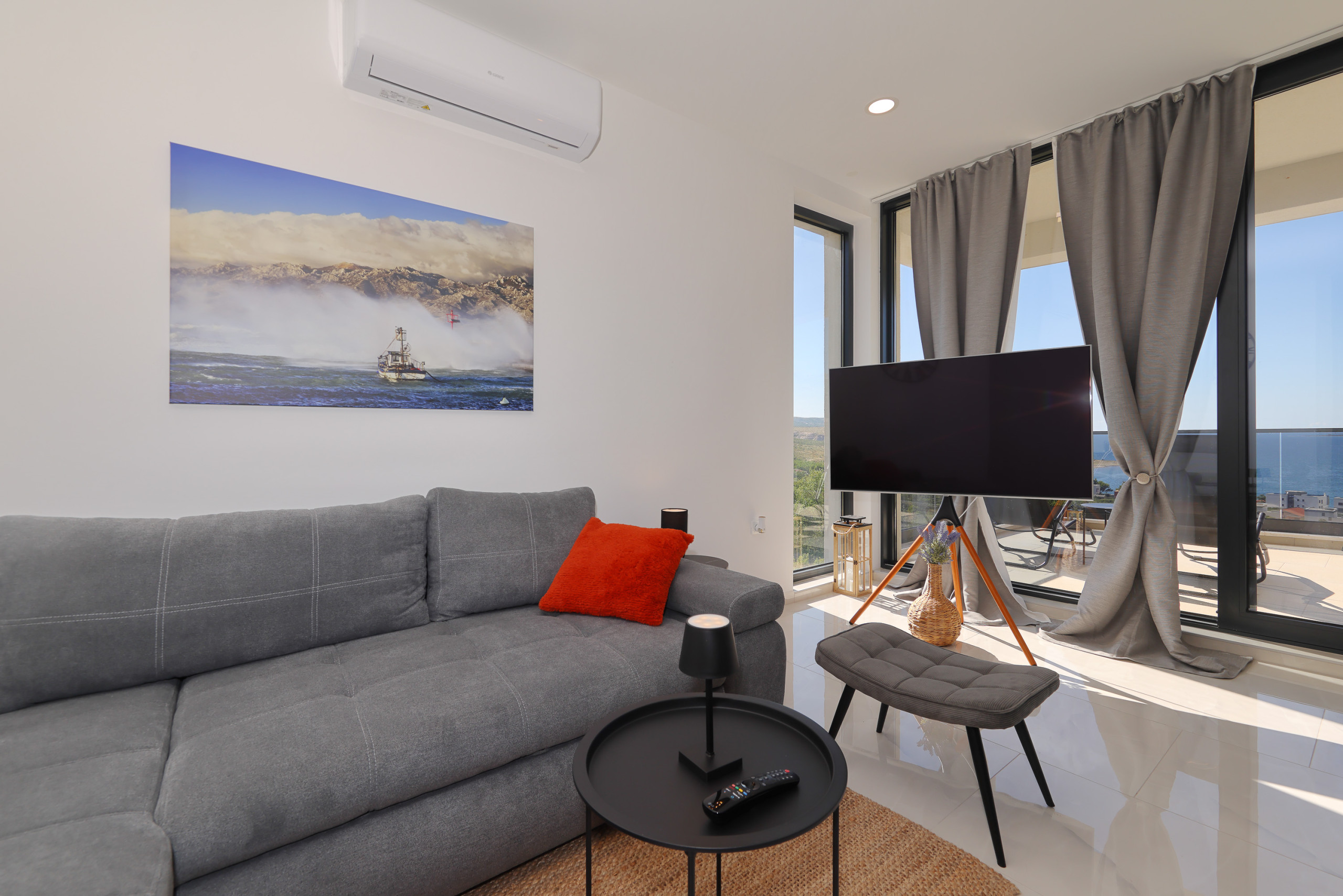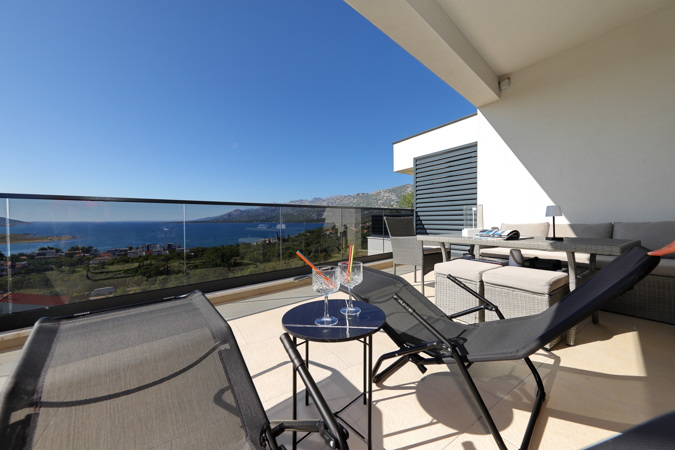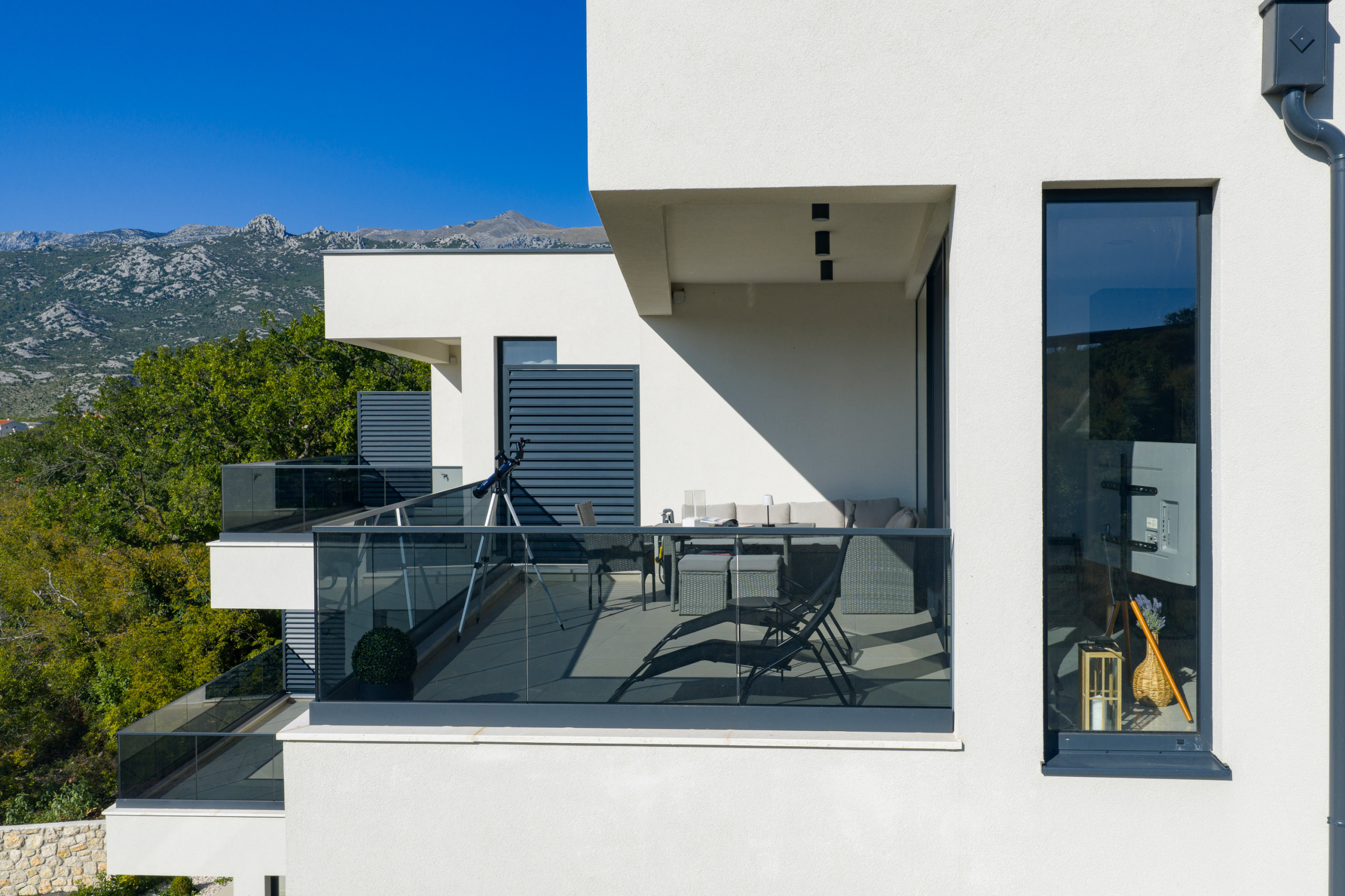 Big terrace offers a perfect private oasis, combined with BBQ. TV-s are placed on the terrace and in the living room. Living room has a big sofa for your relaxation. Three bedrooms are large, and beds are big and comfortable.