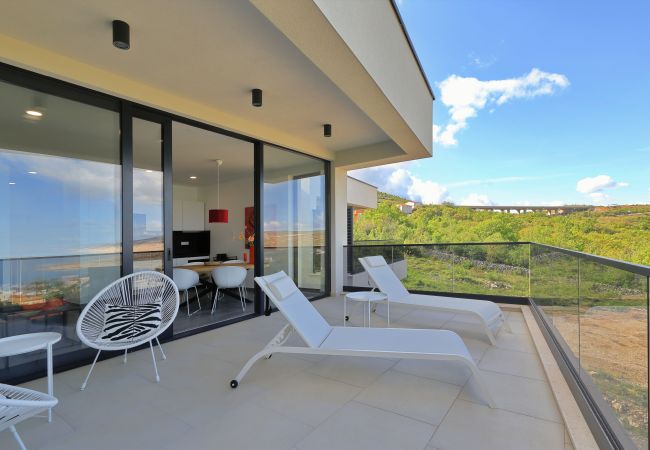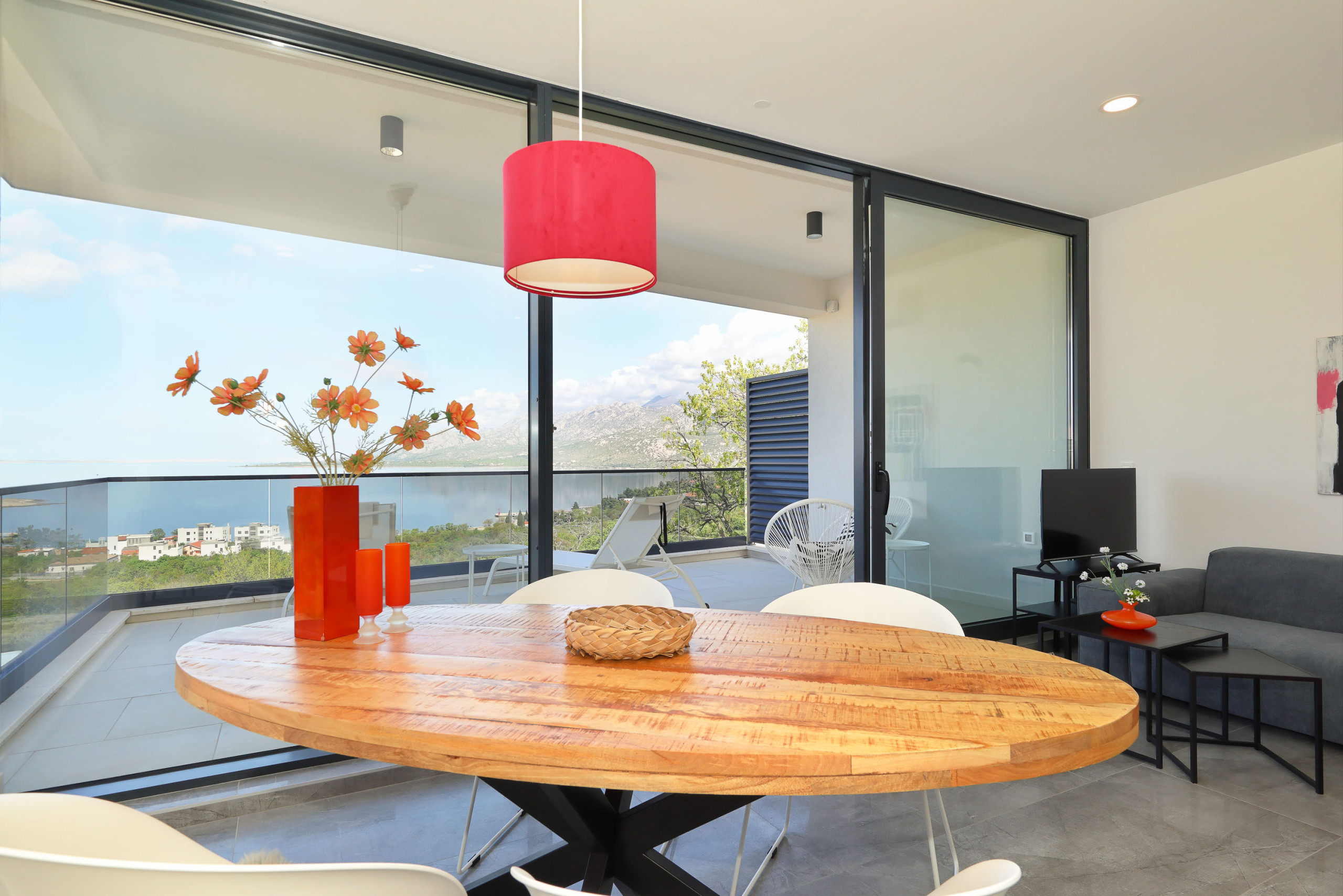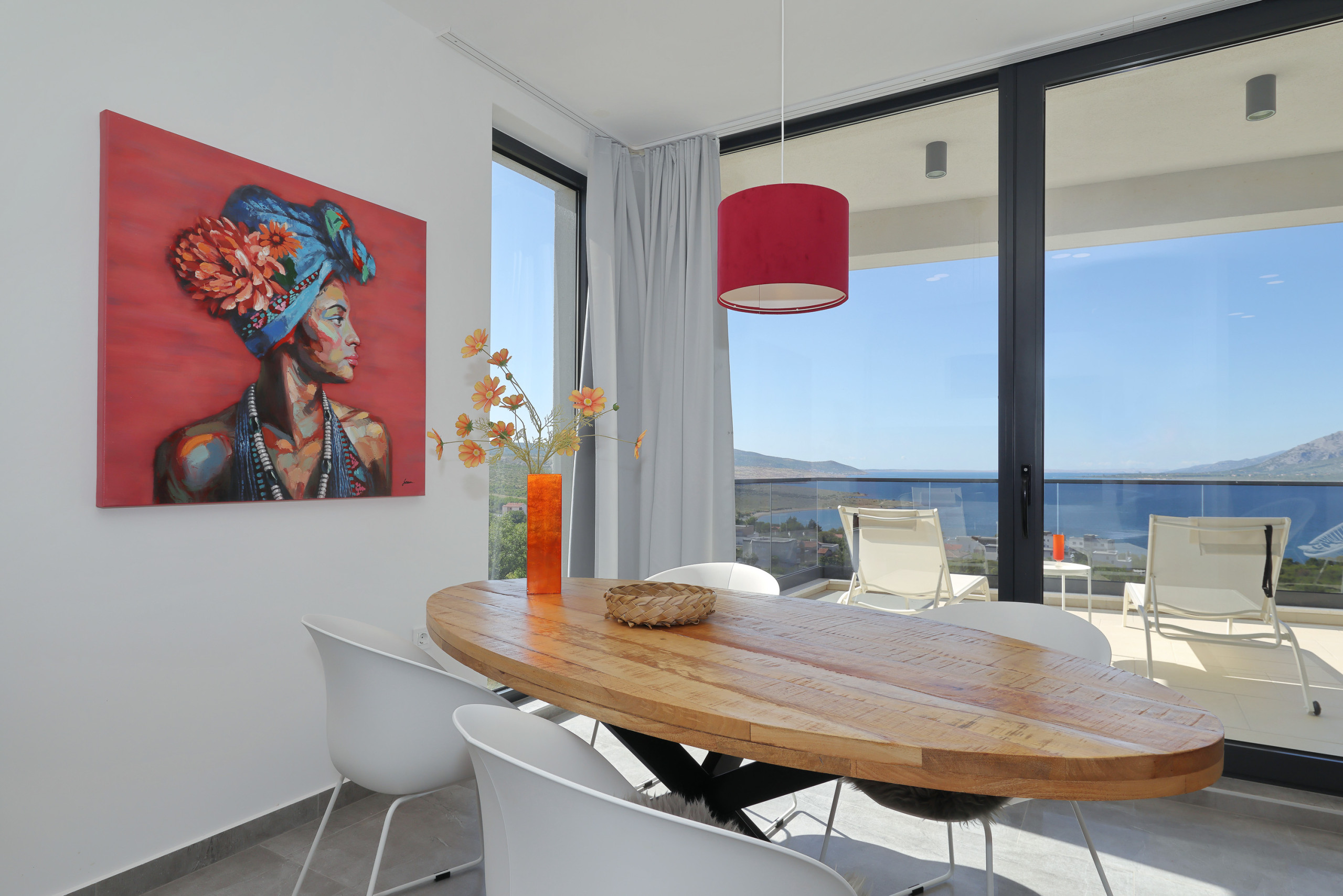 Welcome to Ferienwohnung Meerblick Rovanjska, a modern, air-conditioned holiday apartment in the peaceful seaside village of Rovanjska, just 10 km from the entrance to the stunning Paklenica National Park. Located on the second floor, this 65 m² apartment offers a spacious balcony with sun loungers and breathtaking panoramic views of the bay, the Adriatic Sea, and the Velebit Mountains – a perfect setting for morning coffee or evening relaxation with a view.