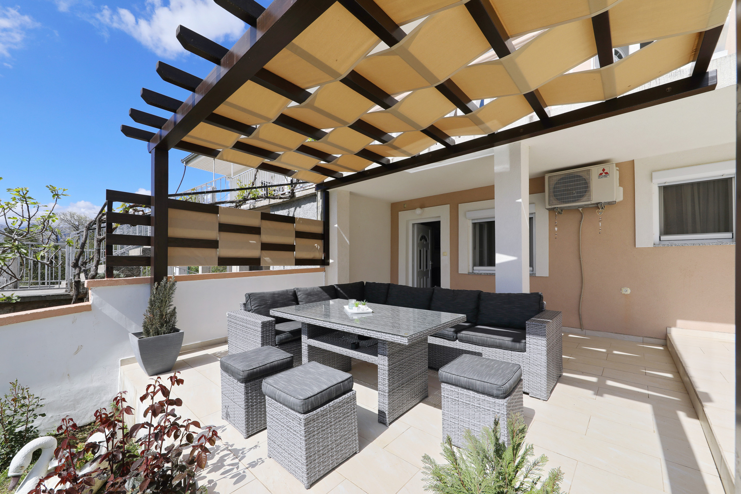 Wifi internet, air - conditioning, bed sheets, towels, dishwasher, washing machine, tourist tax, parking space, barbecue - included in price.