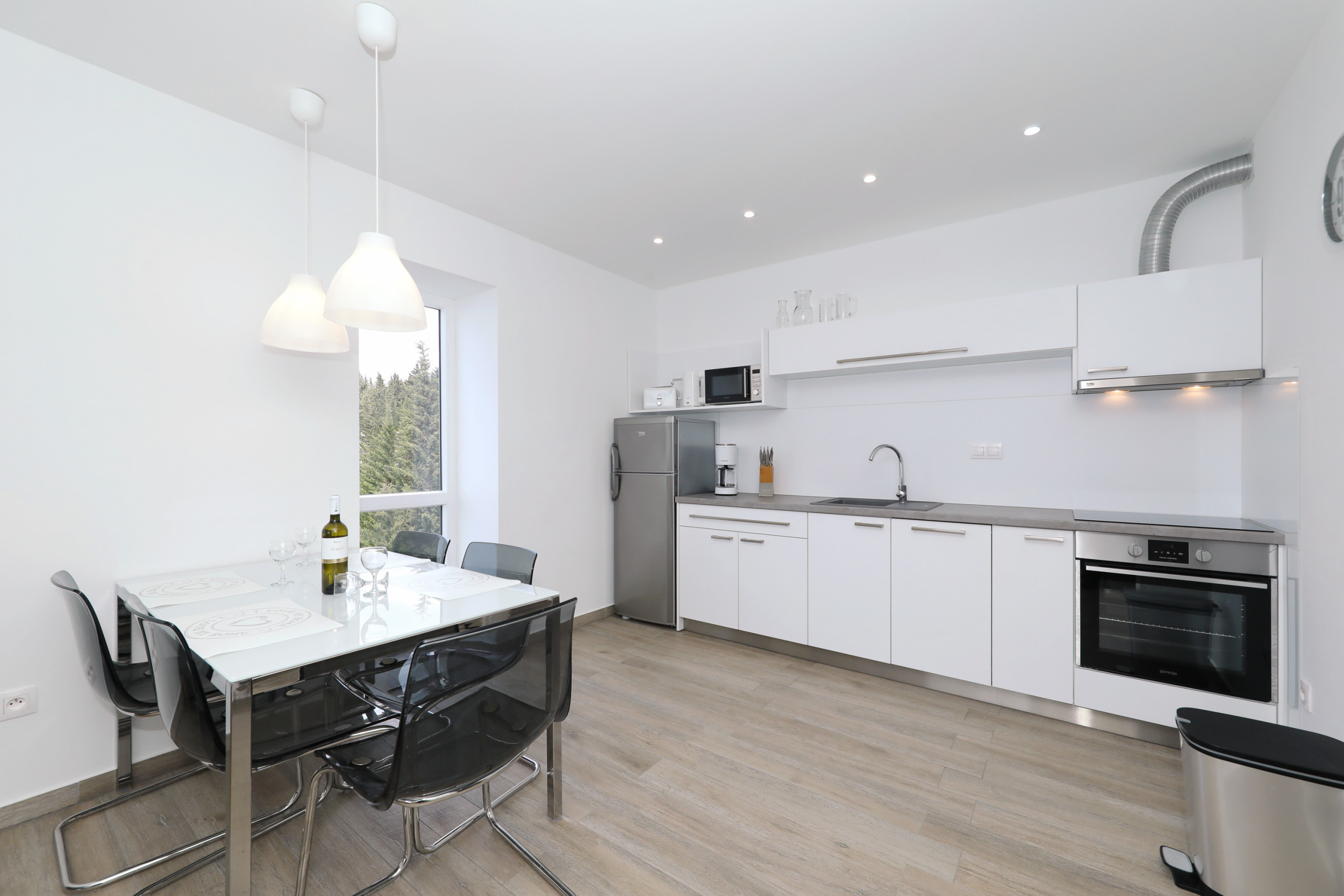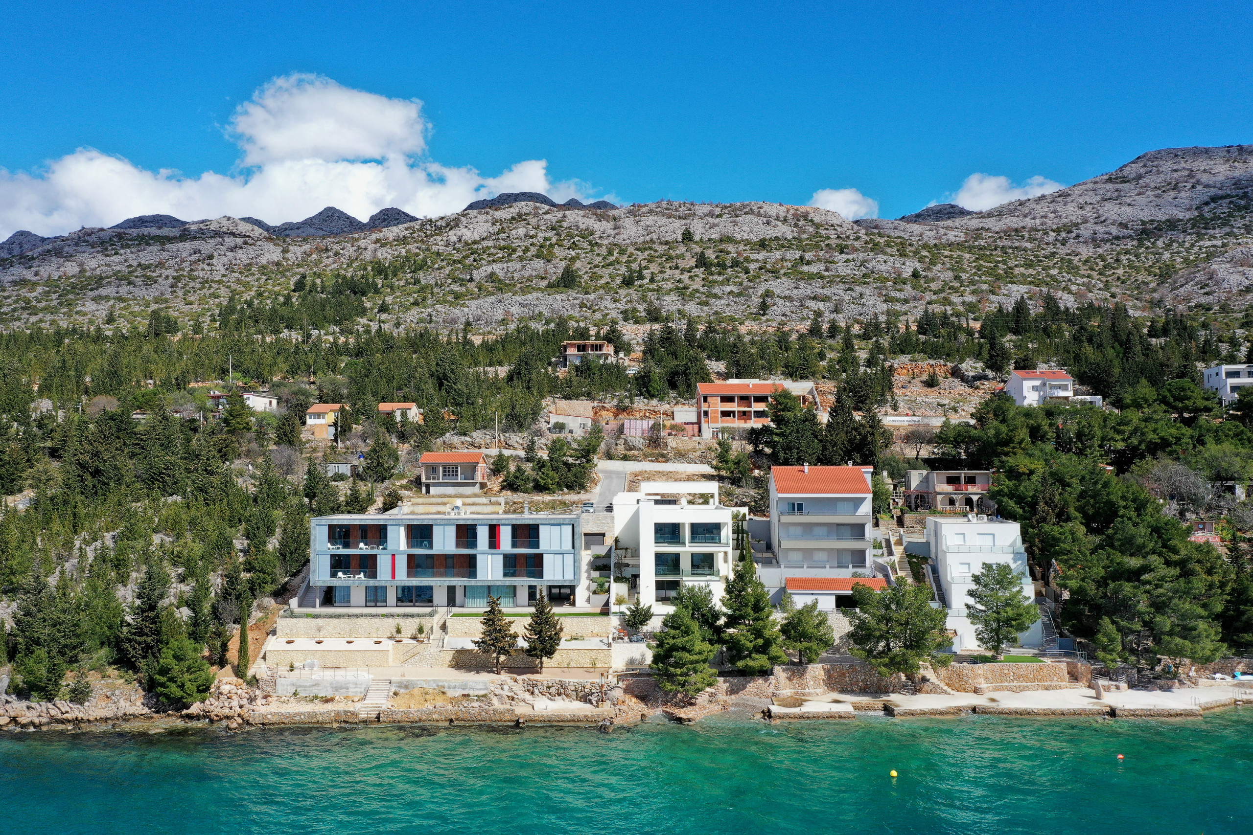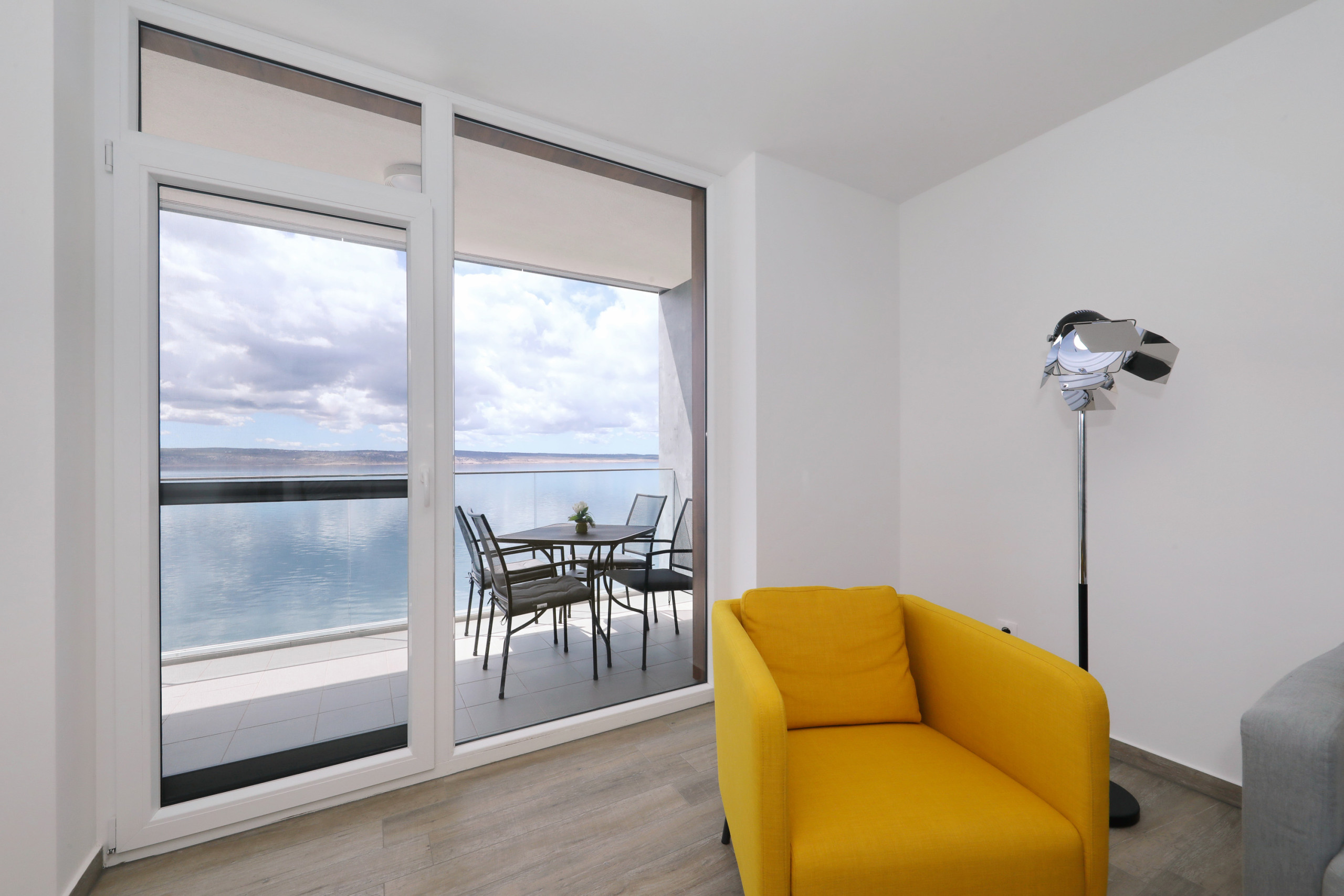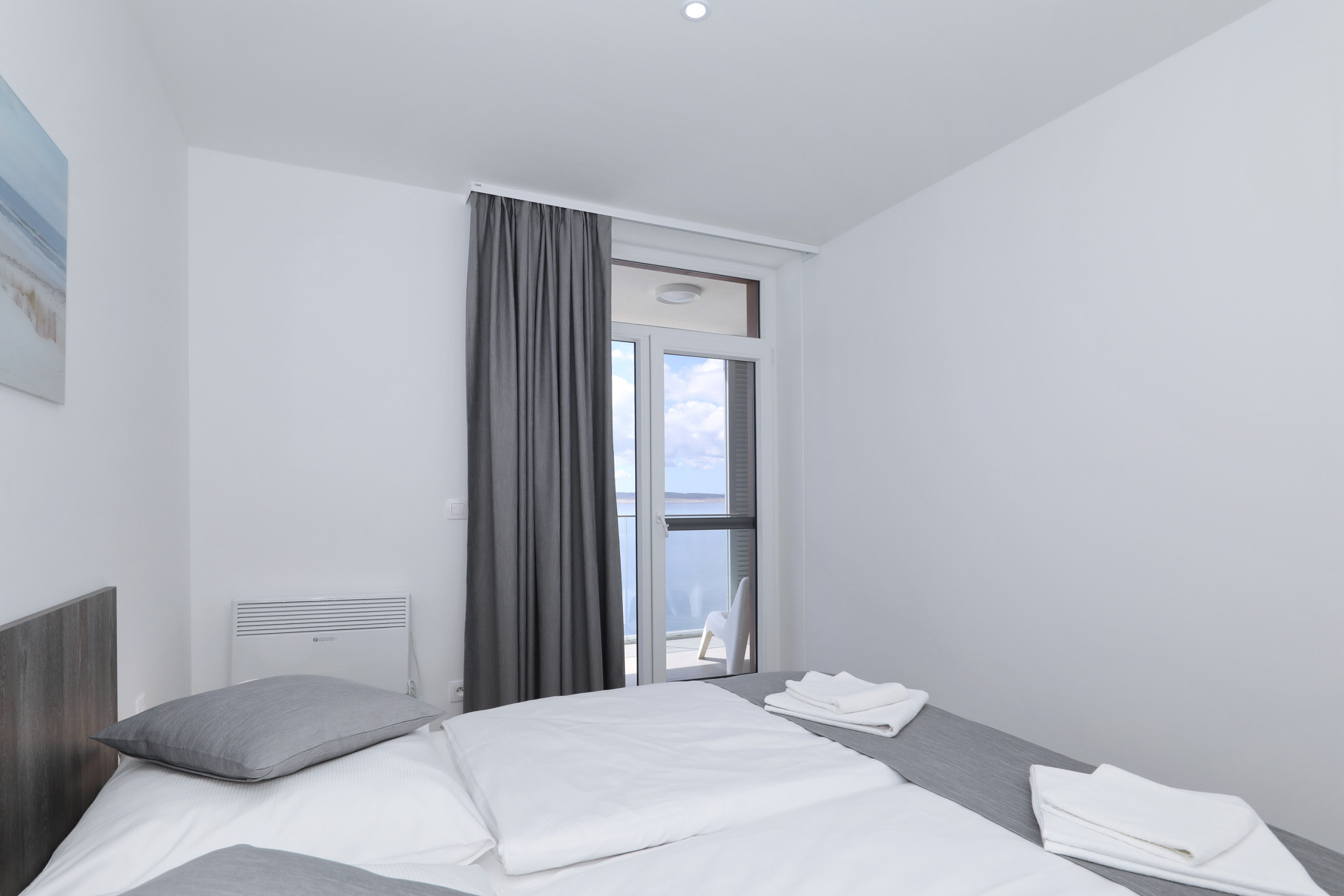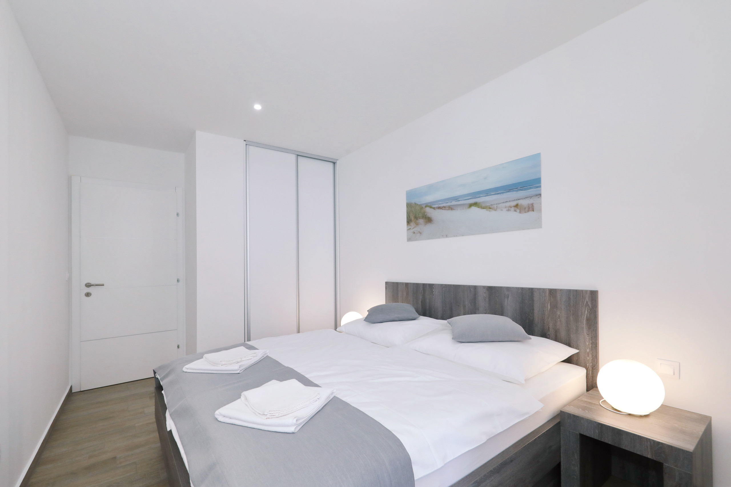 Apartment is located on the seaside, few meters from beach. Mountain is behind the house. Just 1,5km from center.