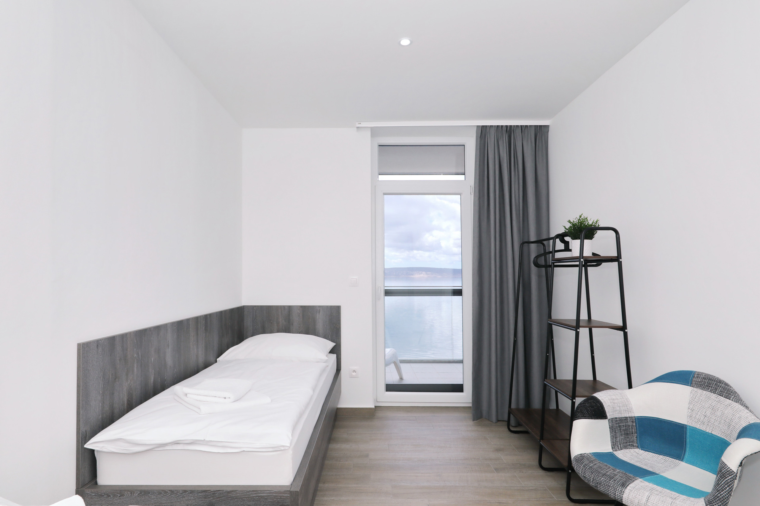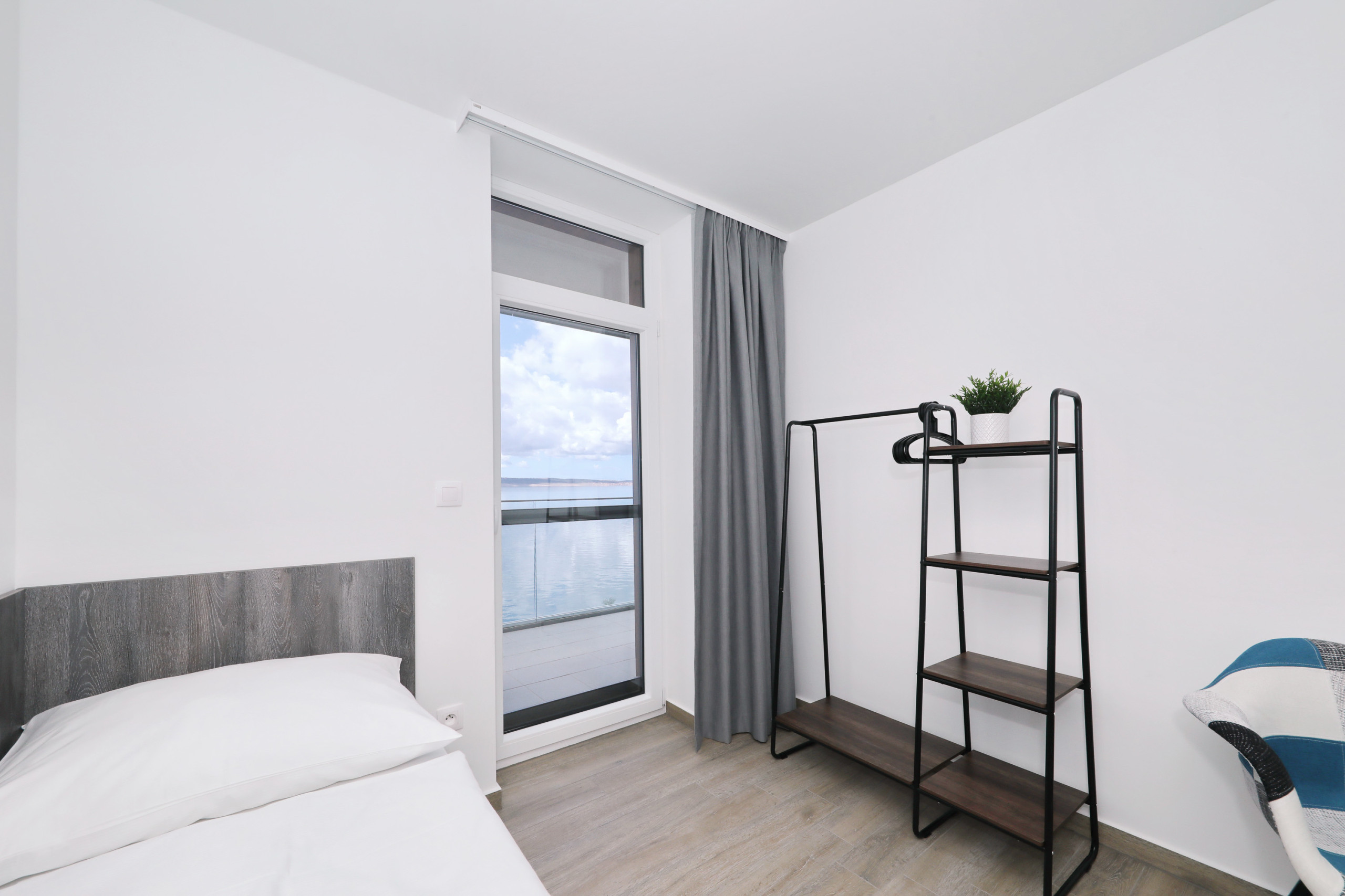 Seaside apartment with private beach No.6 is located in Starigrad Paklenica, a beautiful village where mountain and sea connect. Private beach is just few meters in front, and big terrace (16m2) offers a perfect sea view. Apartment has a living room/dining room/kitchen, big family bedroom with two separated parts (one has a queen bed, another has two single beds) and a terrace. Perfect for couple or family who like active vacation, or just to enjoy and relax. Free parking, Wi-fi and AC.