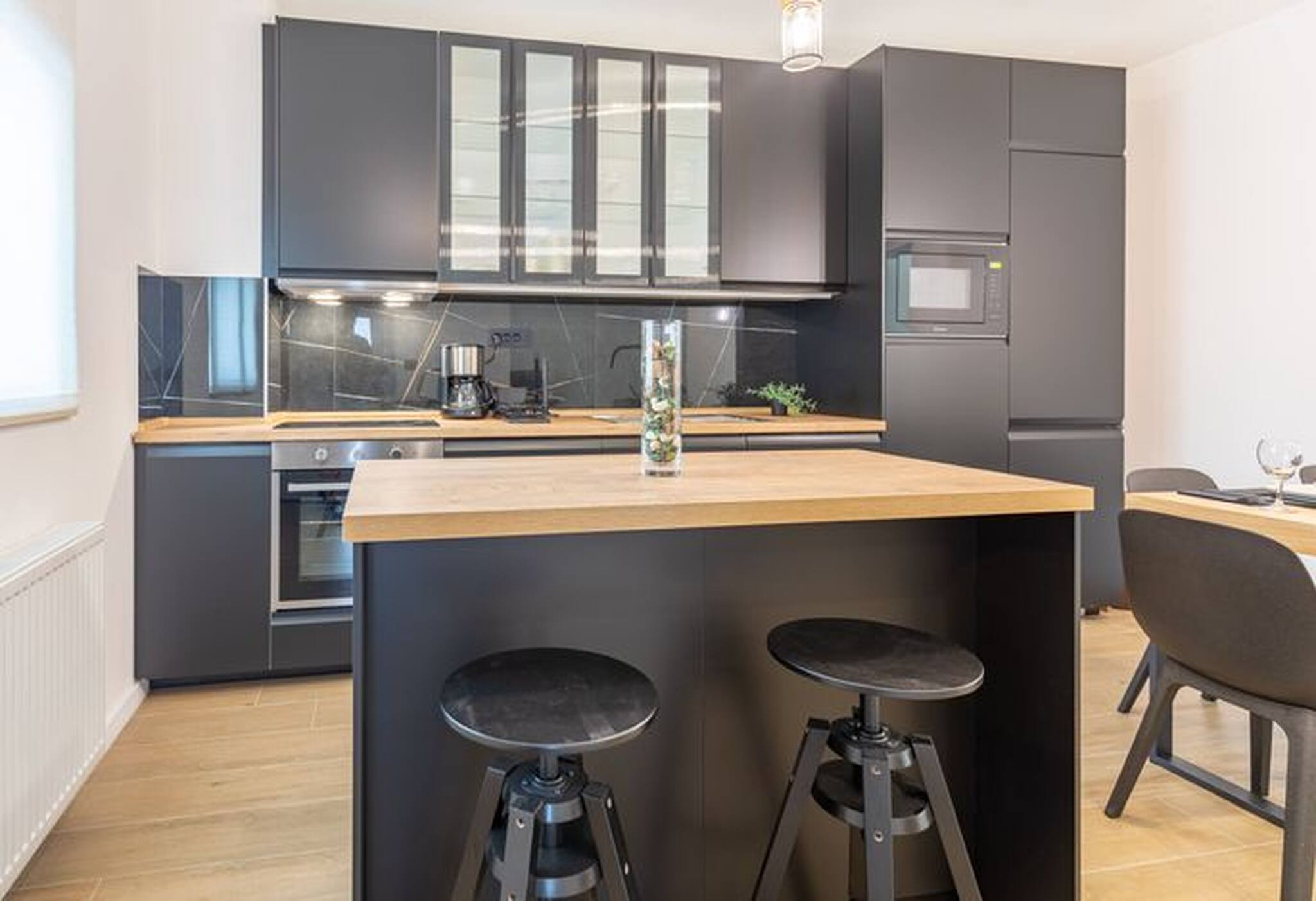 -. The apartment in Starigrad has 2 bedrooms and has capacity for 5 people. The accommodation is equipped with the following items: garden, garden furniture, washing machine, barbecue, iron, internet (Wi-Fi), hair dryer, 1 TV.the kitchen, refrigerator, microwave, oven, freezer, dishwasher, kitchen utensils and coffee machine are provided.