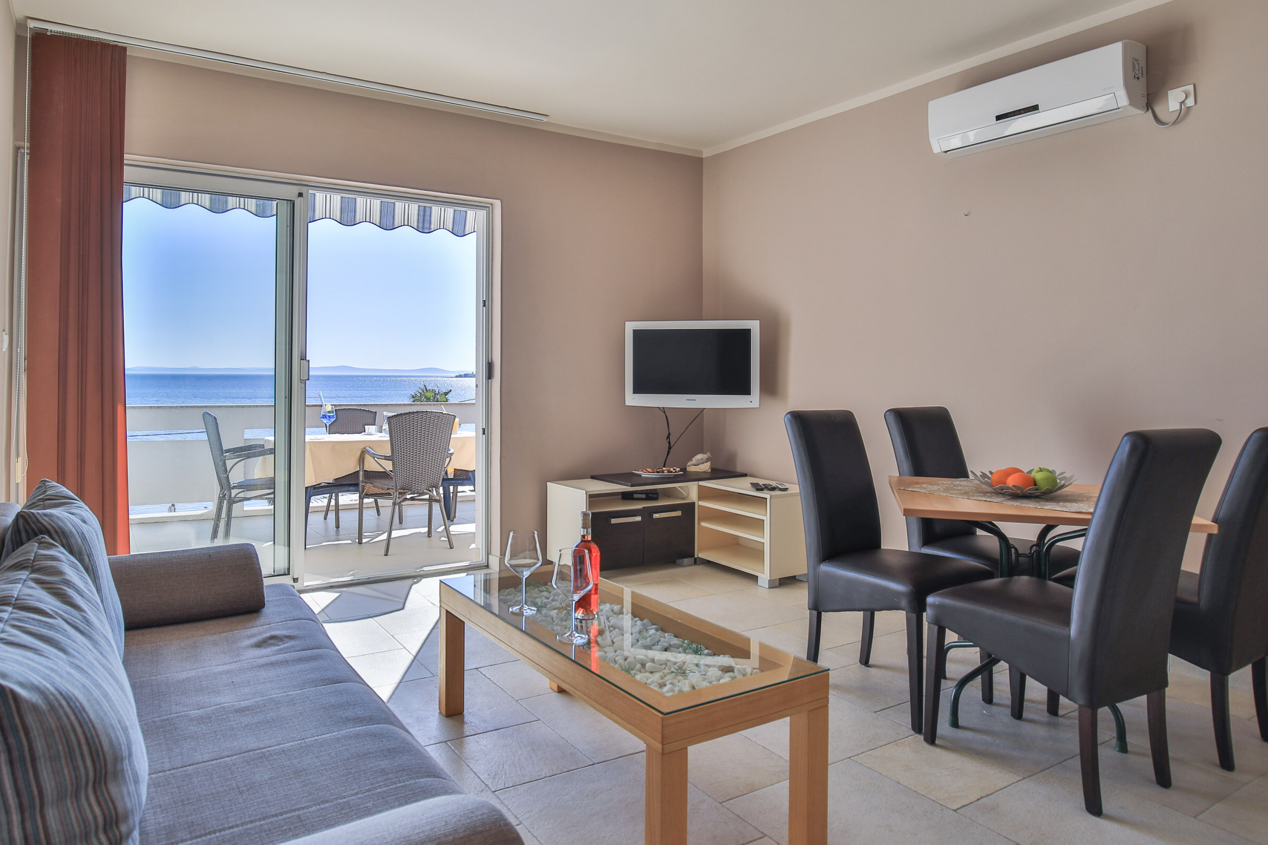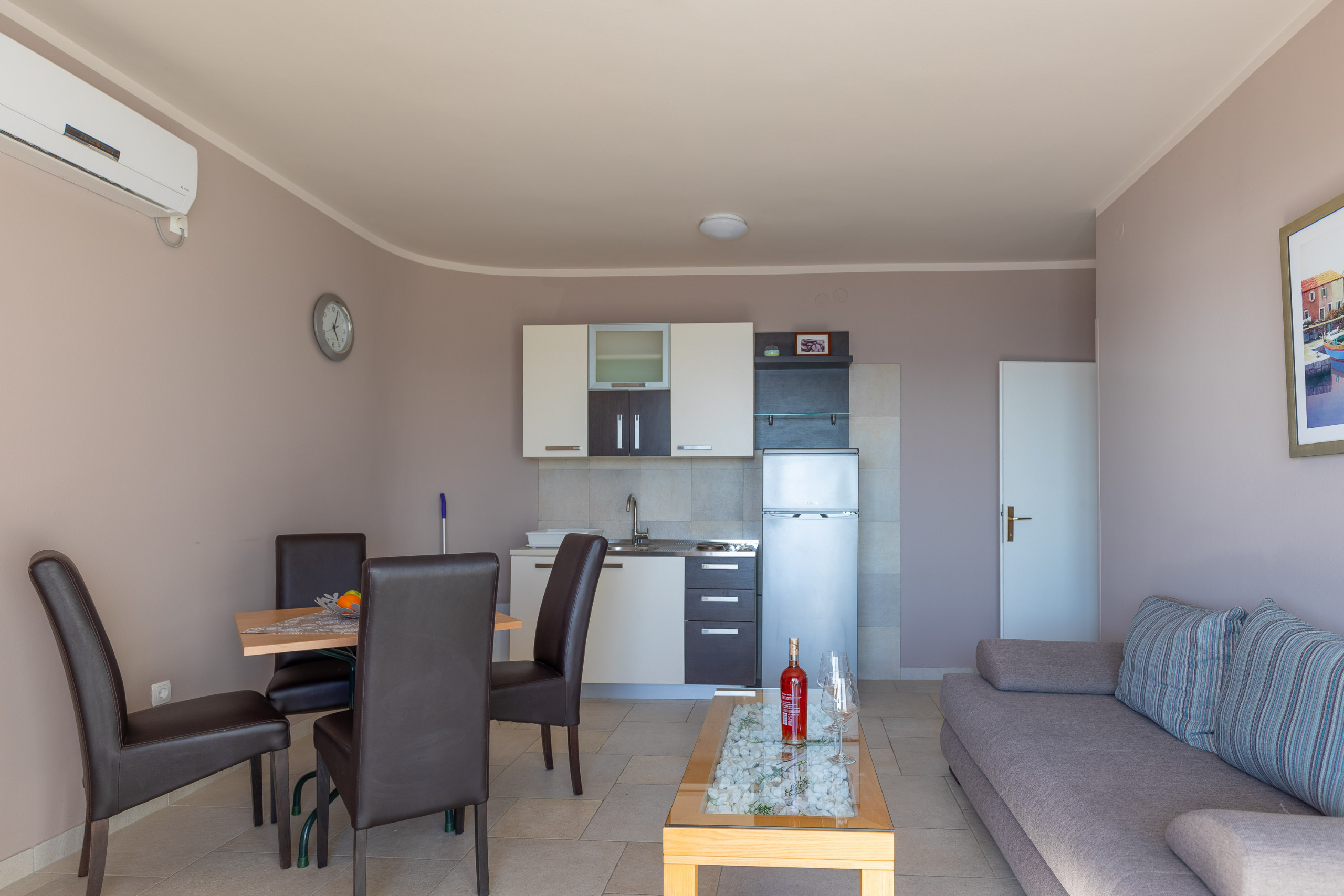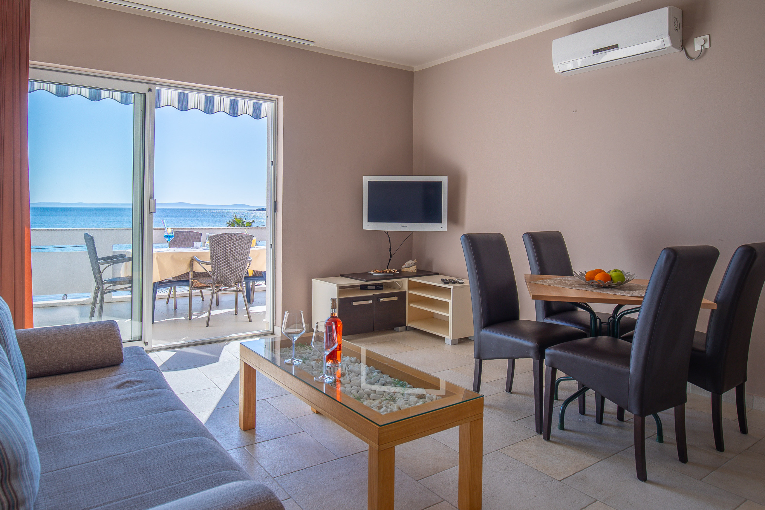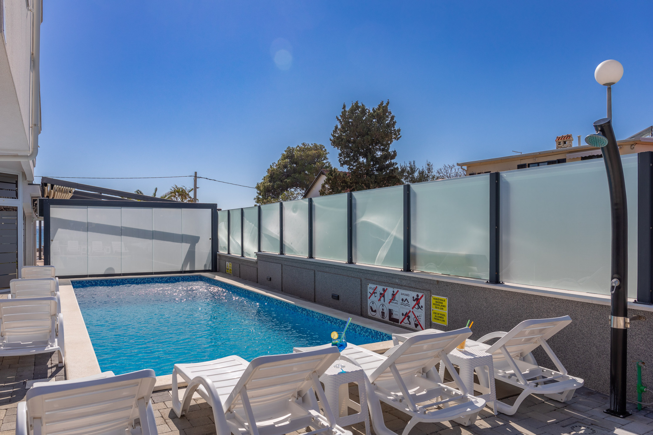 Our modernly designed apartment is located in a 4 star villa on the beach/seafront of island Vir. It features a 75 square meter infinity pool with a whirlpool corner and a gorgeous view of the sea, the bay and the surrounding islands..
