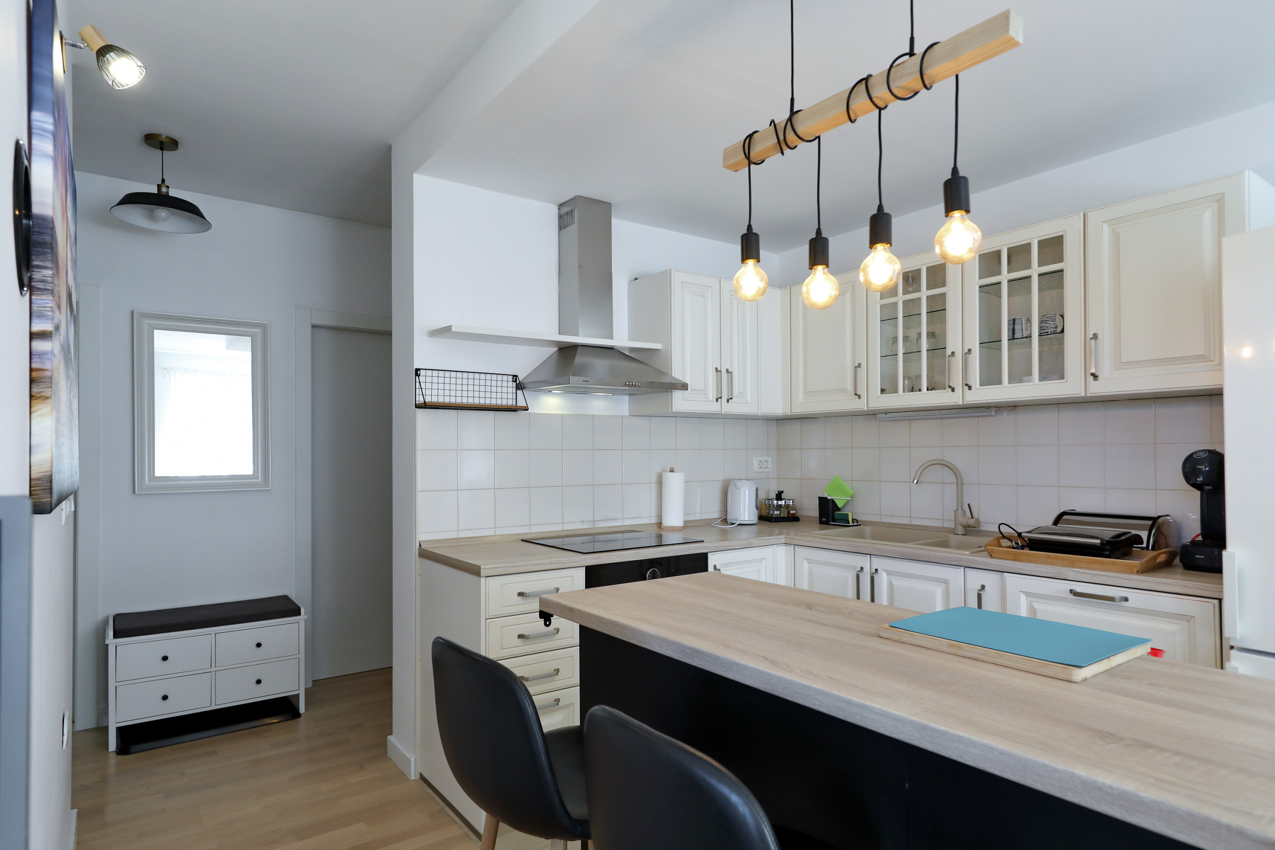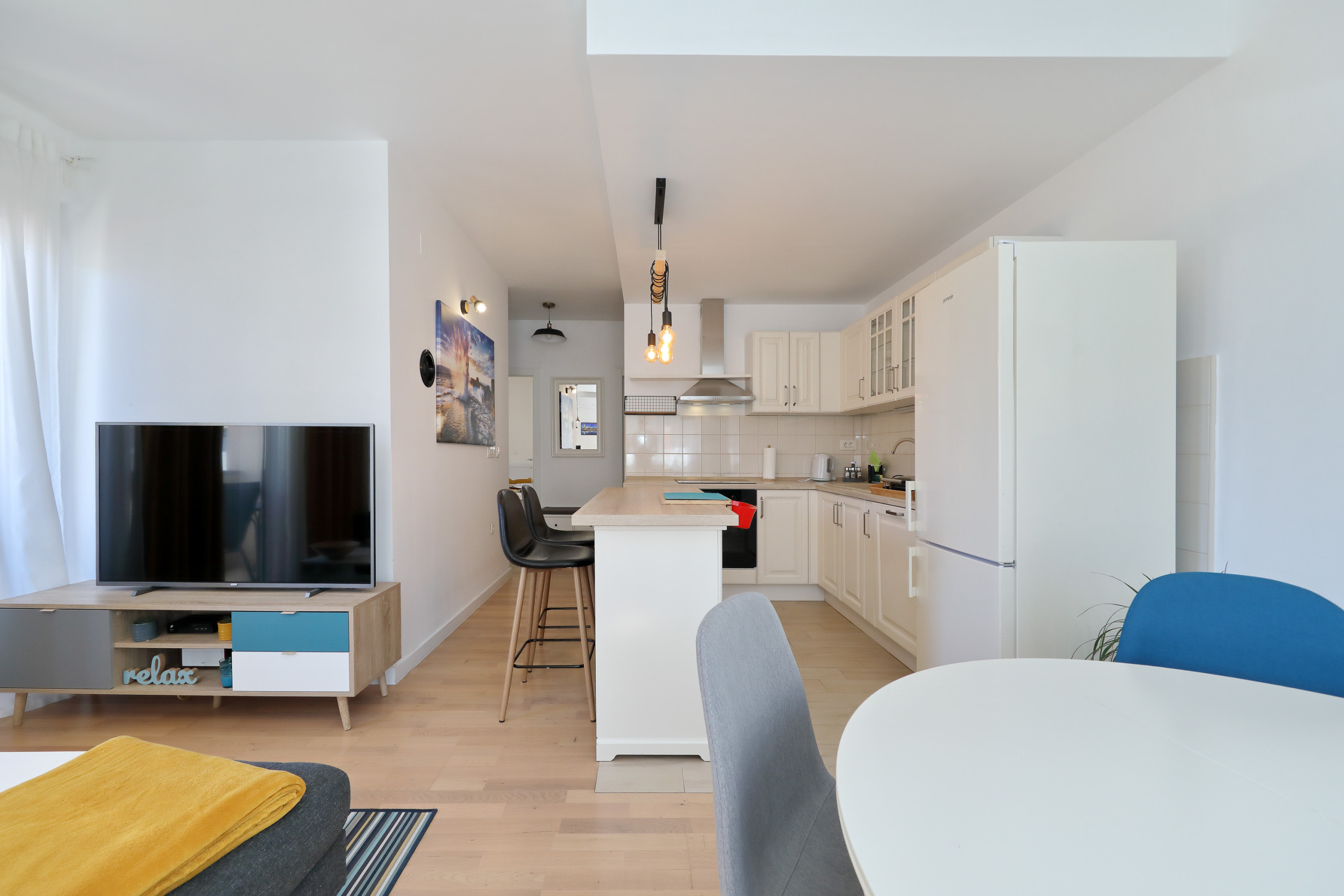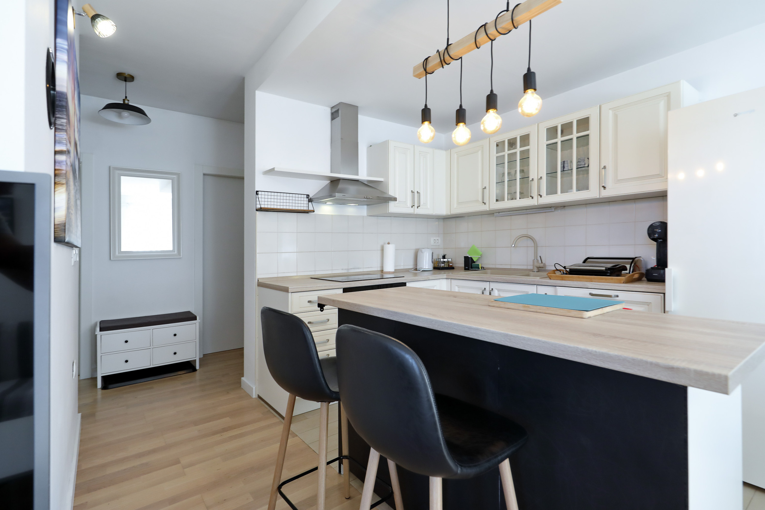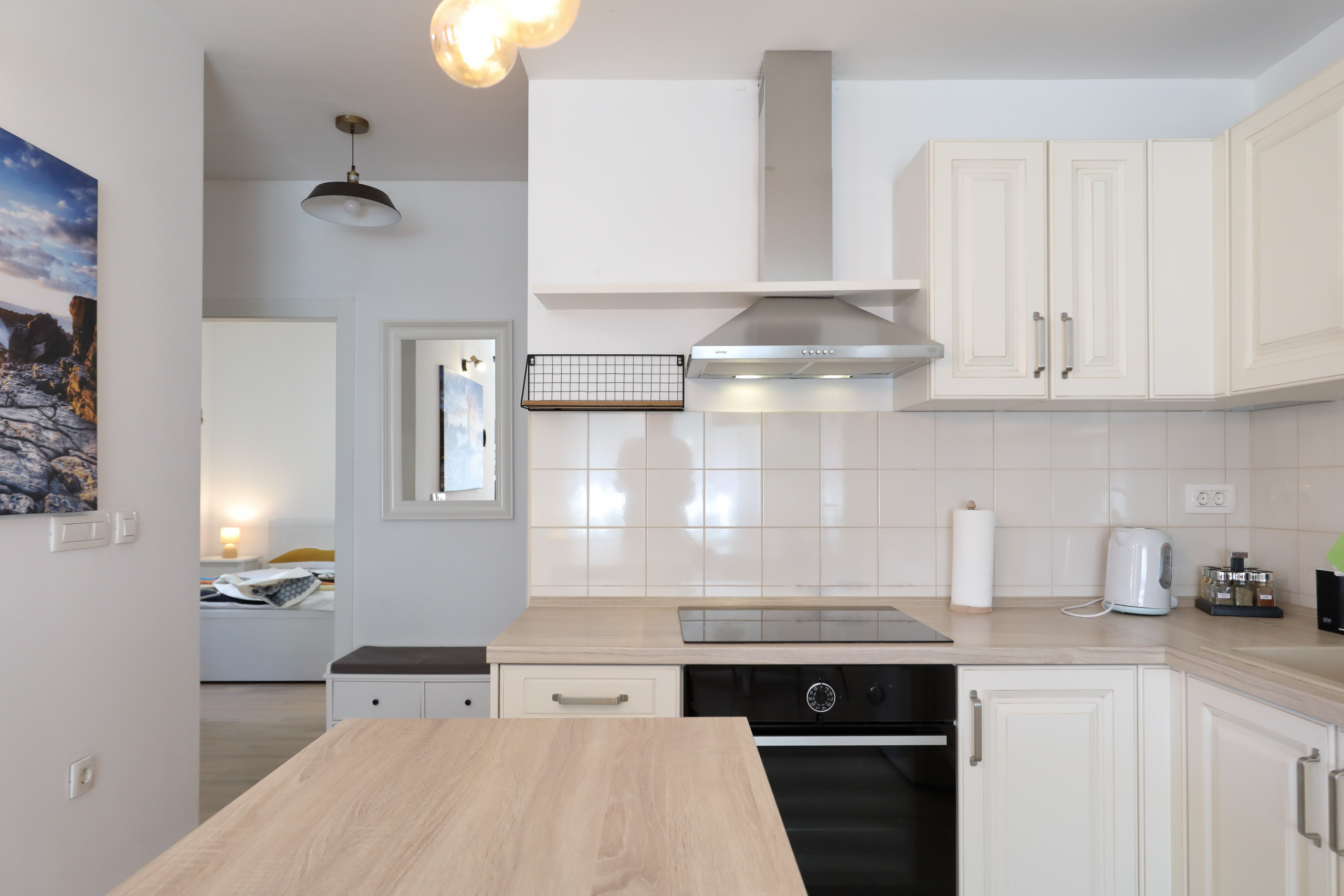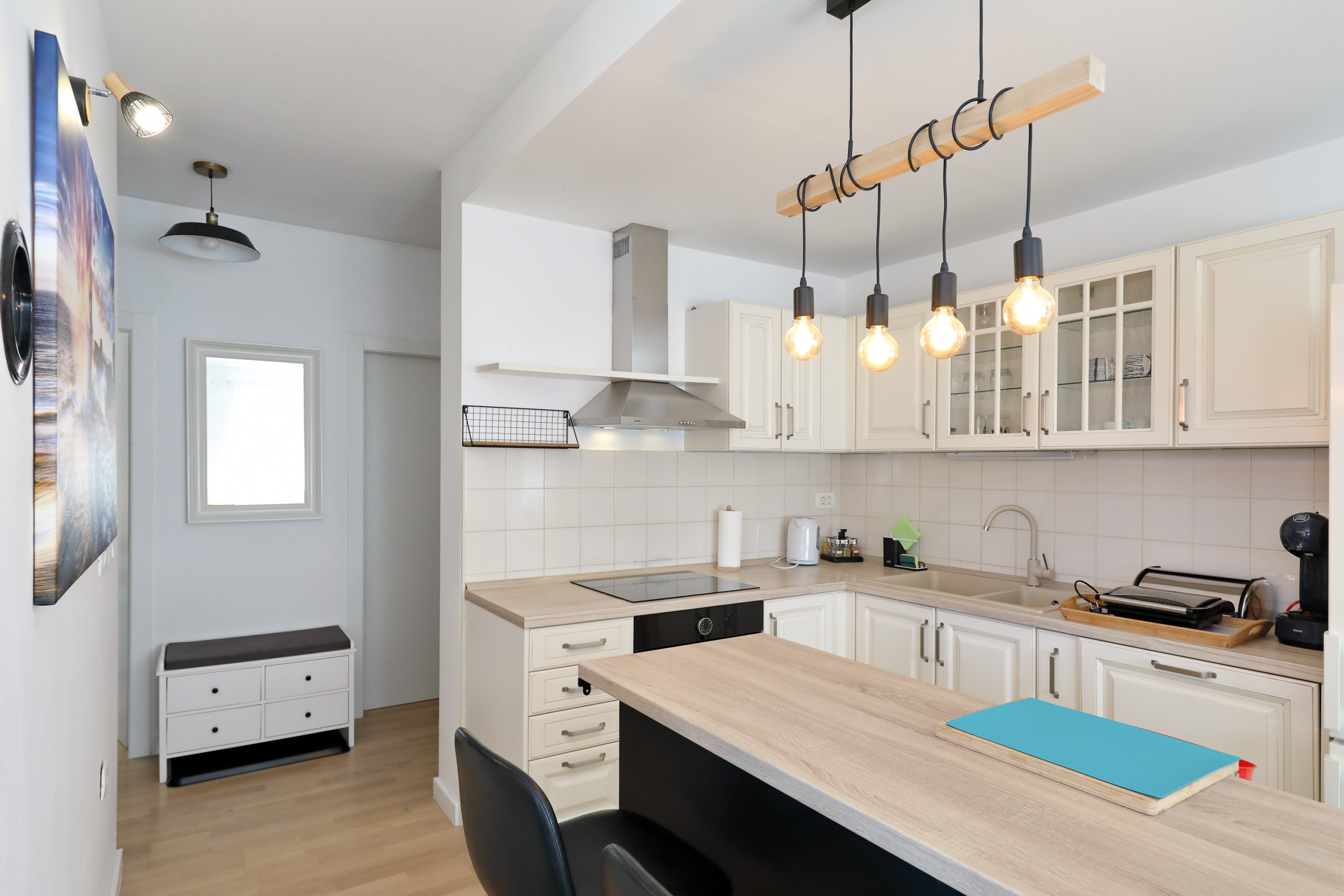 The fully equipped kitchen with a dining table allows you to prepare your own meals with ease. Whether it’s breakfast on the balcony or a romantic dinner at home – you’ll have everything you need.