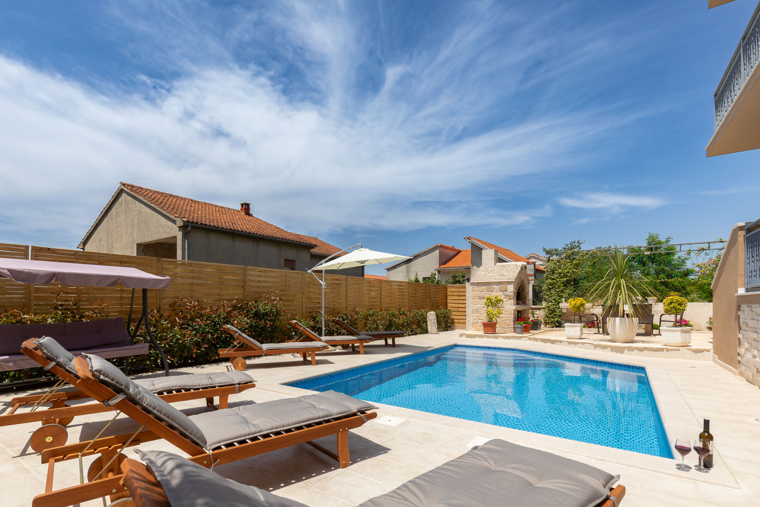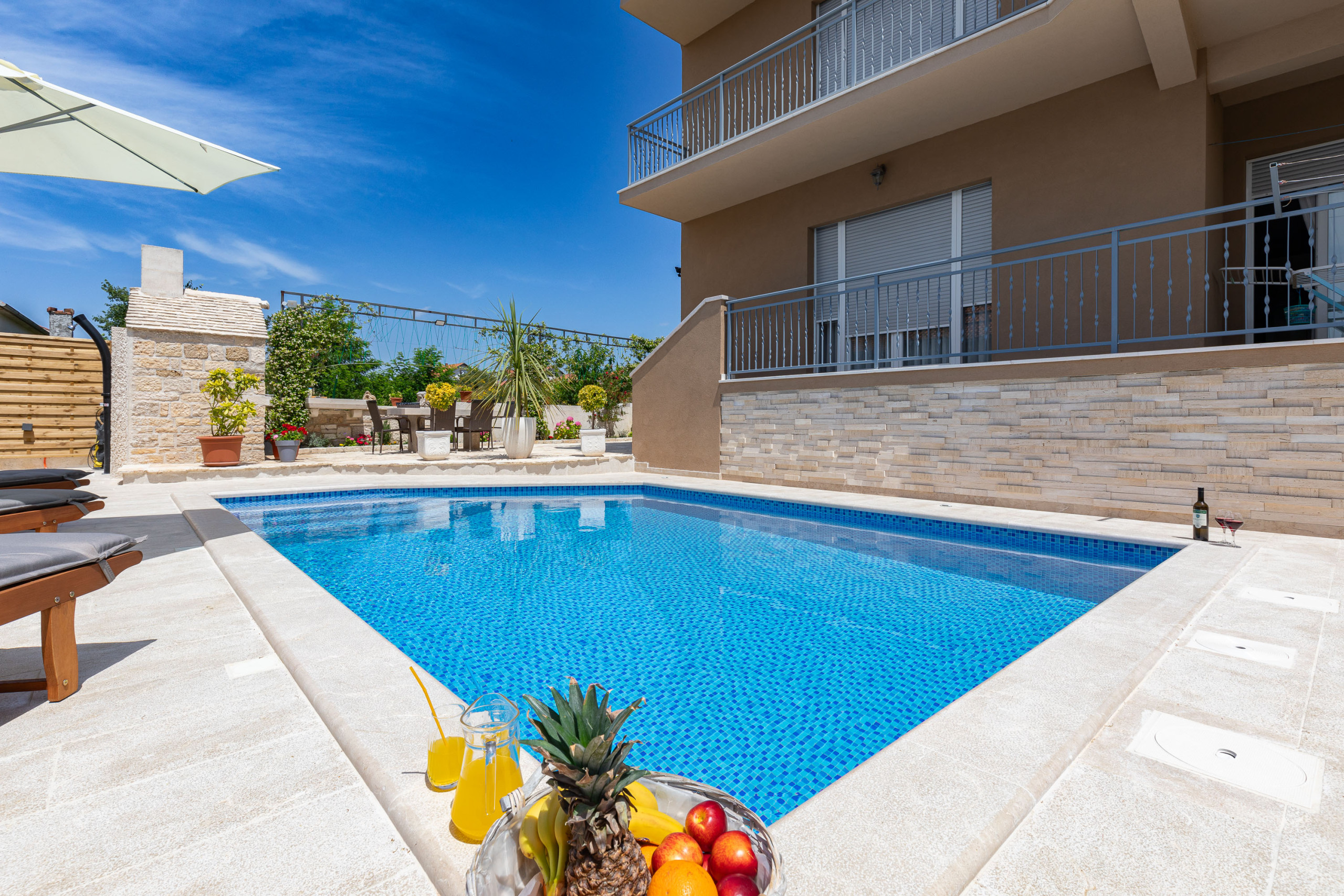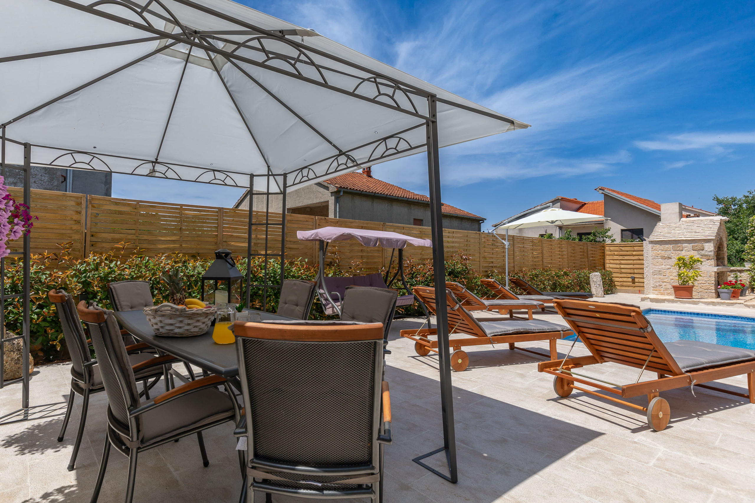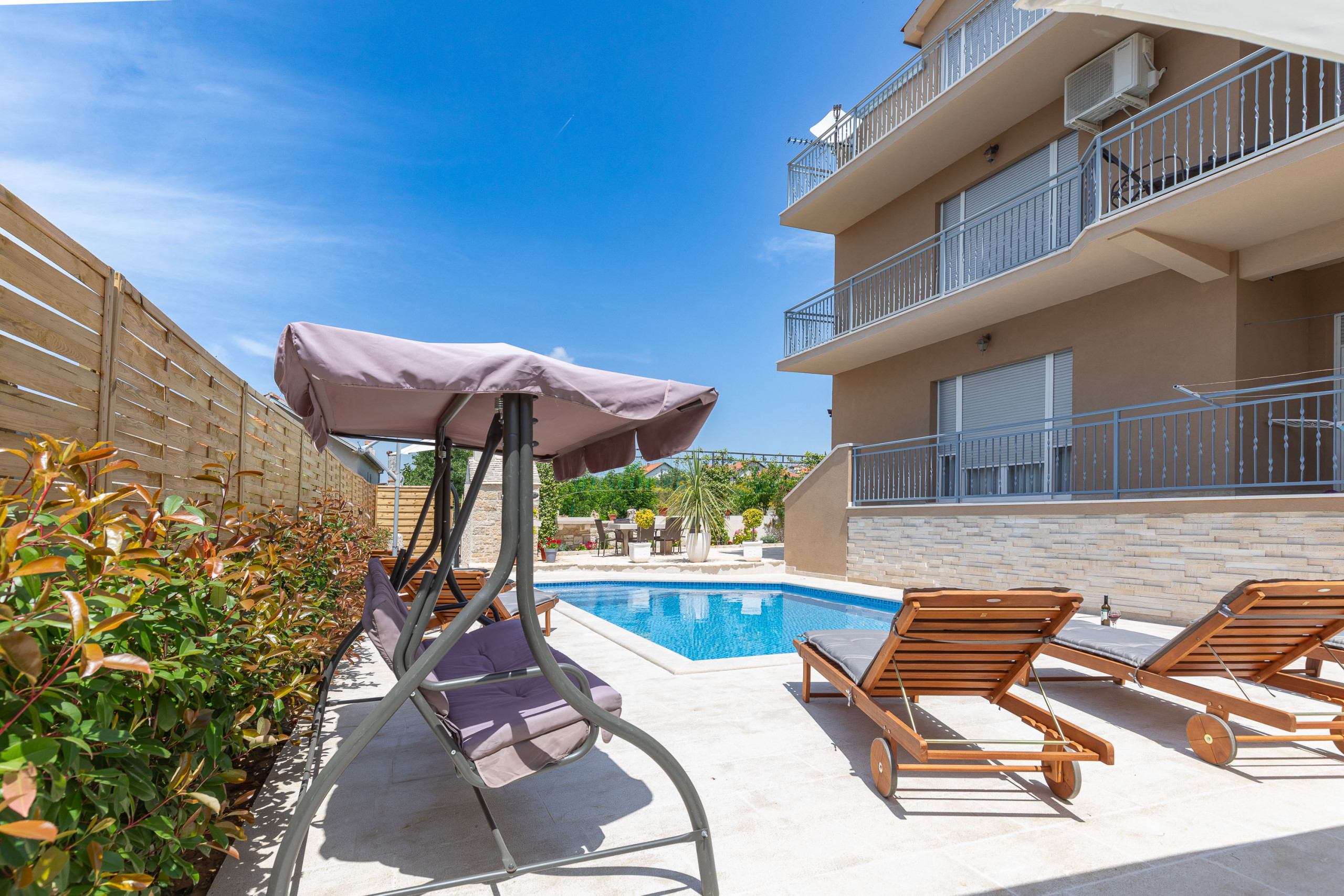 If you are looking for a place to spend a pleasant holiday in our apartment you have everything you need - privacy in the large fenced yard with swimming pool, grill area and outdoor seating area.