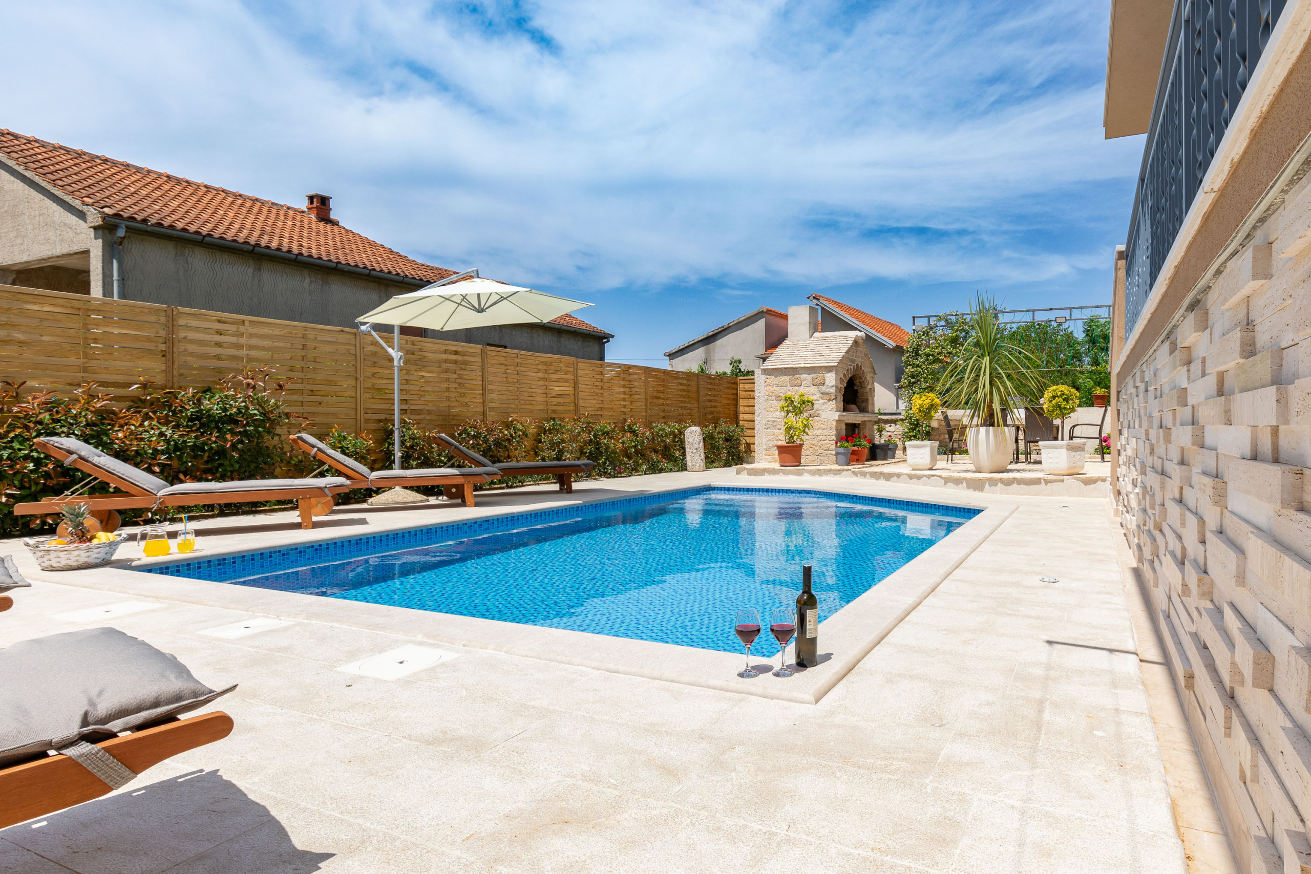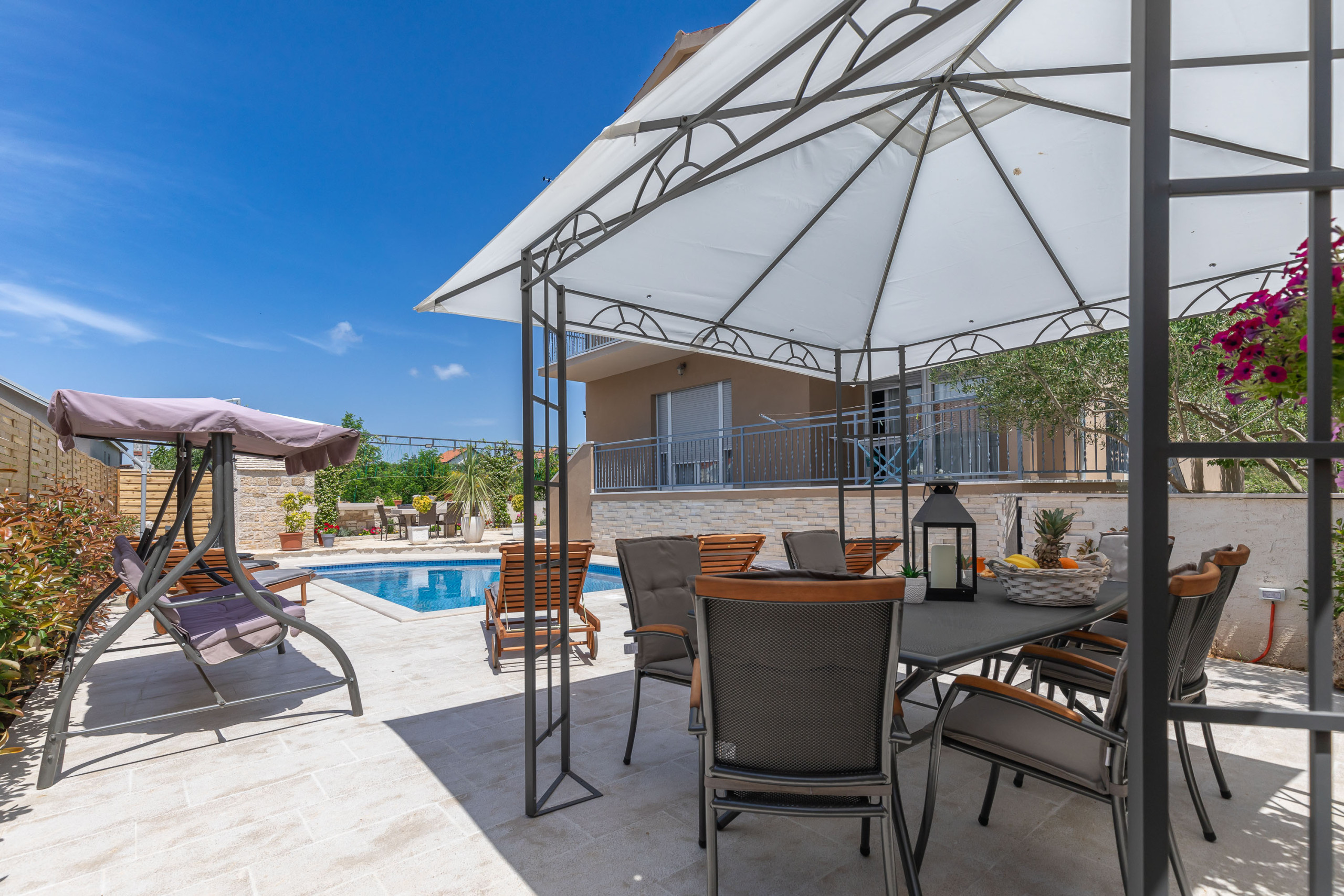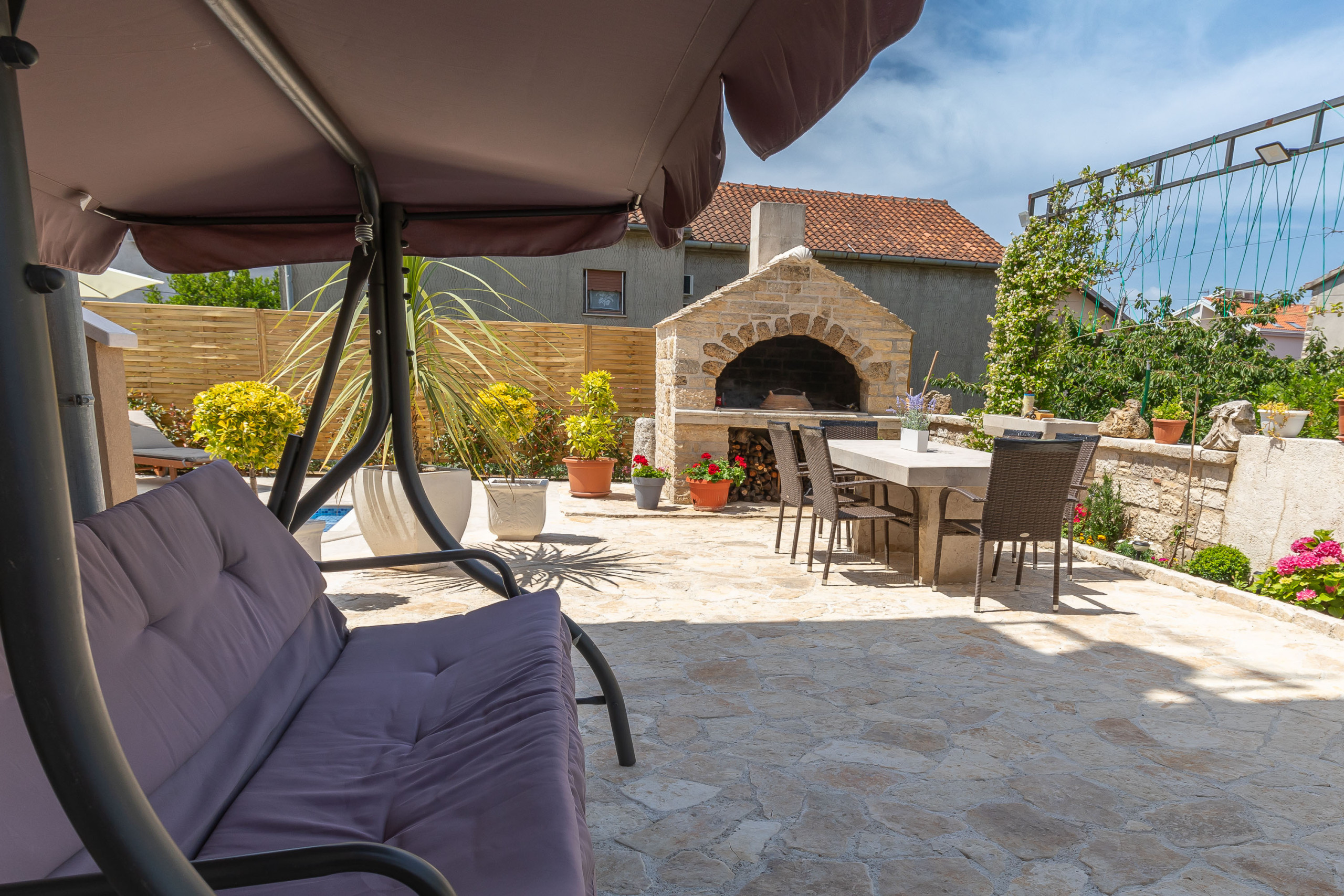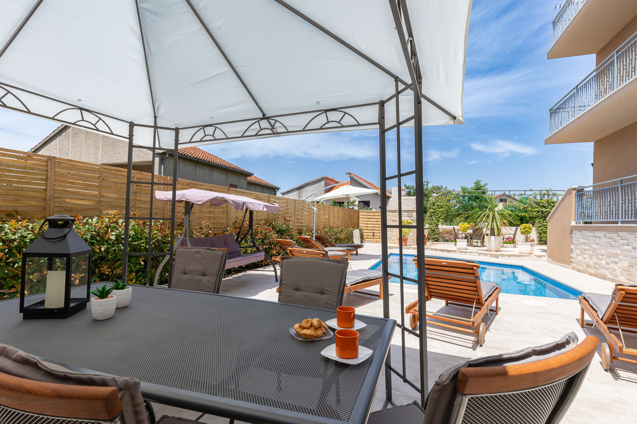 If you are looking for a place to spend a pleasant holiday in our apartment you have everything you need - privacy in the large fenced yard with swimming pool, grill area and outdoor seating area.