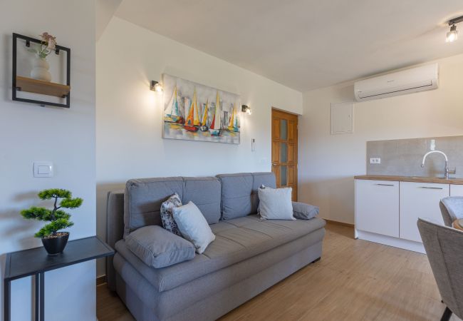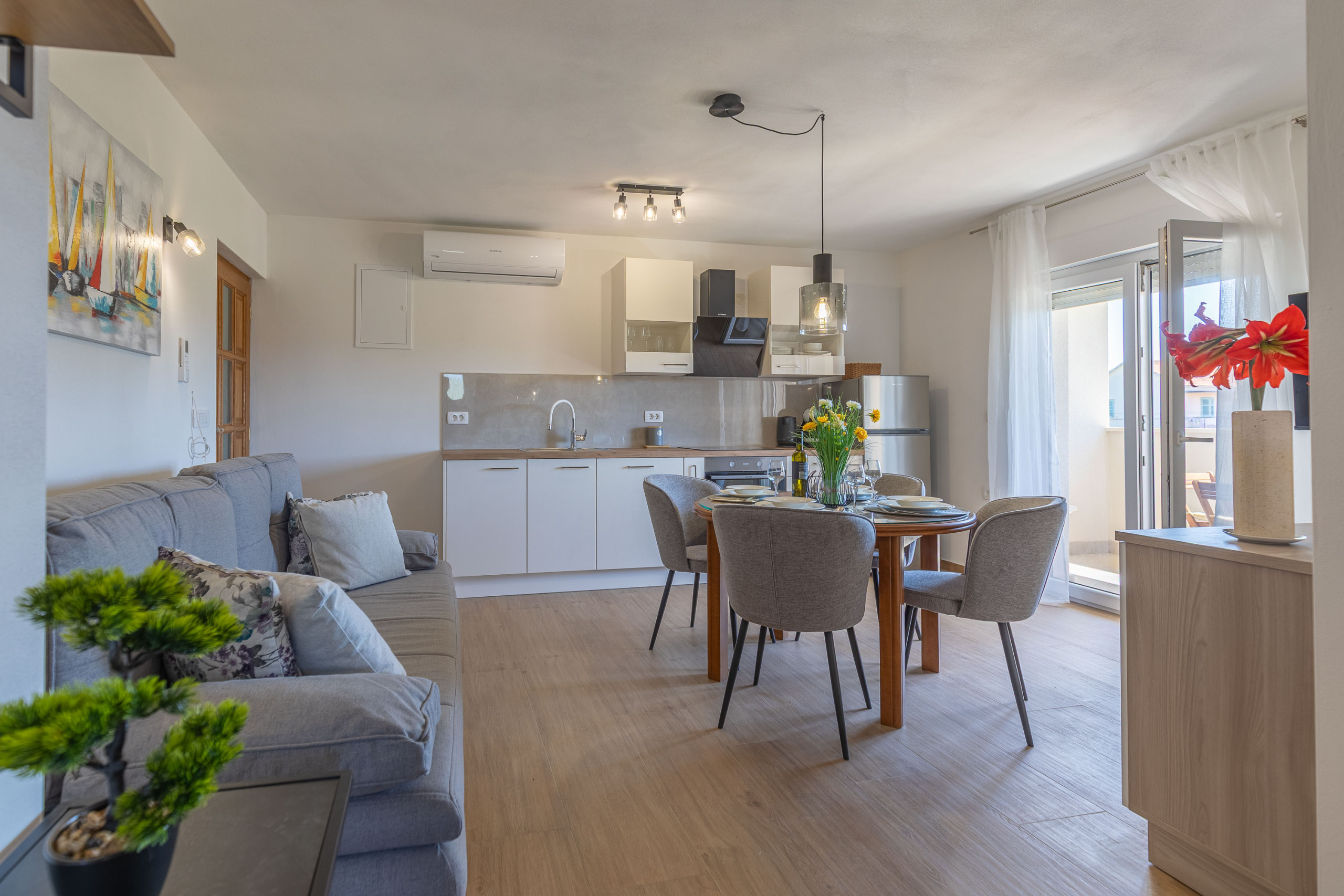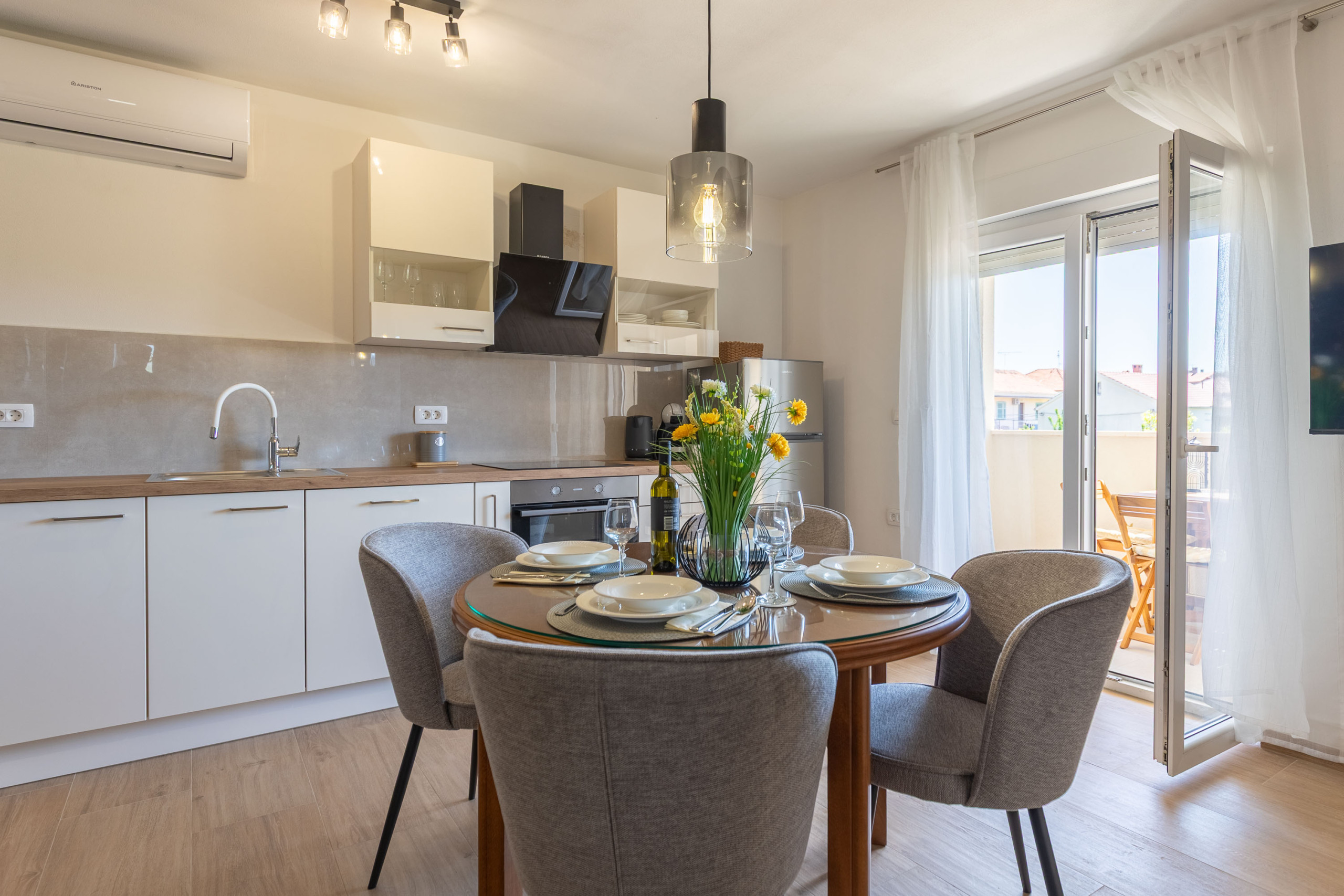 Modern holiday apartment in Zadar with 2 bedrooms, balcony, Wi-Fi, A/C & free parking. Beach 1.4 km, old town 1.7 km. Perfect for families, couples & active guests. No pets allowed.