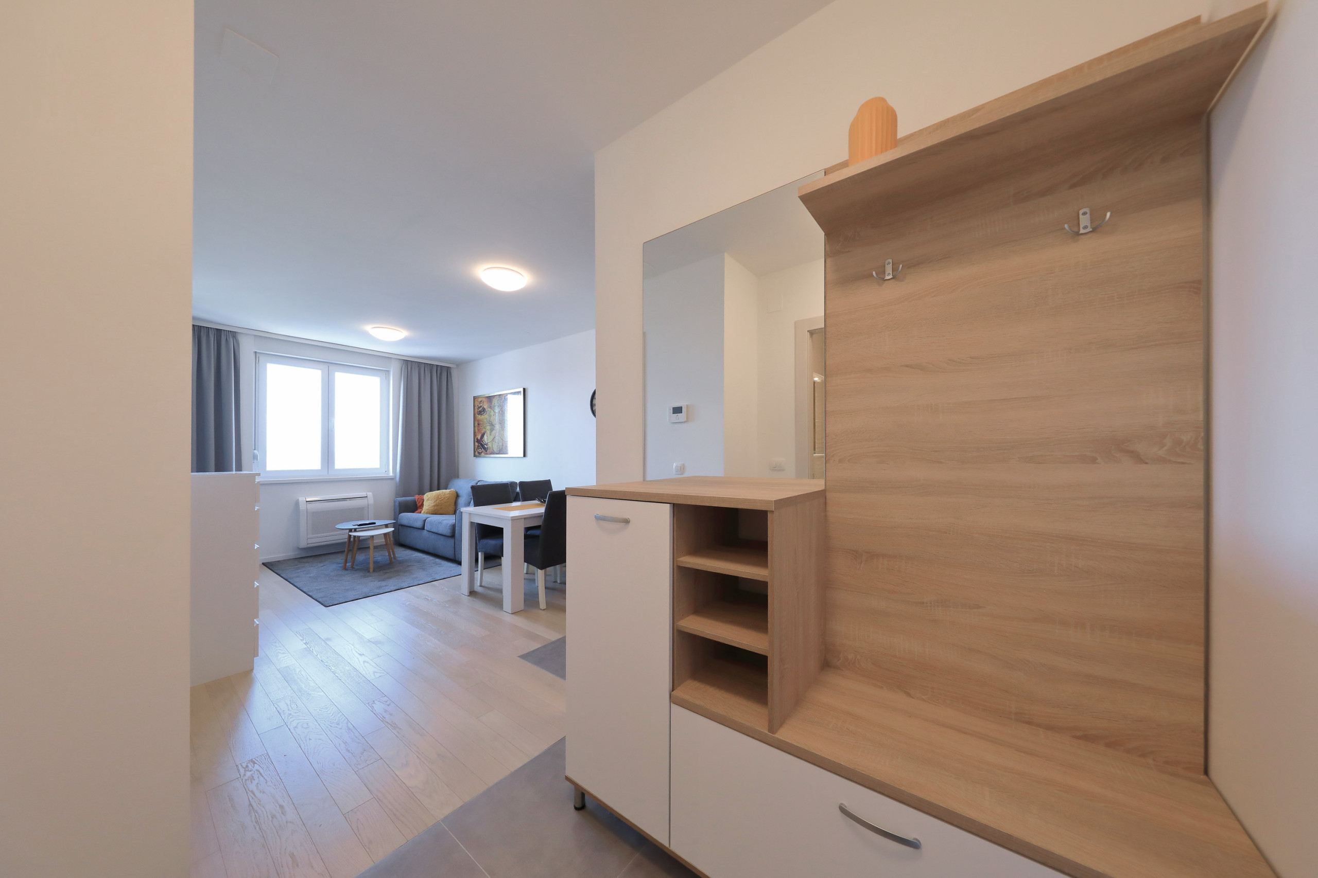 The accommodation is equipped with the following items: lift, washing machine, iron, internet (Wi-Fi), hair dryer, balcony, heat pump, air conditioning in the living room, garage and car park the same building, 1 TV.