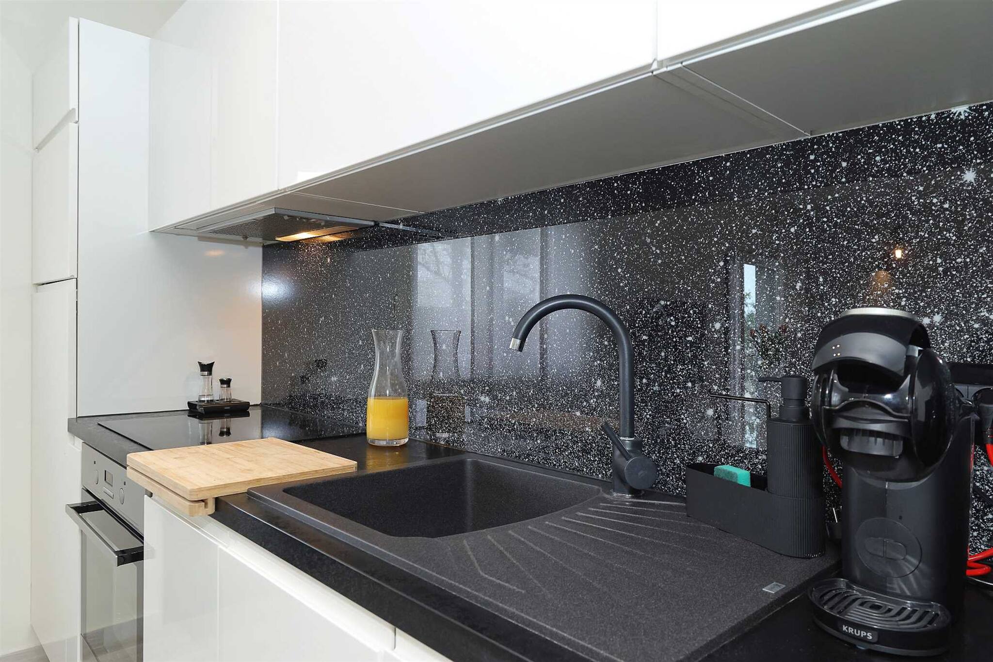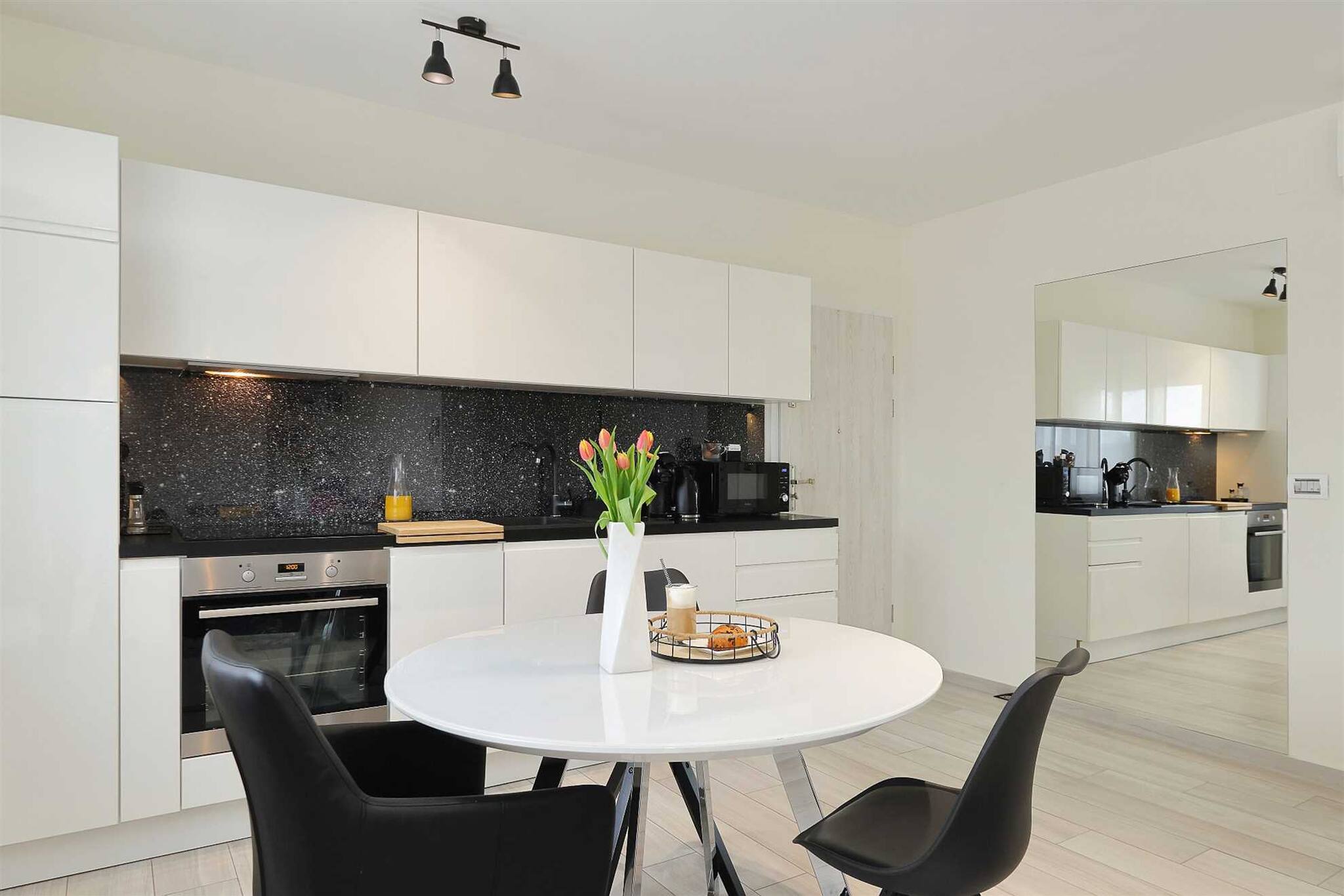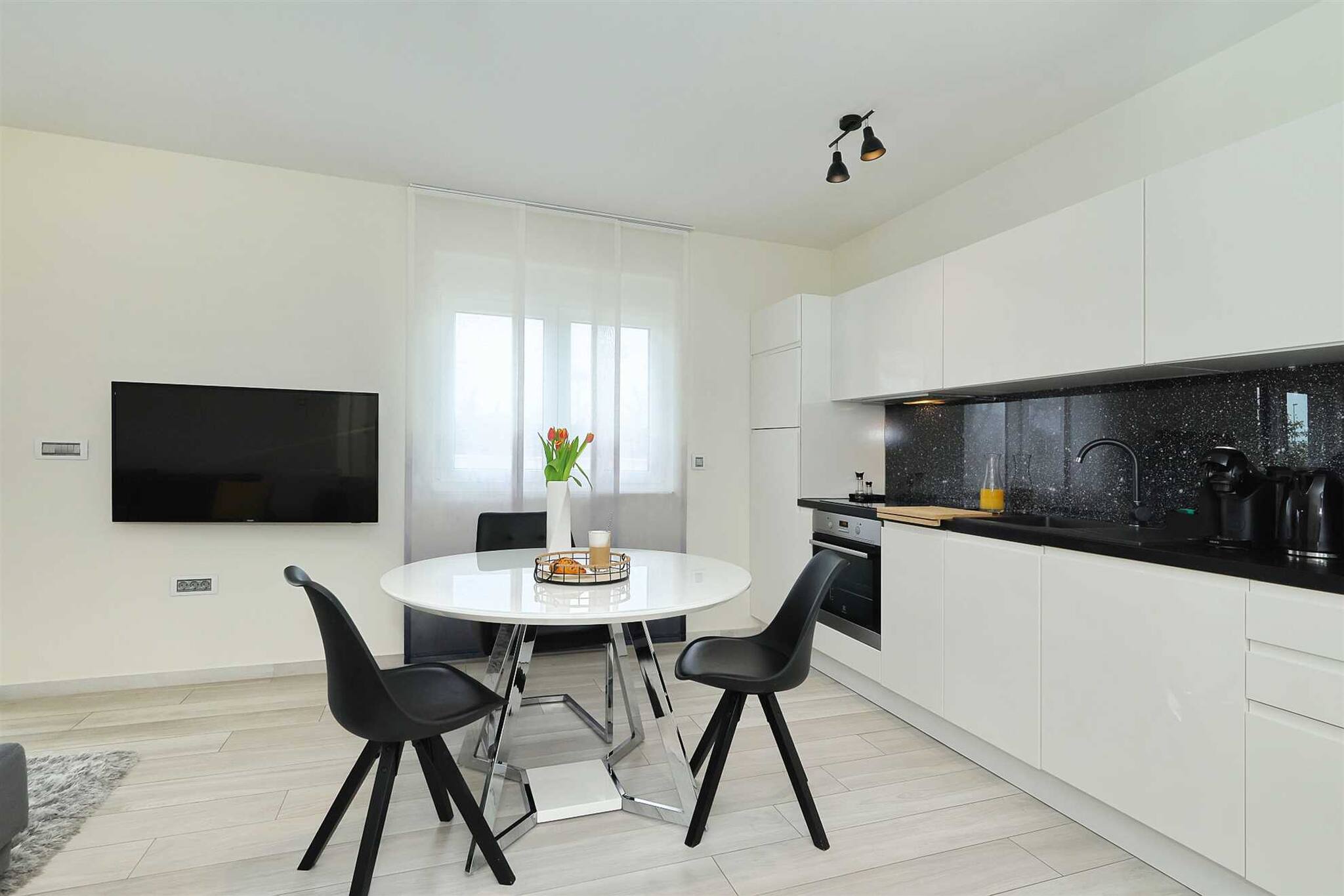 The fully equipped kitchen with a dining table allows you to prepare your own meals with ease. Whether it’s breakfast on the balcony or a romantic dinner at home – you’ll have everything you need.