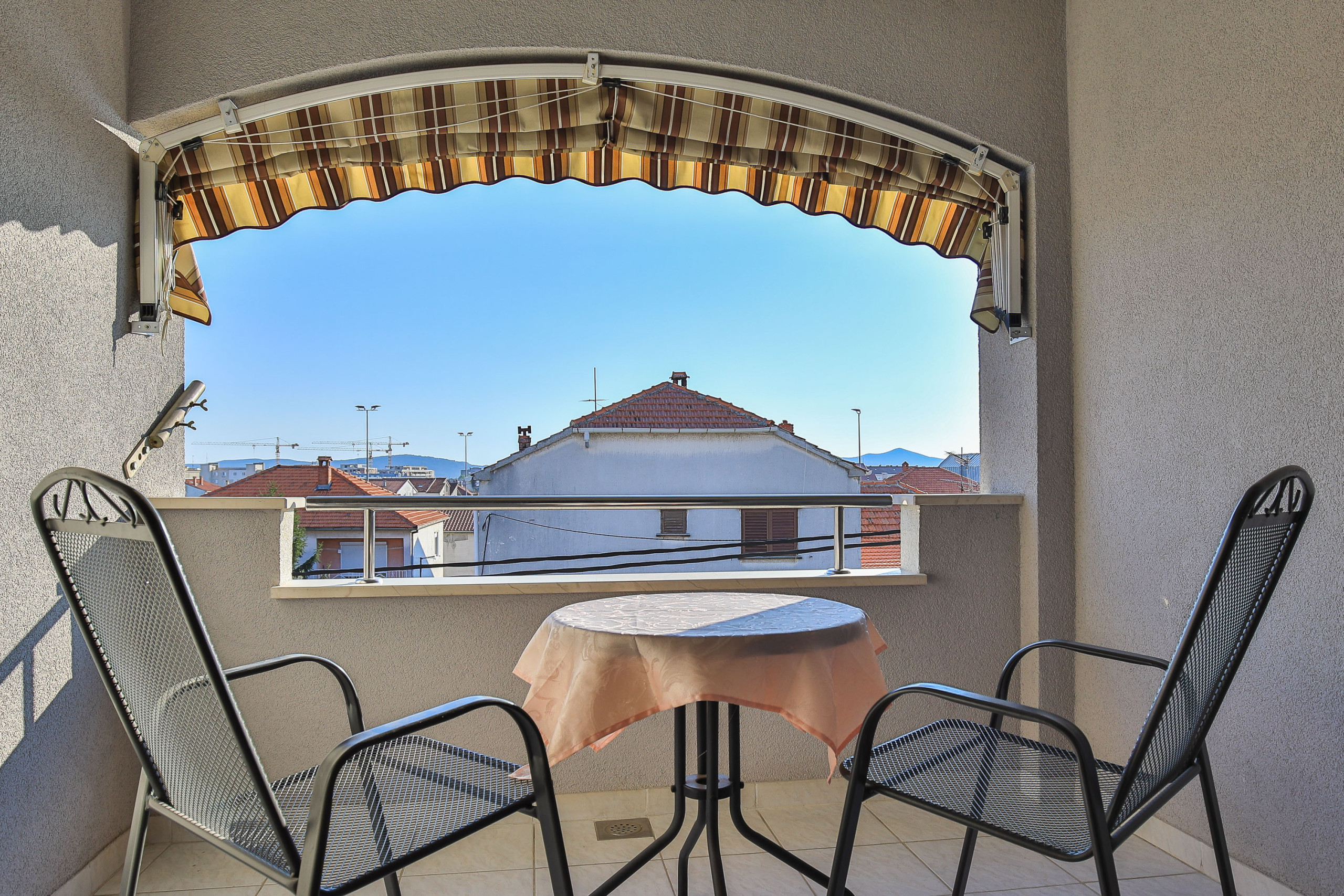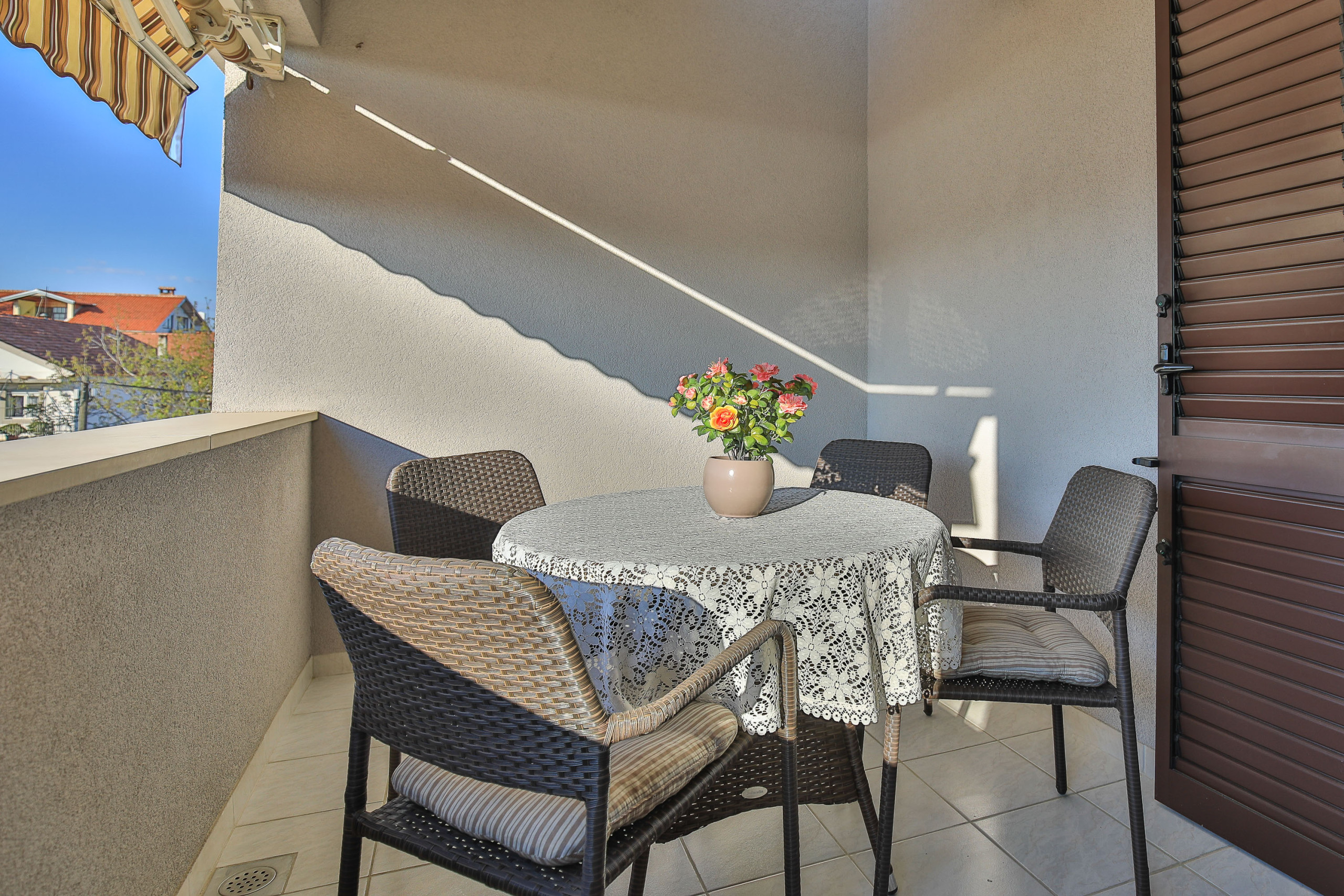 Modern apartment in Zadar for 4 guests with balcony, A/C, Smart TV, kitchen & free Wi-Fi. Beach 1.4 km, city center 1.8 km. Supermarket & restaurant nearby. Parking & washing machine included.