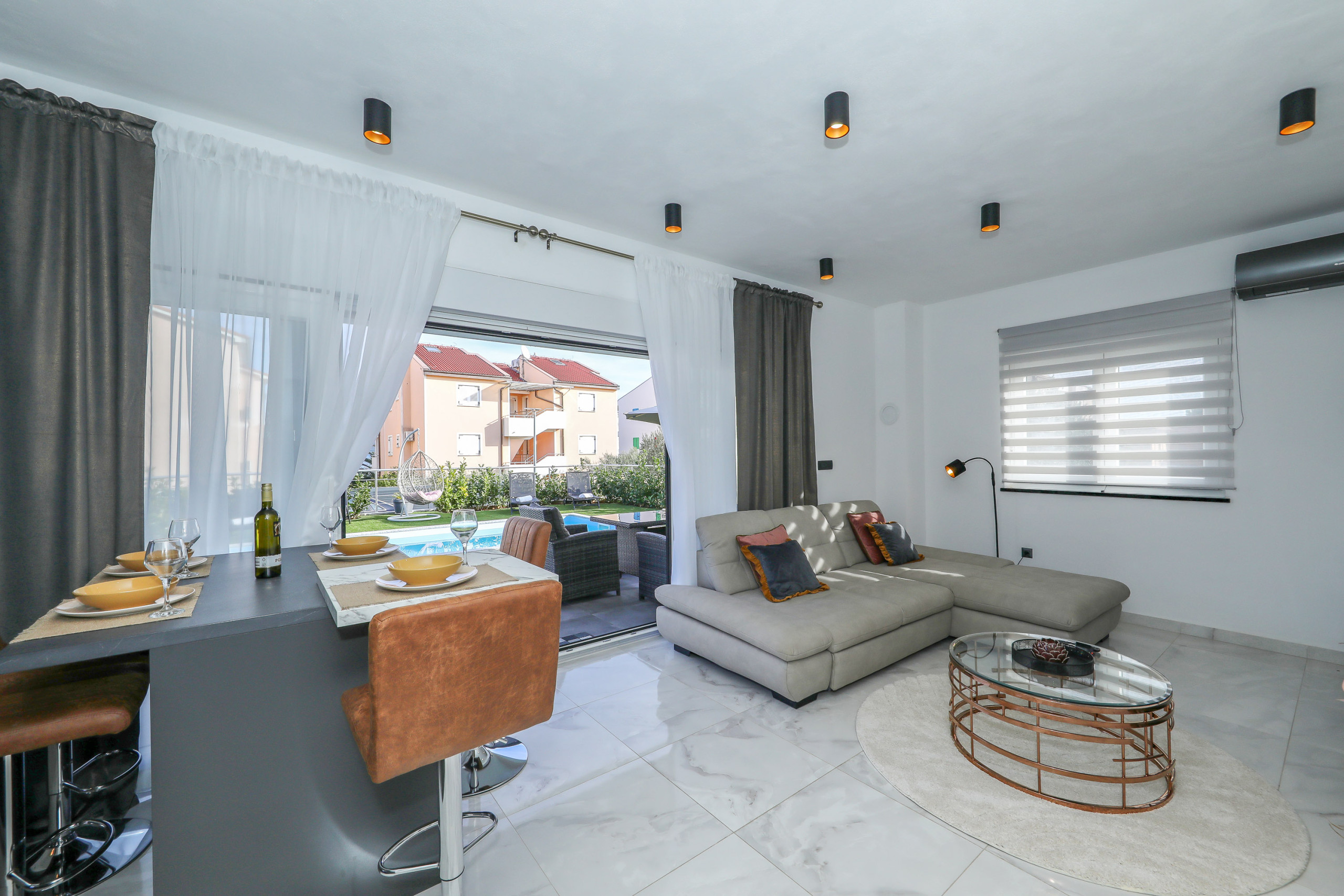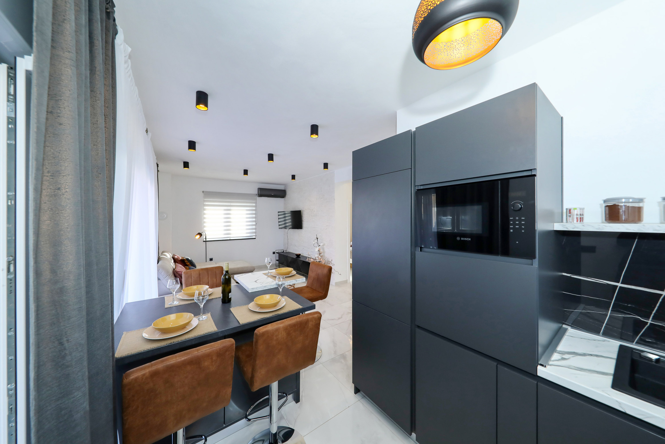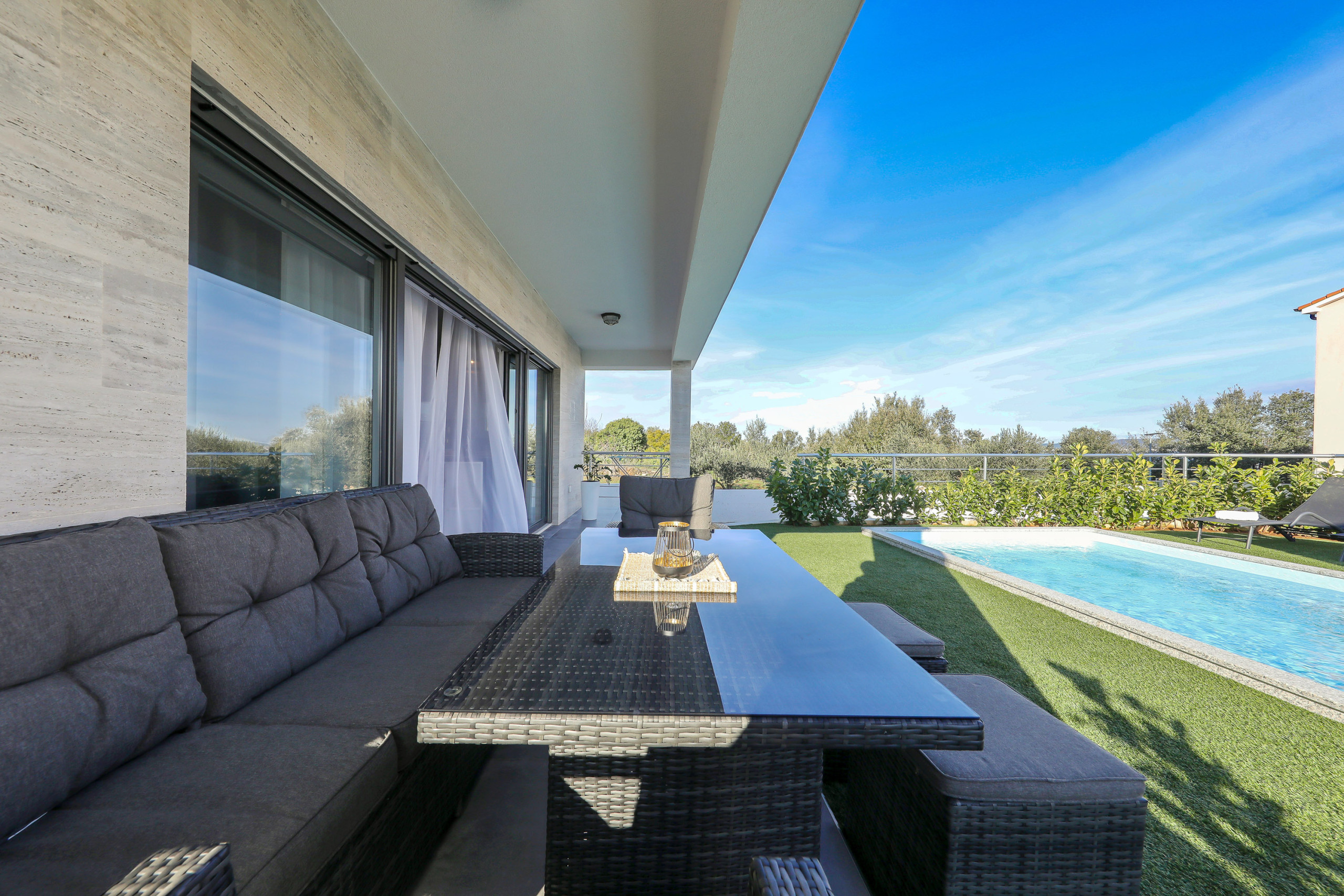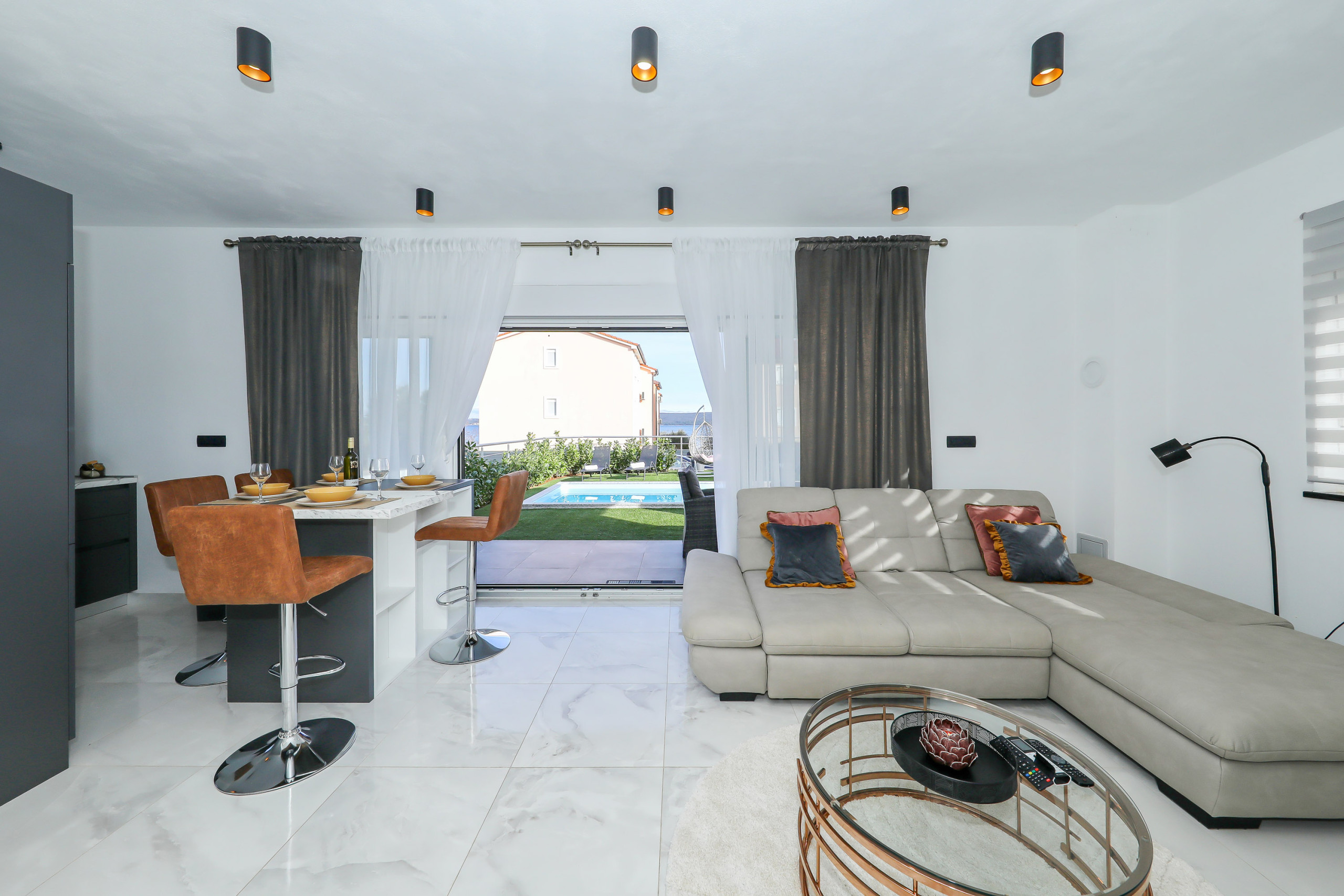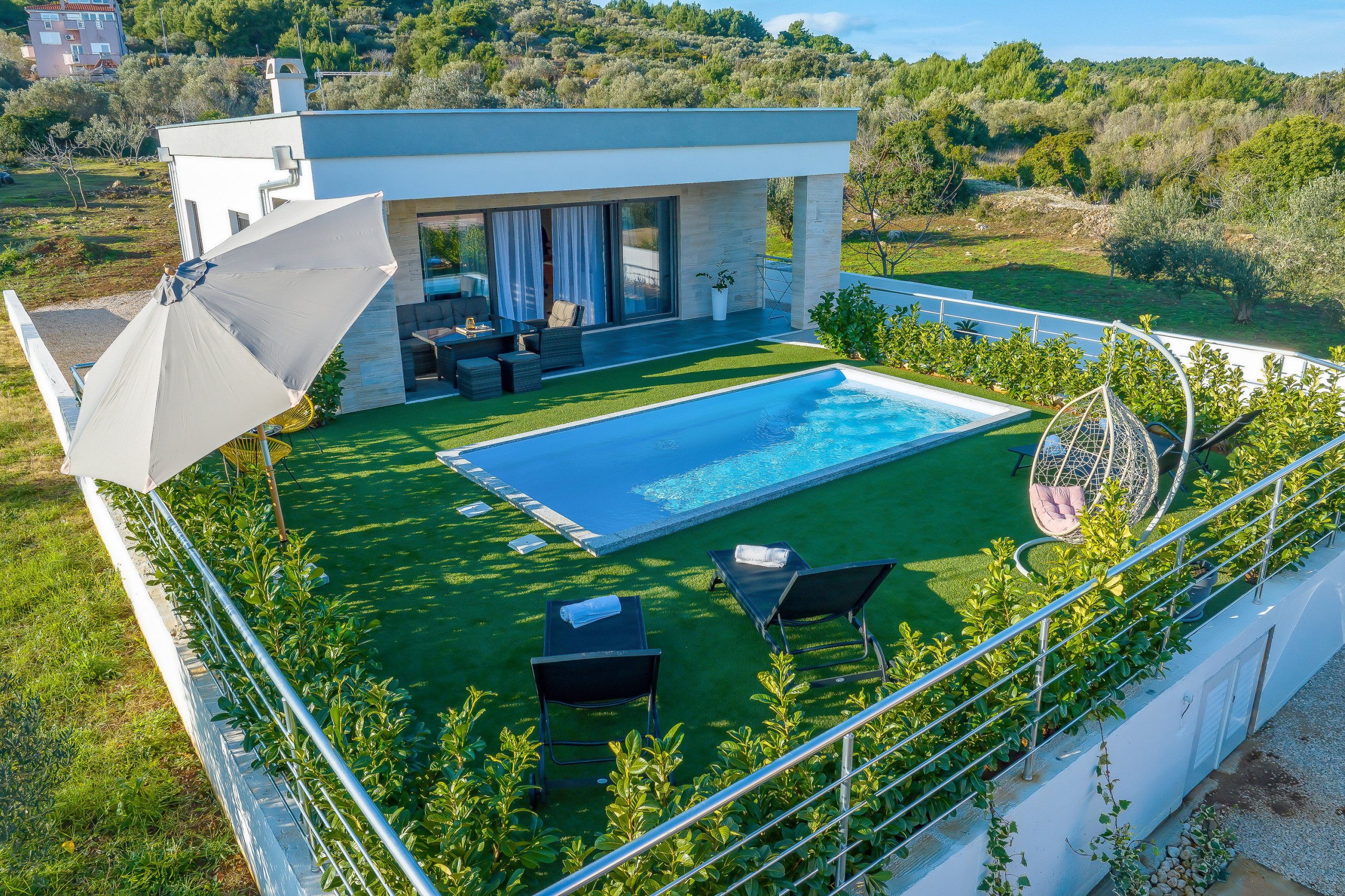 The accommodation is equipped with the following items: garden, garden furniture, terrace, washing machine, barbecue, iron, internet (Wi-Fi), hair dryer, heat pump, air conditioning in the living room, private swimming pool, open-air parking the same building, mosquito net/nets in the bedroom, 1 TV.