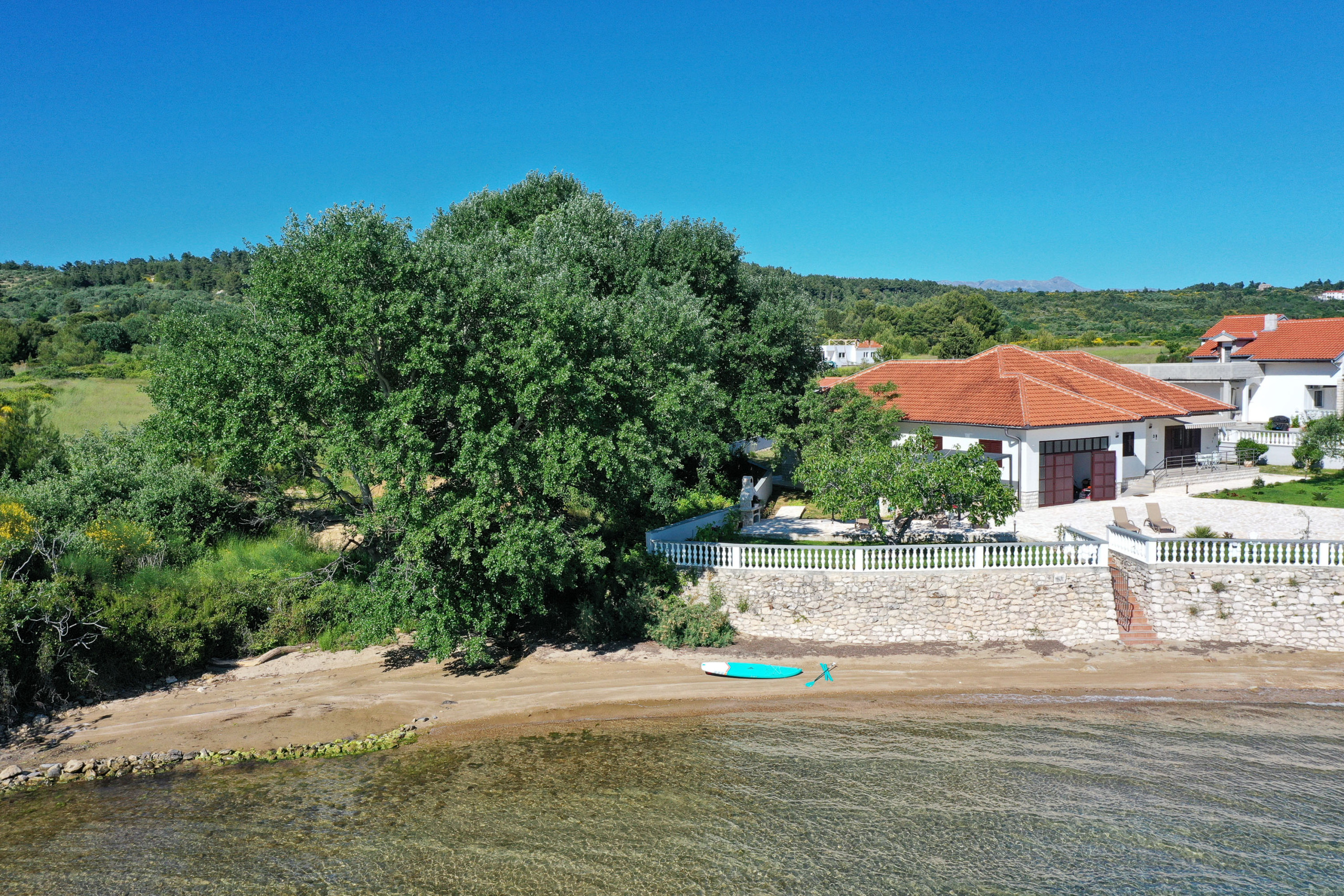 The property is located 0 m from the supermarket, 5 m from the sand beach, 400 m from the the restaurant, 1 km from Ljubač city, 20 km from Hospital Zadar hospital, 35 km from Airport Zadar airport, 40 km from Nationalpark Pakleniva nature reserve, 40 km from Naturpark Velebit nature reserve. The house is situated in a quiet neighborhood next to the sea.