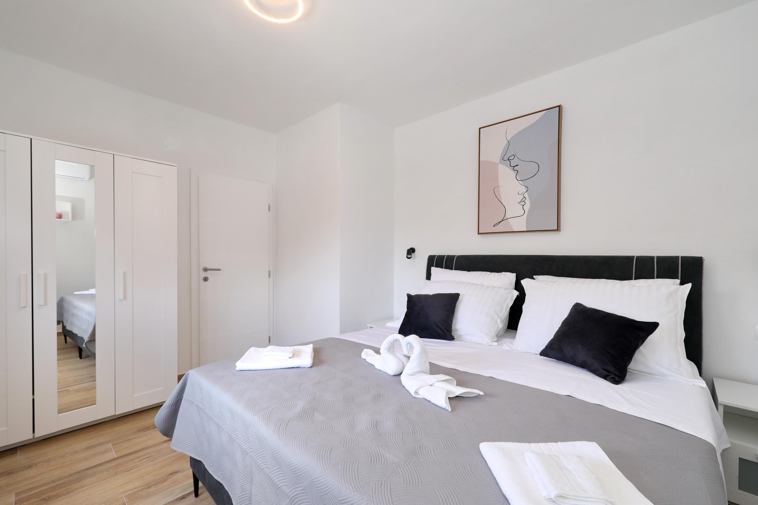 The accommodation boasts two spacious bedrooms featuring two king-size beds and a comfortable sofa bed, comfortably accommodating up to 5 guests. Two well-appointed bathrooms with shower facilities ensure convenience and privacy for all occupants.
