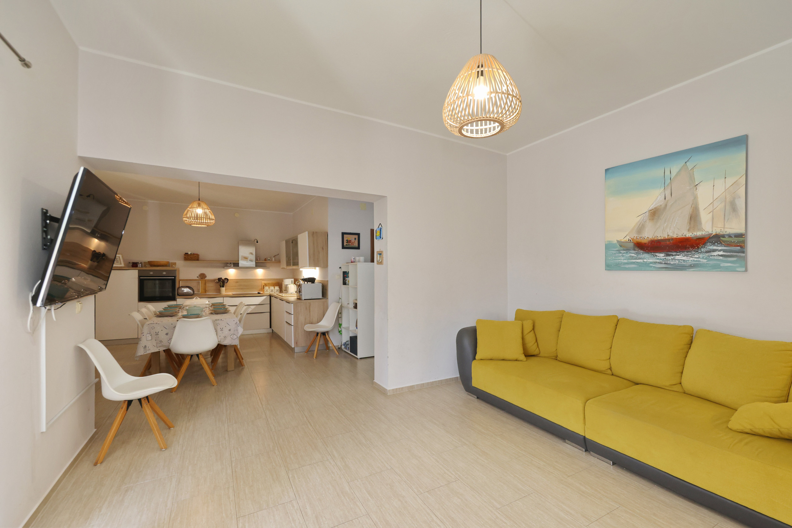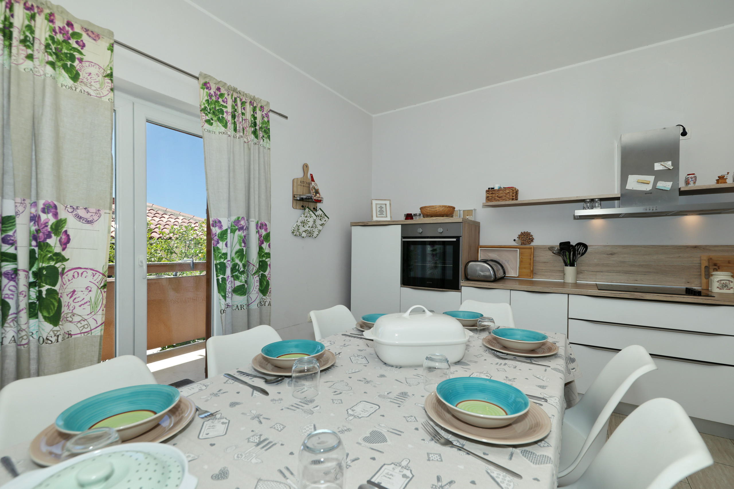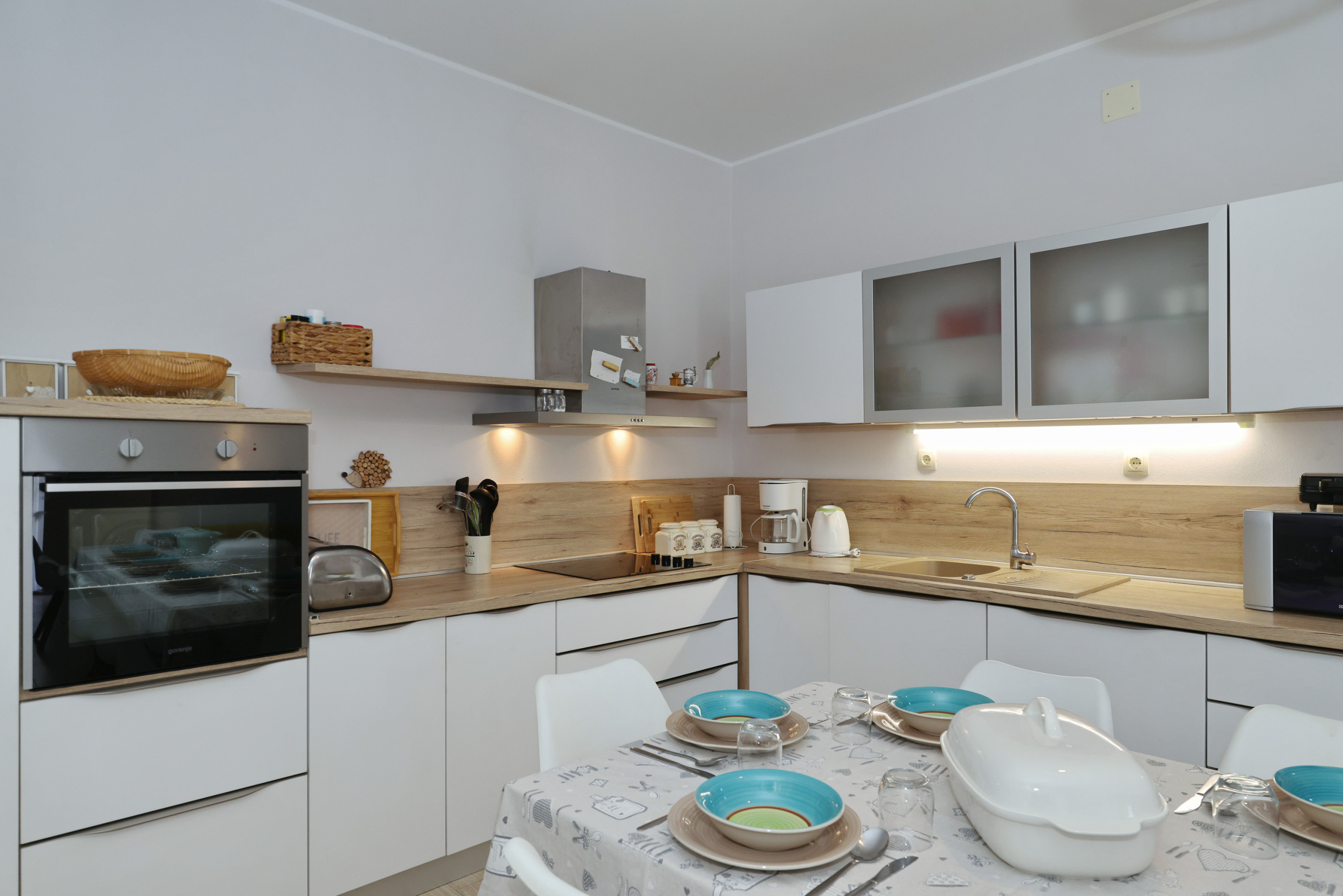 The heart of the home is the American-style kitchen, fully equipped with modern amenities including a glass-ceramic hotplate, fridge, freezer, dishwasher, oven, microwave, coffee machine, and all necessary kitchenware. Enjoy preparing delightful meals with loved ones or use the outdoor BBQ and picnic area for al fresco dining.