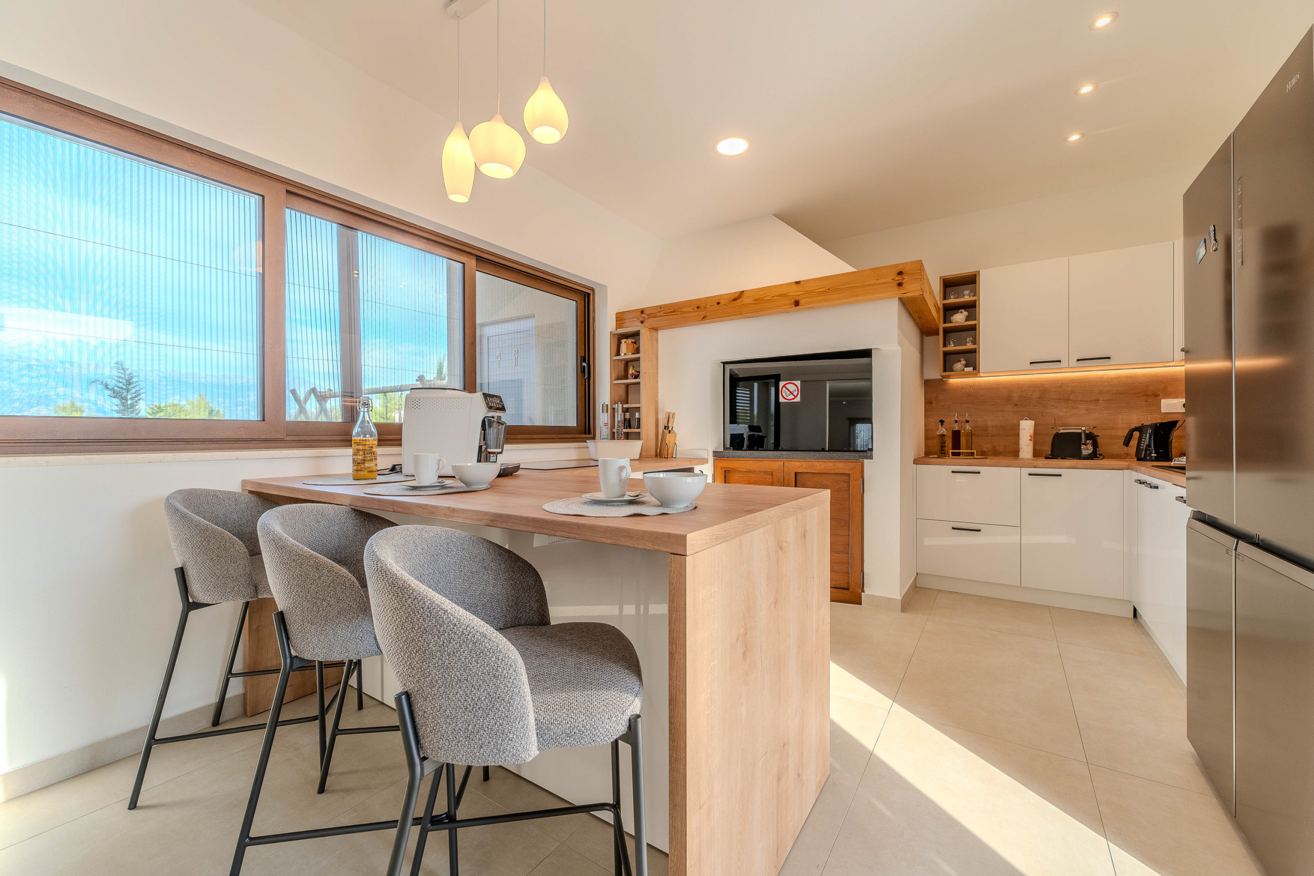The house is tastefully-furnished, is modern, and is 245 m². It has views of waterfront and the mountain.