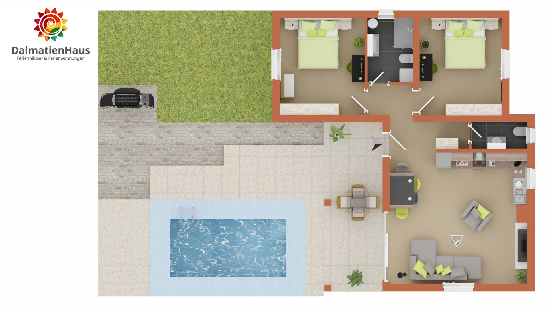 › Vir › Jandro, Modernes Ferienhaus für Familie mit Pool