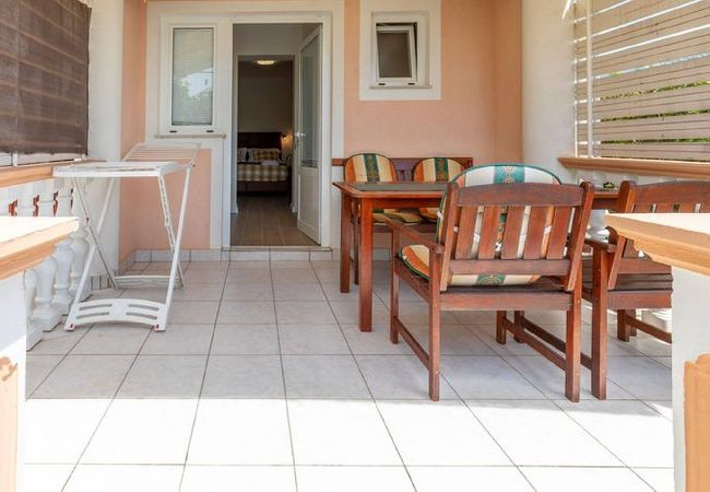 The accommodation is equipped with the following items: garden furniture, 10 m² terrace, barbecue, internet (Wi-Fi), balcony, heat pump, air-conditioned, open-air parking the same building, 1 TV.