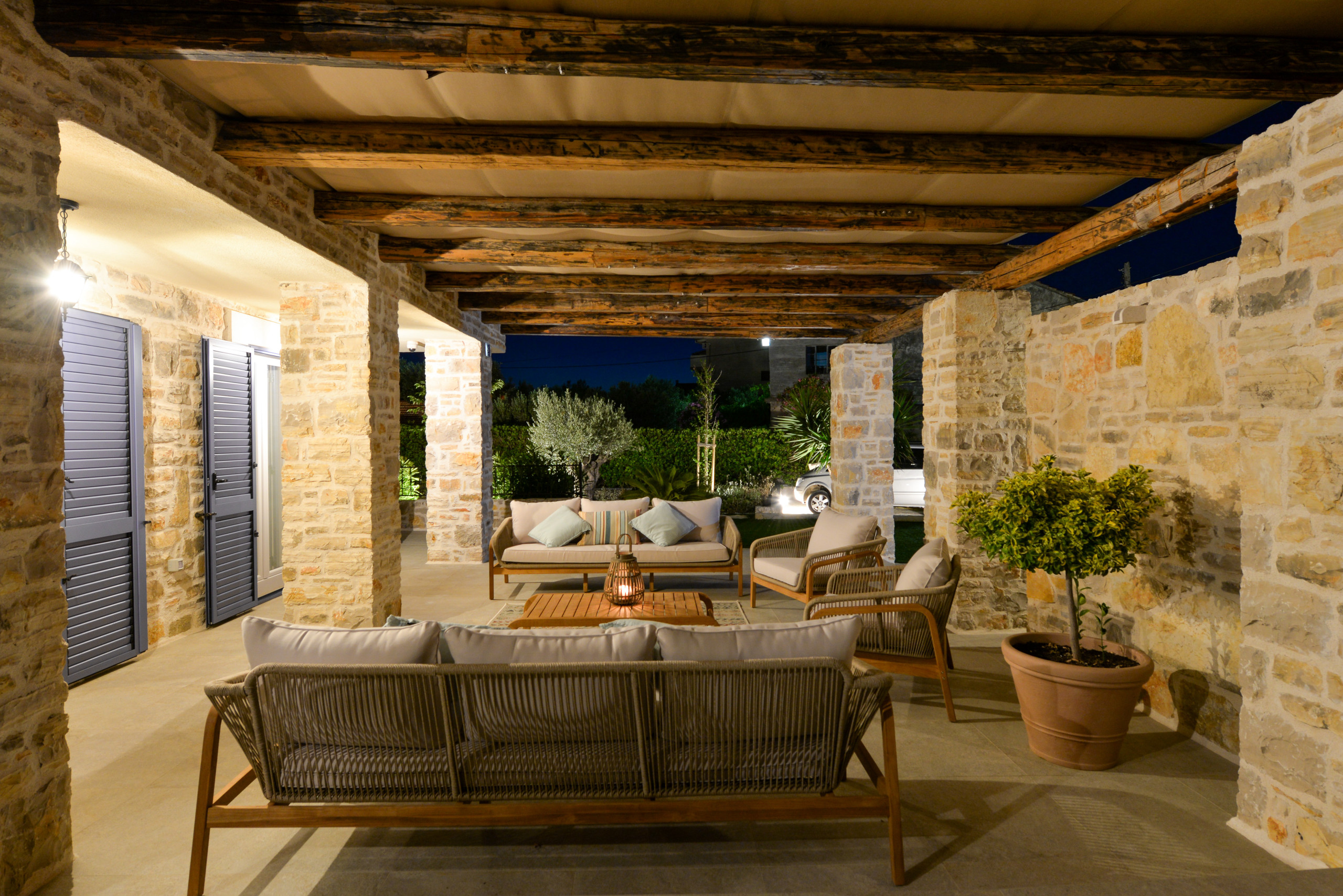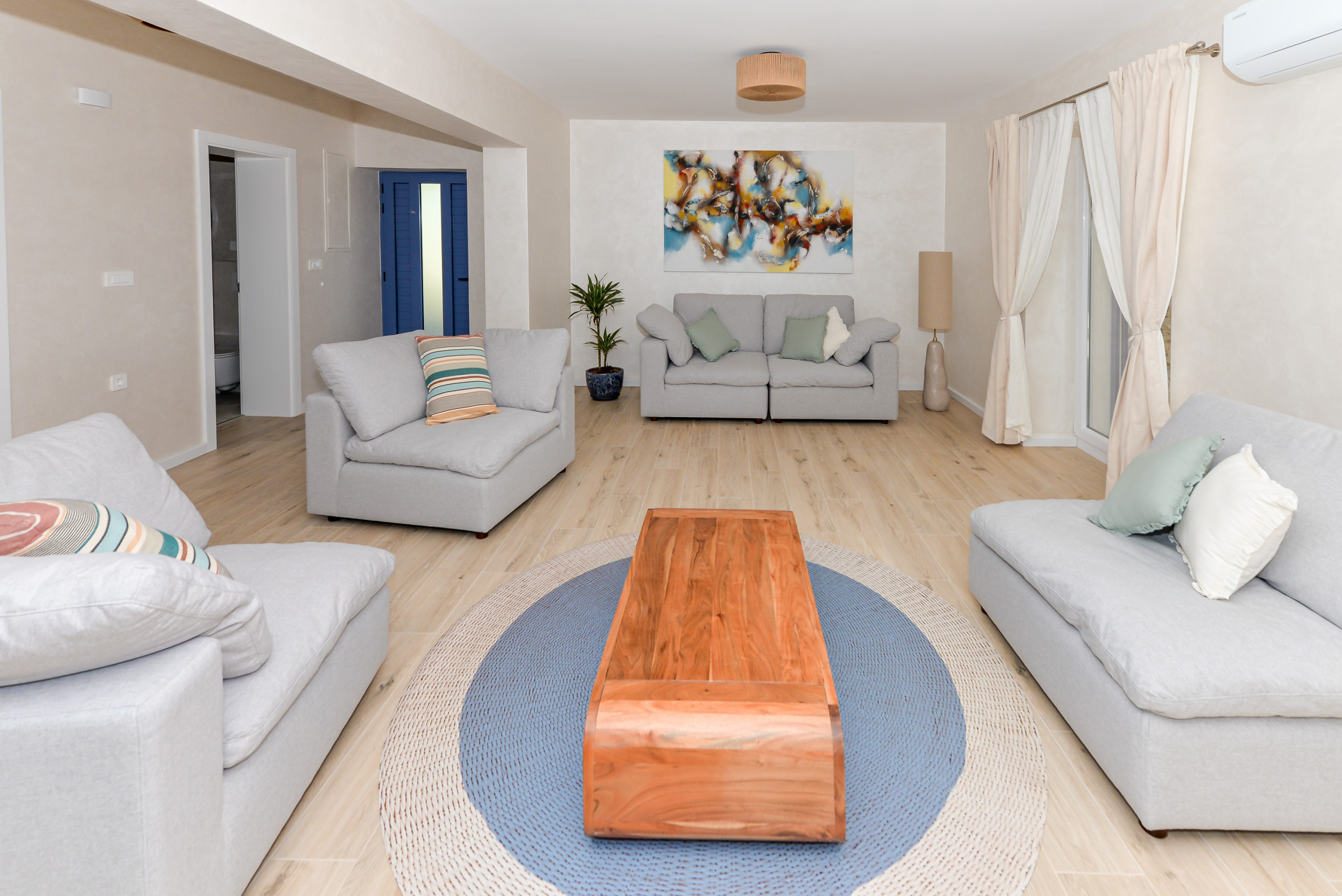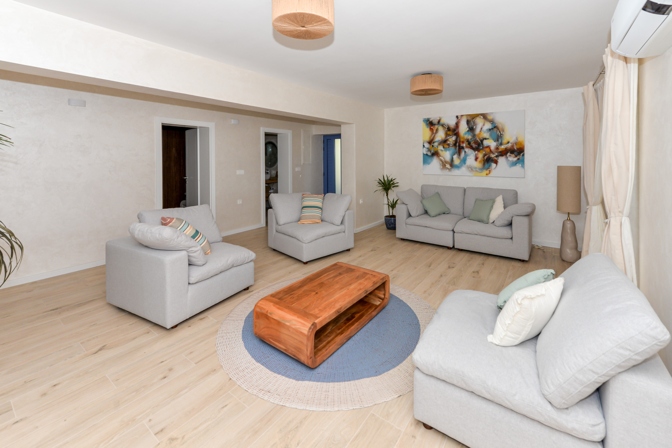 The villa is cozy, is a new build, and is 320 m². The property is located right next to the beach. It has views of waterfront and the garden.