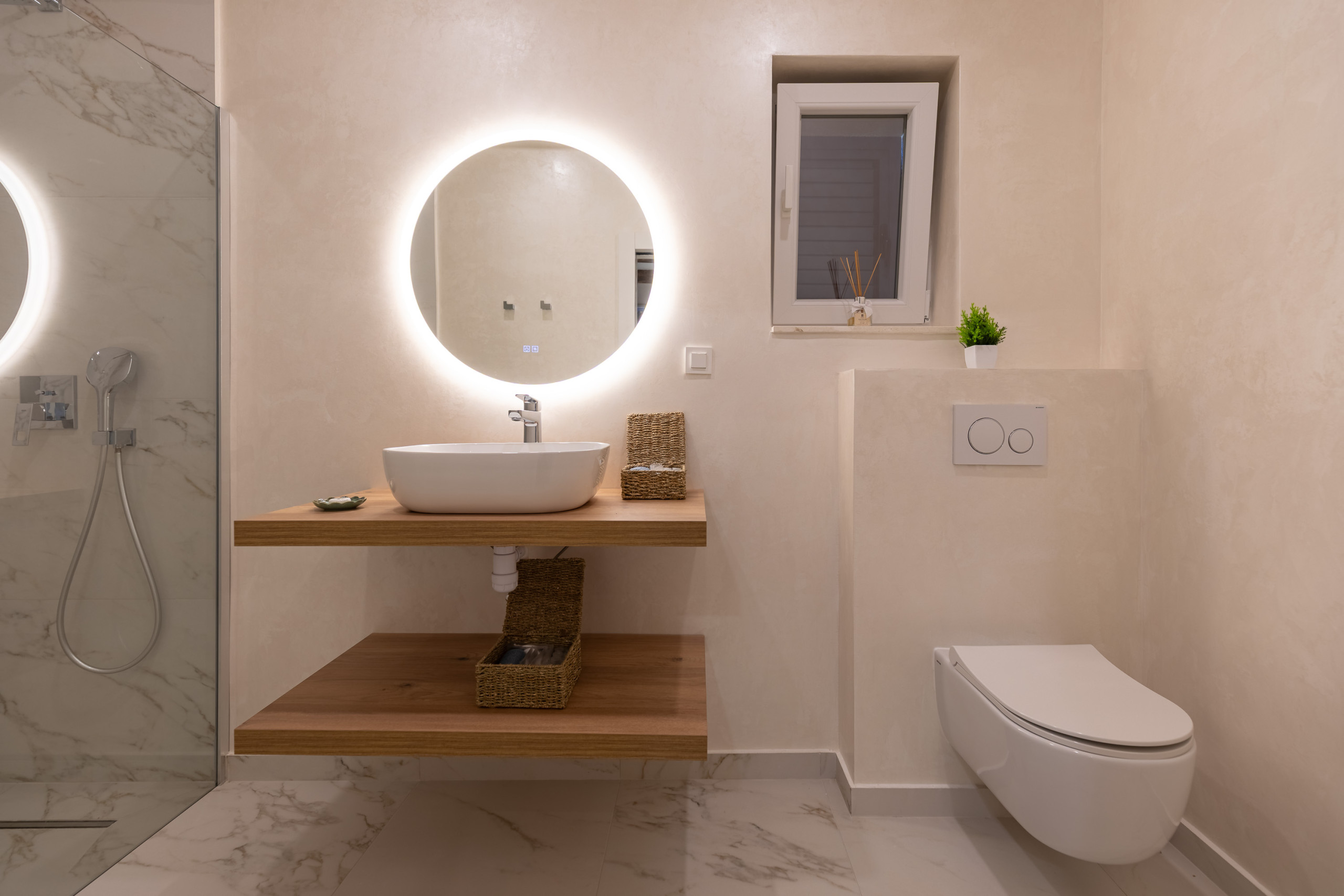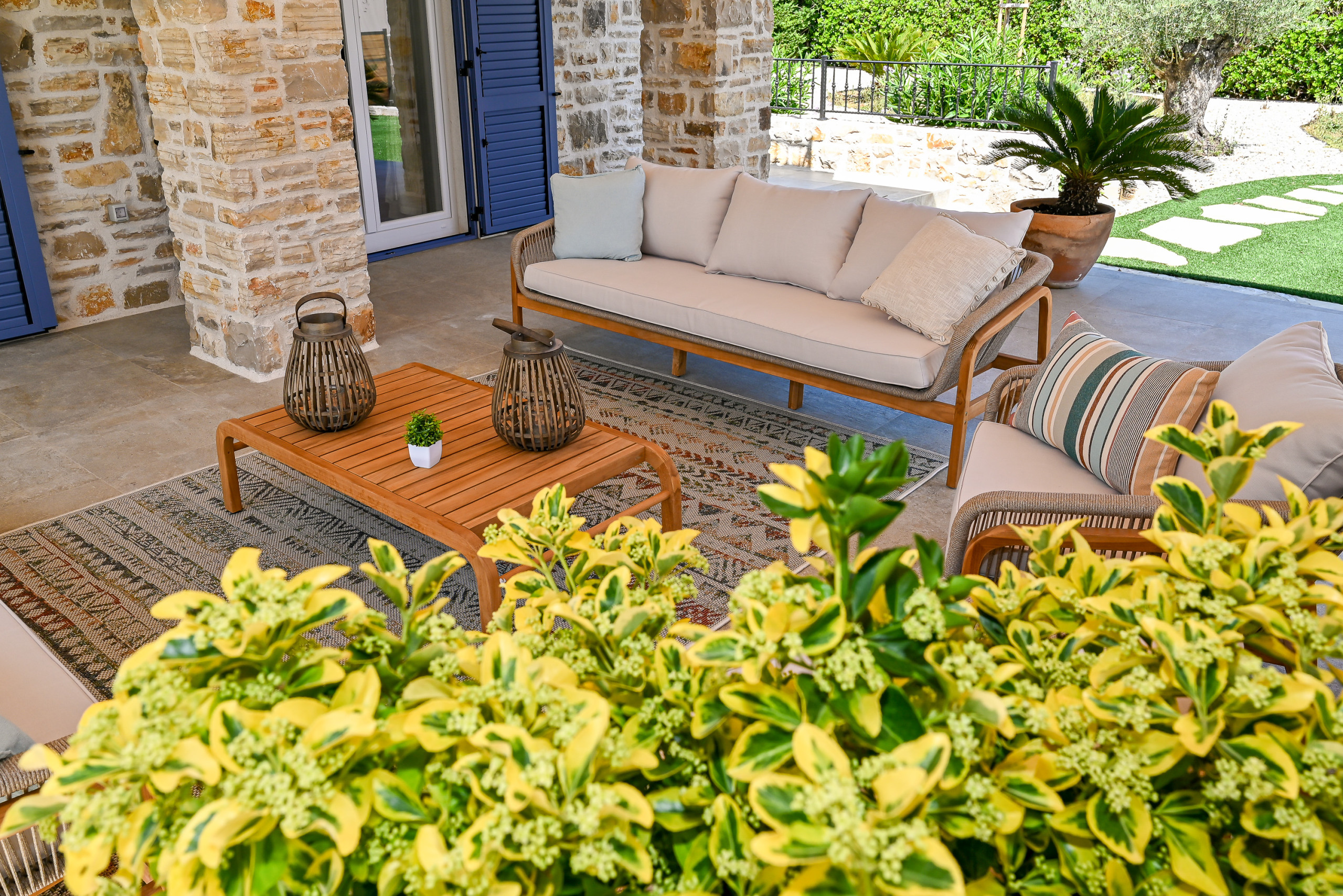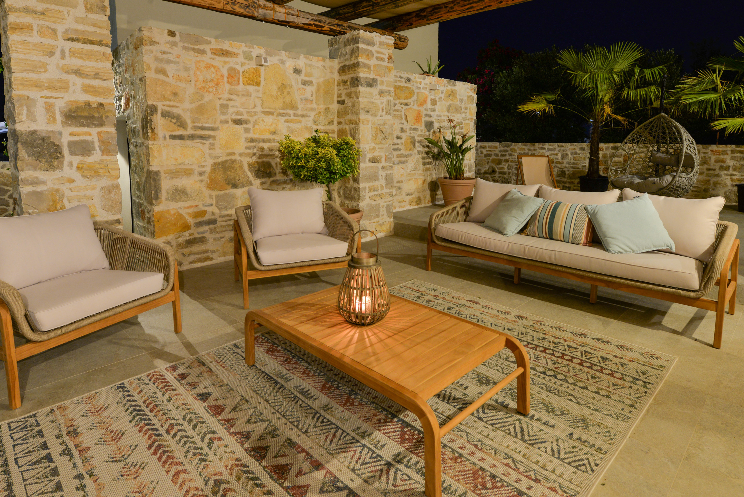 The villa is cozy, is a new build, and is 320 m². The property is located right next to the beach. It has views of waterfront and the garden.