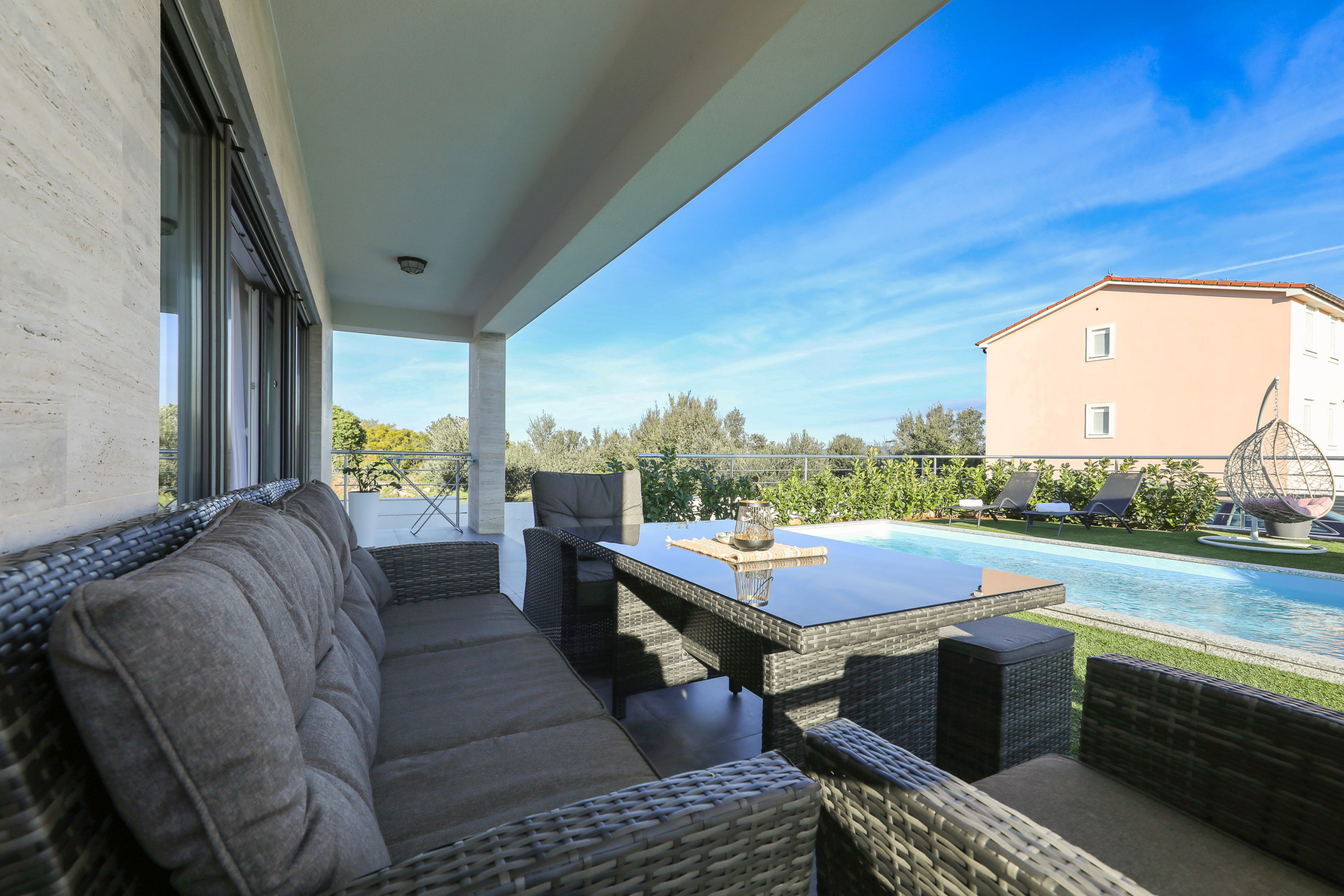 Der Balkon bietet einen Panoramablick und während der Saison steht Ihnen auch ein Pool im Freien zur Verfügung. In der offenen Wohnküche können Sie gemeinsam Mahlzeiten zubereiten und die gemütliche Atmosphäre genießen. Das Ferienhaus ist auch ideal für Familien geeignet und verfügt zusätzlich über eine Pad-/Kapsel-Kaffeemaschine sowie einen Smart-TV.