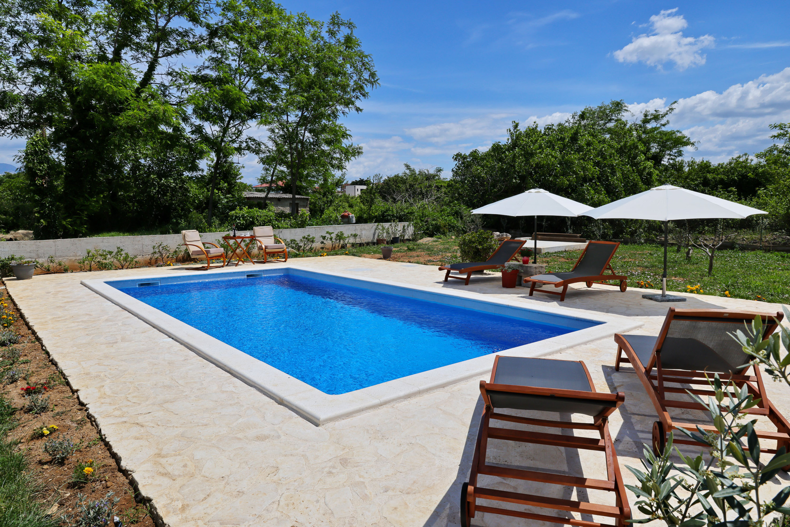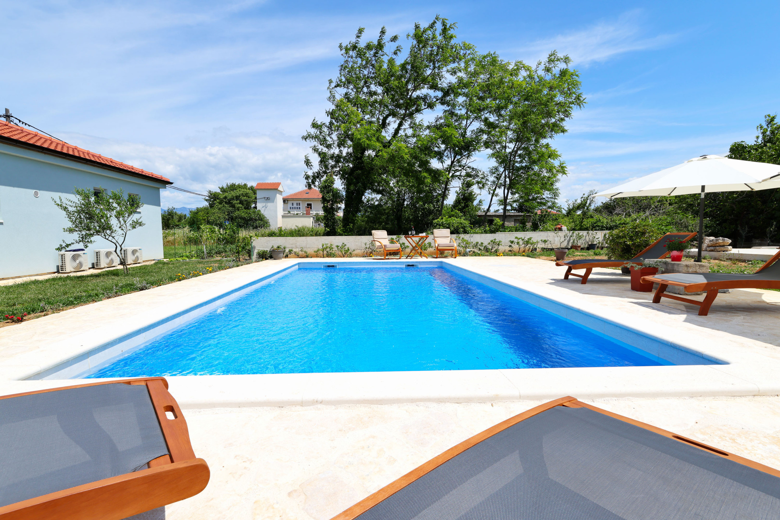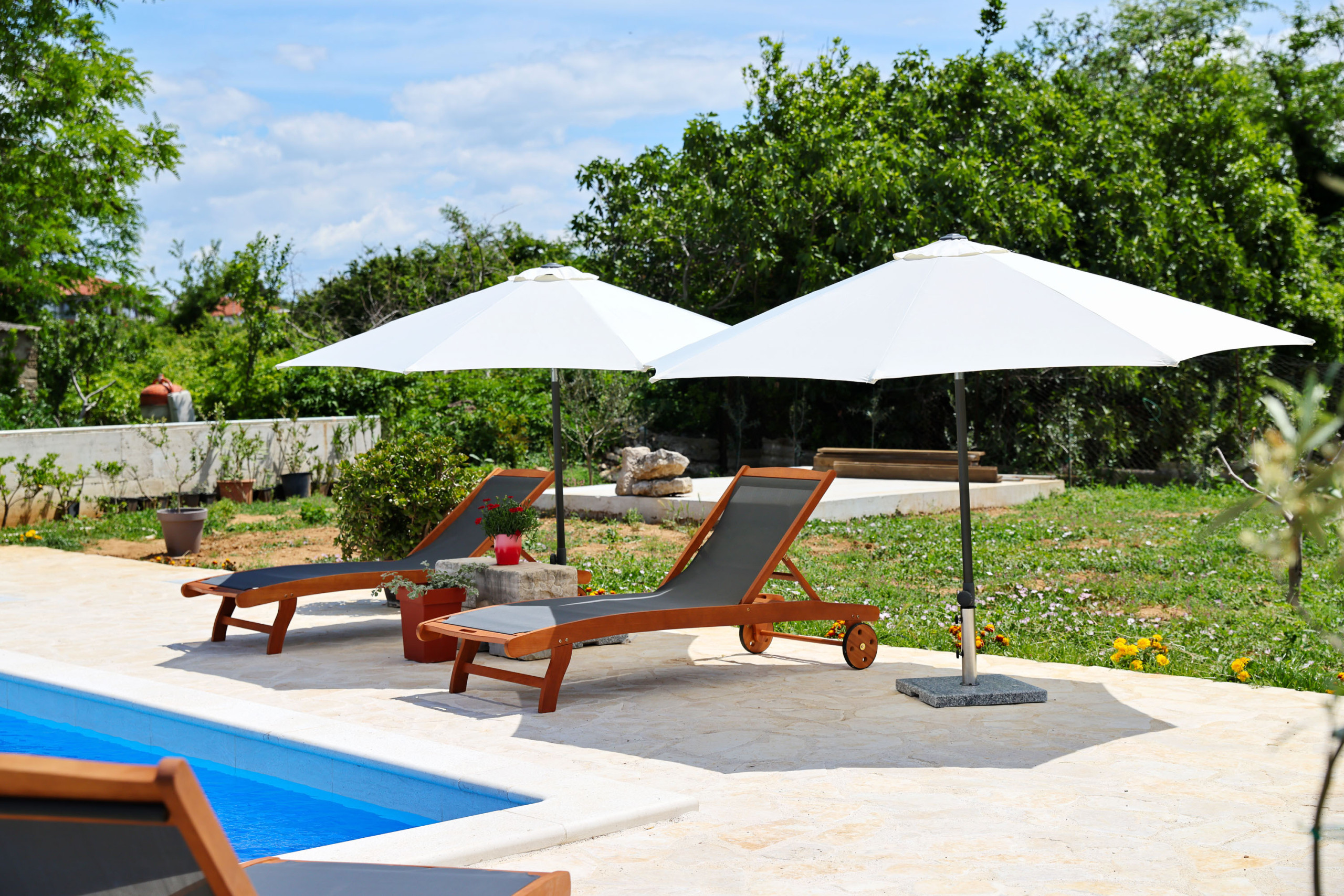 ... schattigen Plätzen zum Entspannen. Alle drei Schlafzimmer sind mit komfortablen Doppelbetten (180 x 200) davon eines mit en suit Duschbad und geräumigen Kleiderschränken ausgestattet. Beide Duschbäder bieten alles was benötigt wird. Der große Wohnraum mit integrierte Küche und Essbereich erstrahlt in hellen Farben.Von der überdachten und möblierten Terrasse schauen Sie auf den 15 qm großen Pool mit komfortablen Sonnenliegen, die zum Verweilen einladen. Ebenfalls erwartet Sie ein Außengrill, mit dem Sie sich an dalmatinischen Spezialitäten versuchen können. Der Poolbereich bietet komplette Privatsphäre, da er umzäunt ist.Für Ihren Komfort ist im Wohnbereich eine Klimaanlage vorhanden. Das parken ist direkt auf dem Grundstück neben dem Haus möglich.Zusammenfassend bietet Das Ferienhaus Eda eine perfekte Unterkunft für einen ruhigen und komfortablen Urlaub. Freuen Sie sich auf einen Pool mit gemütlichen Sonnenliegen, einen Garten und einen Urlaub fernab vom Massentourismus.Wir freuen uns darauf Sie in unserem Ferienhaus willkommen zu heißen!Kaution 200 € in Bar rückführend vor Ort zu hinterlegen !!!