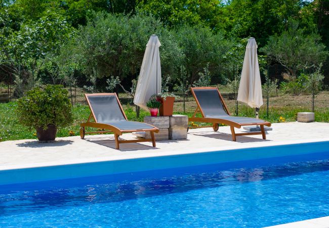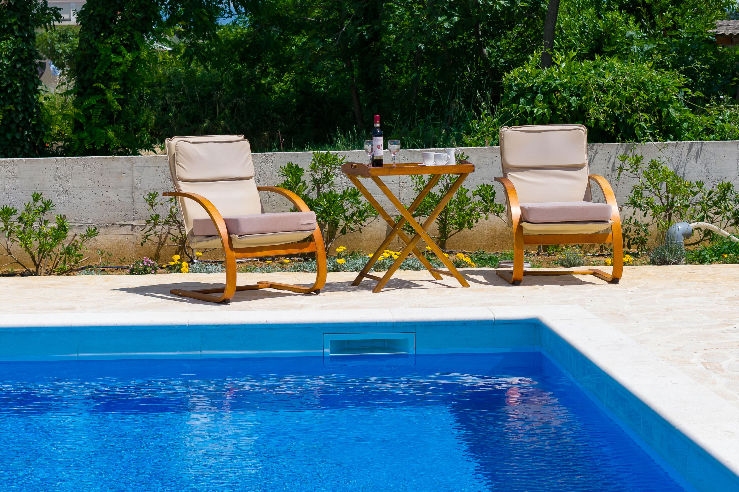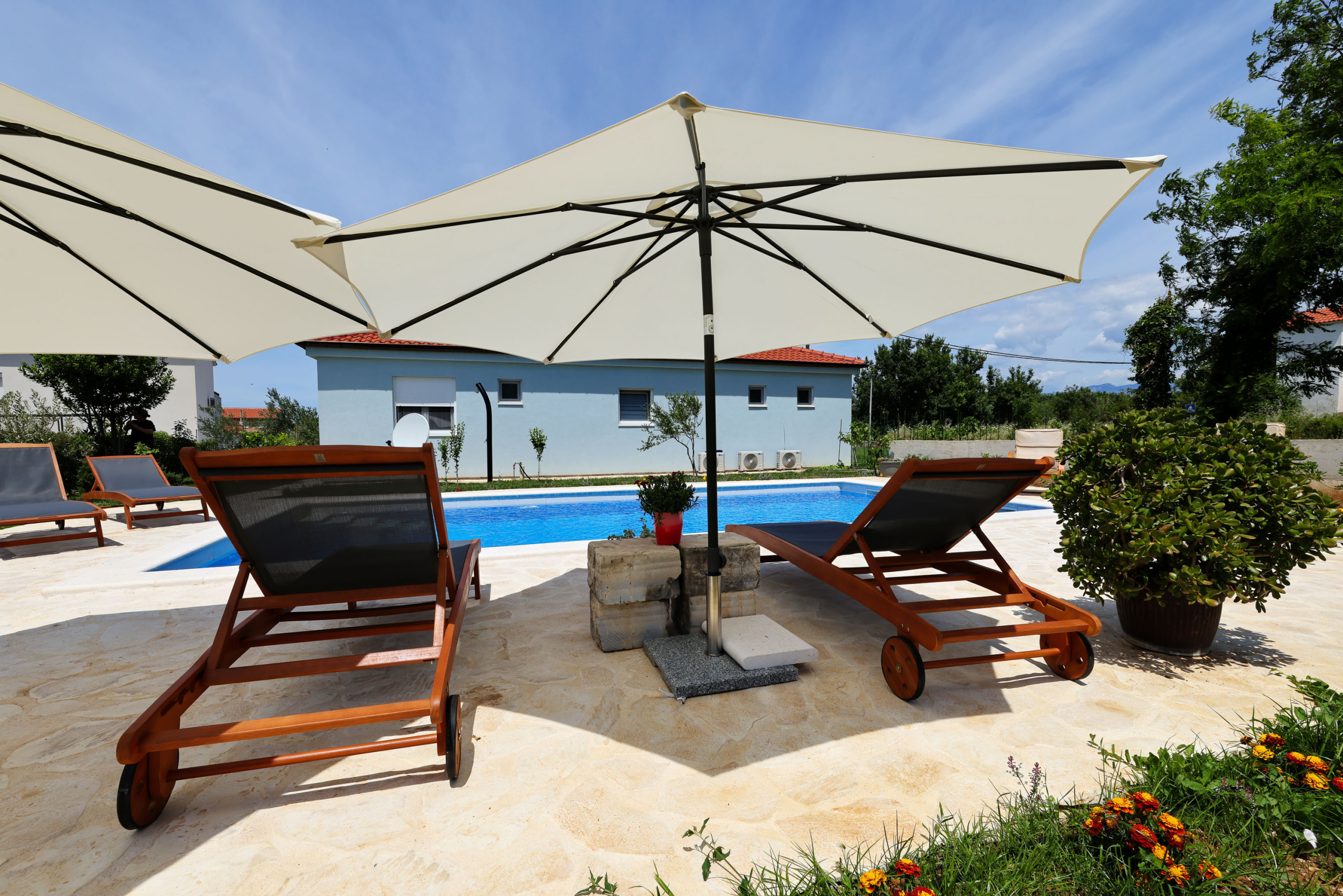 ... schattigen Plätzen zum Entspannen. Alle drei Schlafzimmer sind mit komfortablen Doppelbetten (180 x 200) davon eines mit en suit Duschbad und geräumigen Kleiderschränken ausgestattet. Beide Duschbäder bieten alles was benötigt wird. Der große Wohnraum mit integrierte Küche und Essbereich erstrahlt in hellen Farben.Von der überdachten und möblierten Terrasse schauen Sie auf den 15 qm großen Pool mit komfortablen Sonnenliegen, die zum Verweilen einladen. Ebenfalls erwartet Sie ein Außengrill, mit dem Sie sich an dalmatinischen Spezialitäten versuchen können. Der Poolbereich bietet komplette Privatsphäre, da er umzäunt ist.Für Ihren Komfort ist im Wohnbereich eine Klimaanlage vorhanden. Das parken ist direkt auf dem Grundstück neben dem Haus möglich.Zusammenfassend bietet Das Ferienhaus Eda eine perfekte Unterkunft für einen ruhigen und komfortablen Urlaub. Freuen Sie sich auf einen Pool mit gemütlichen Sonnenliegen, einen Garten und einen Urlaub fernab vom Massentourismus.Wir freuen uns darauf Sie in unserem Ferienhaus willkommen zu heißen!Kaution 200 € in Bar rückführend vor Ort zu hinterlegen !!!