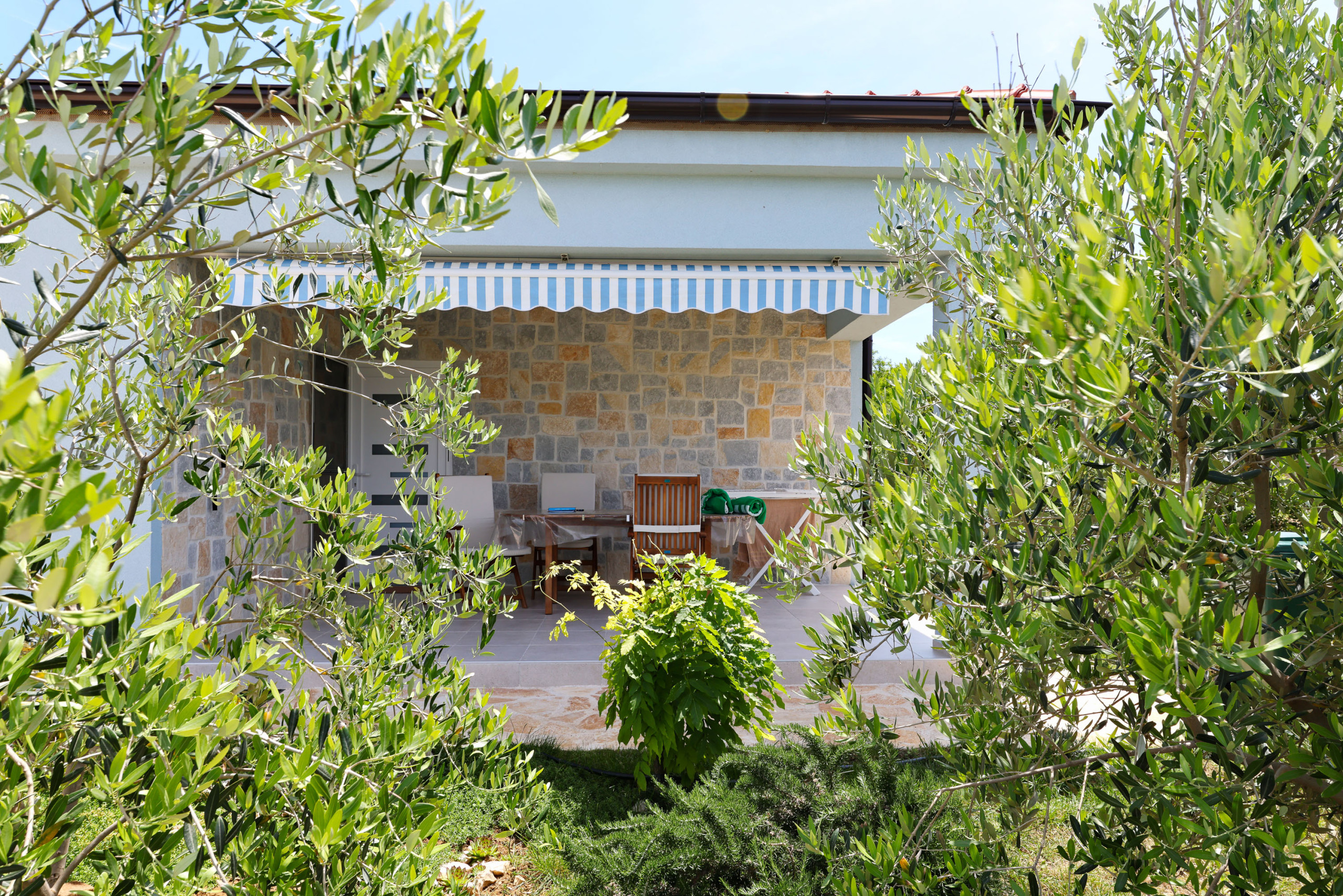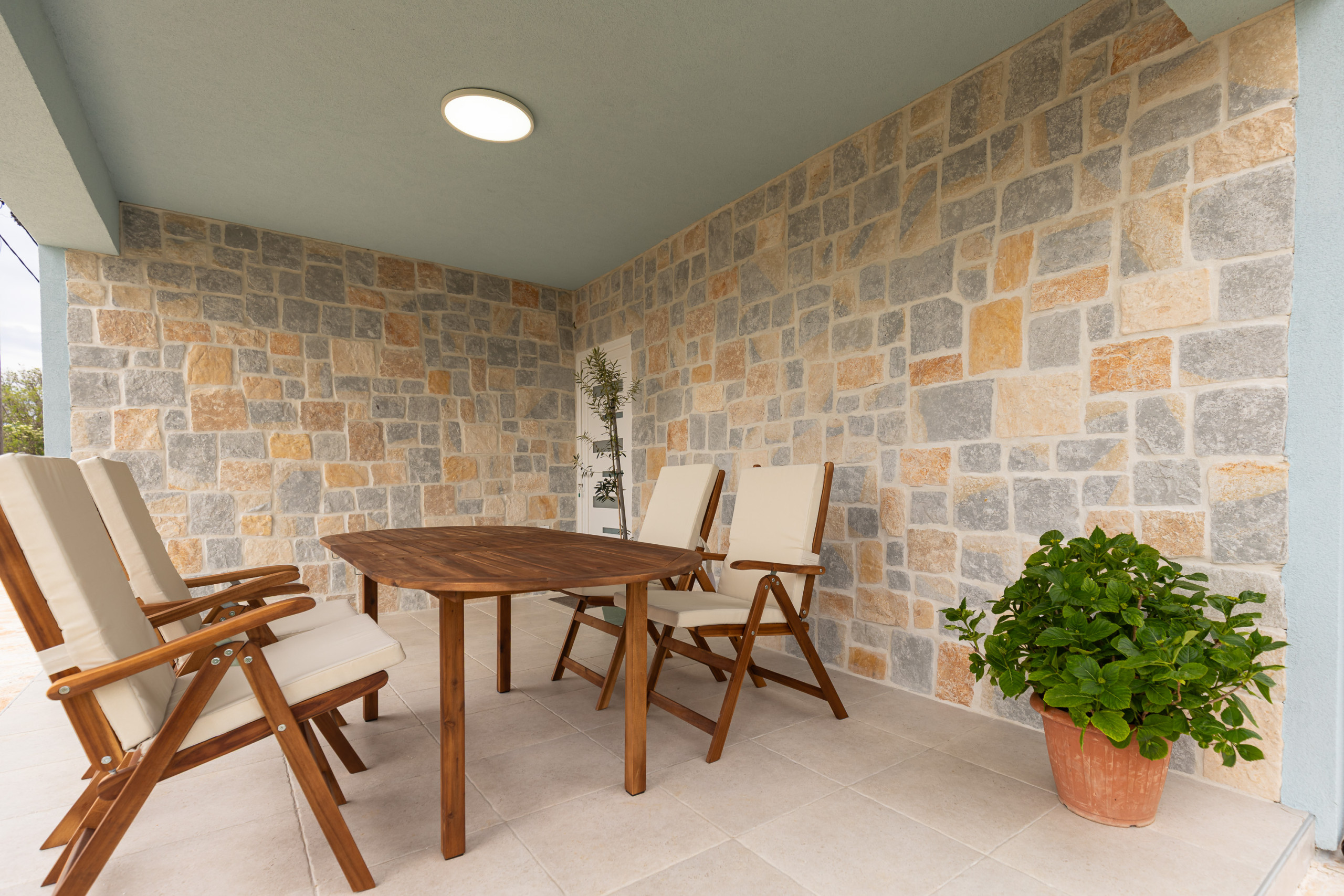 Frühstücken Sie, oder genießen Sie Ihr Mittag- [&] Abendessen auf der möblierten und überdachten Terrasse und genießen Sie dabei den Blick zum Meer und auf das Velebitgebirge. Ein Grill lädt dazu ein dalmatinische Spezialitäten zuzubereiten. Zusätzlich steht Ihnen kostenfrei ein Gemüsegarten hinter dem Haus zur Verfügung.