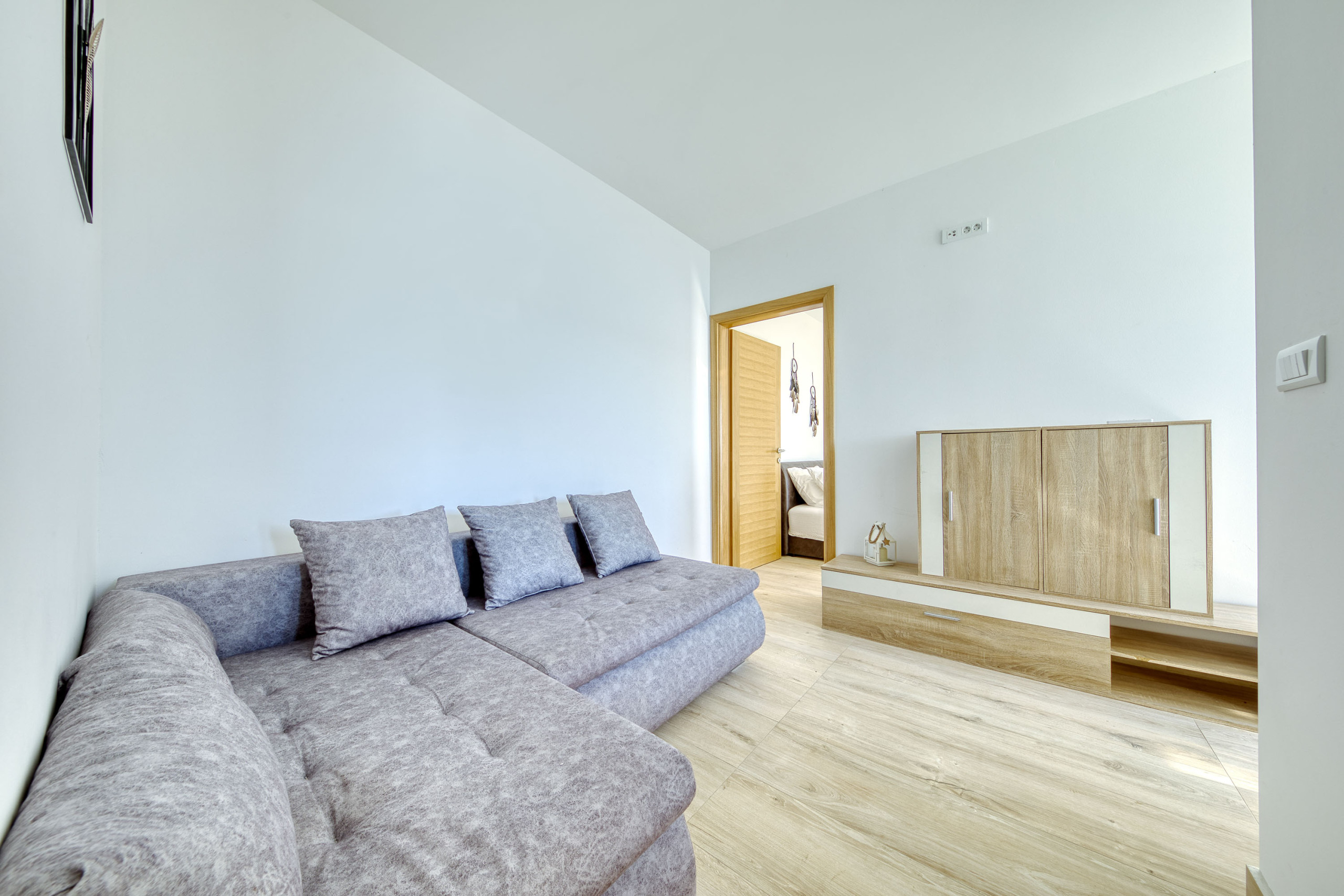 Die Unterkunft bietet einen komfortablen Wohnbereich mit einer gemütlichen Atmosphäre und verfügt über einen Schlafraum mit zwei Betten - einem Kingsize-Bett und einem Doppelsofa. Die Wohnung ist ideal für bis zu 4 Personen geeignet und besticht durch ihre praktische Aufteilung.