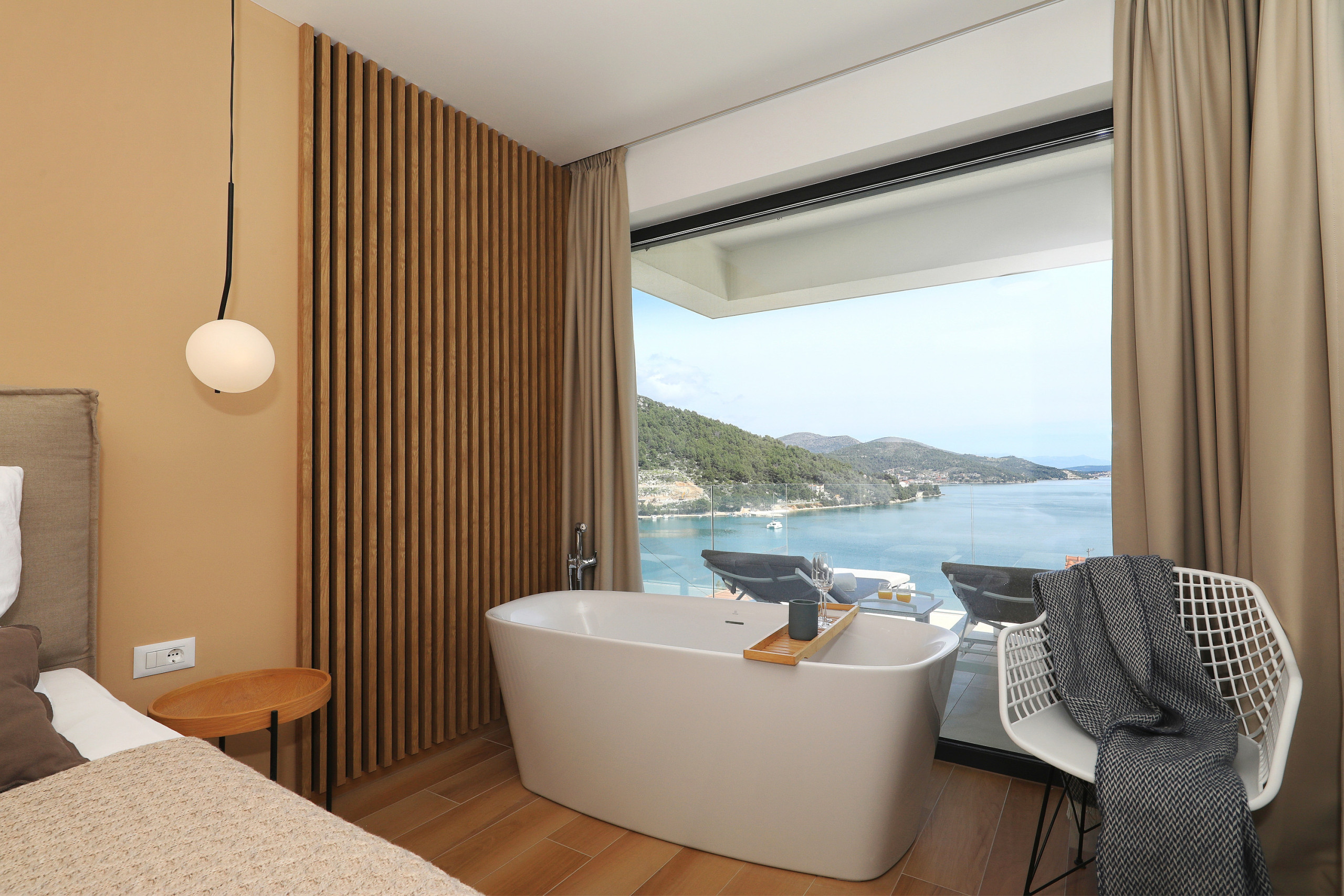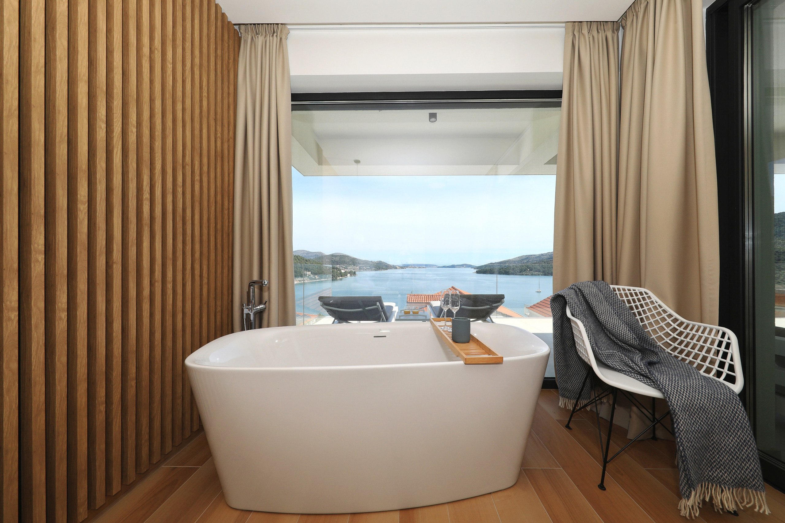 Das Hauptschlafzimmer hat zusätzlich eine Badewanne mit Blick auf die Adria, die zu entspannenden Bädern einlädt. Ein Parkplatz steht zur Verfügung, um das Auto sicher abzustellen. Auf dem grossen Balkon der Unterkunft gibt es eine Grillmöglichkeit und einen schönen Ort zum Verweilen.