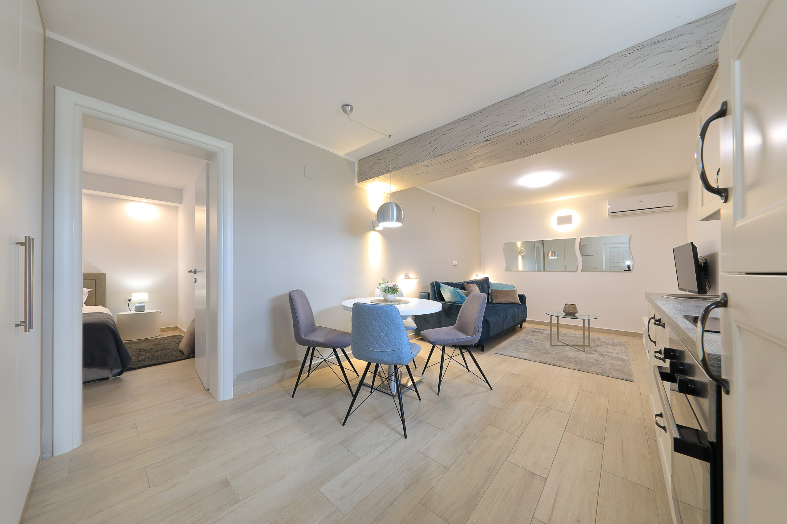 Ein Highlight ist der private Balkon mit atemberaubenden Ausblicken auf das Meer und die umliegenden Berge. Die Terrasse lädt zum Entspannen und Genießen ein, während die Gartenmöbel gemütliche Momente im Freien ermöglichen.