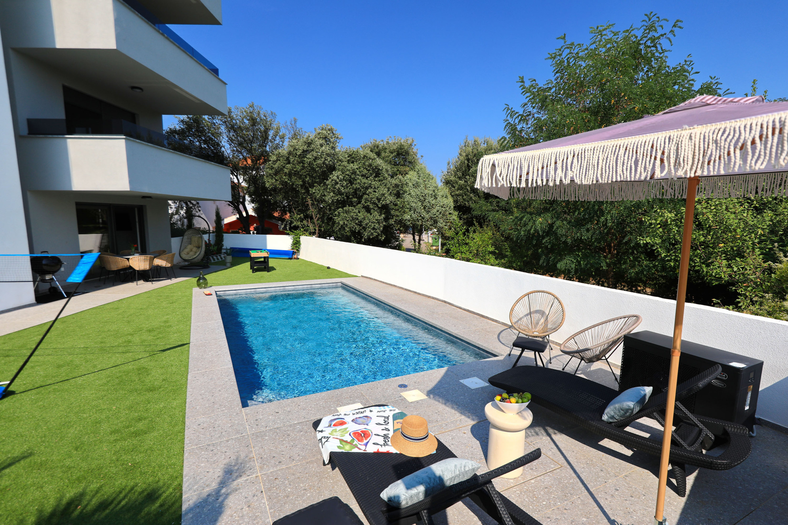 In dem großzügigen Garten können sich die Gäste entspannen und die Sonne genießen. Eine Grillmöglichkeit steht ebenfalls zur Verfügung. Das Apartment ist auch für Radfahrer geeignet und bietet ihnen die Möglichkeit, ihre Räder sicher abzustellen. Für eine Abkühlung an heißen Tagen sorgt der Pool ( 24,5 qm ) mit integriertem Whirlpool , welcher auch beheizt ist für die kalte Jahreszeit.