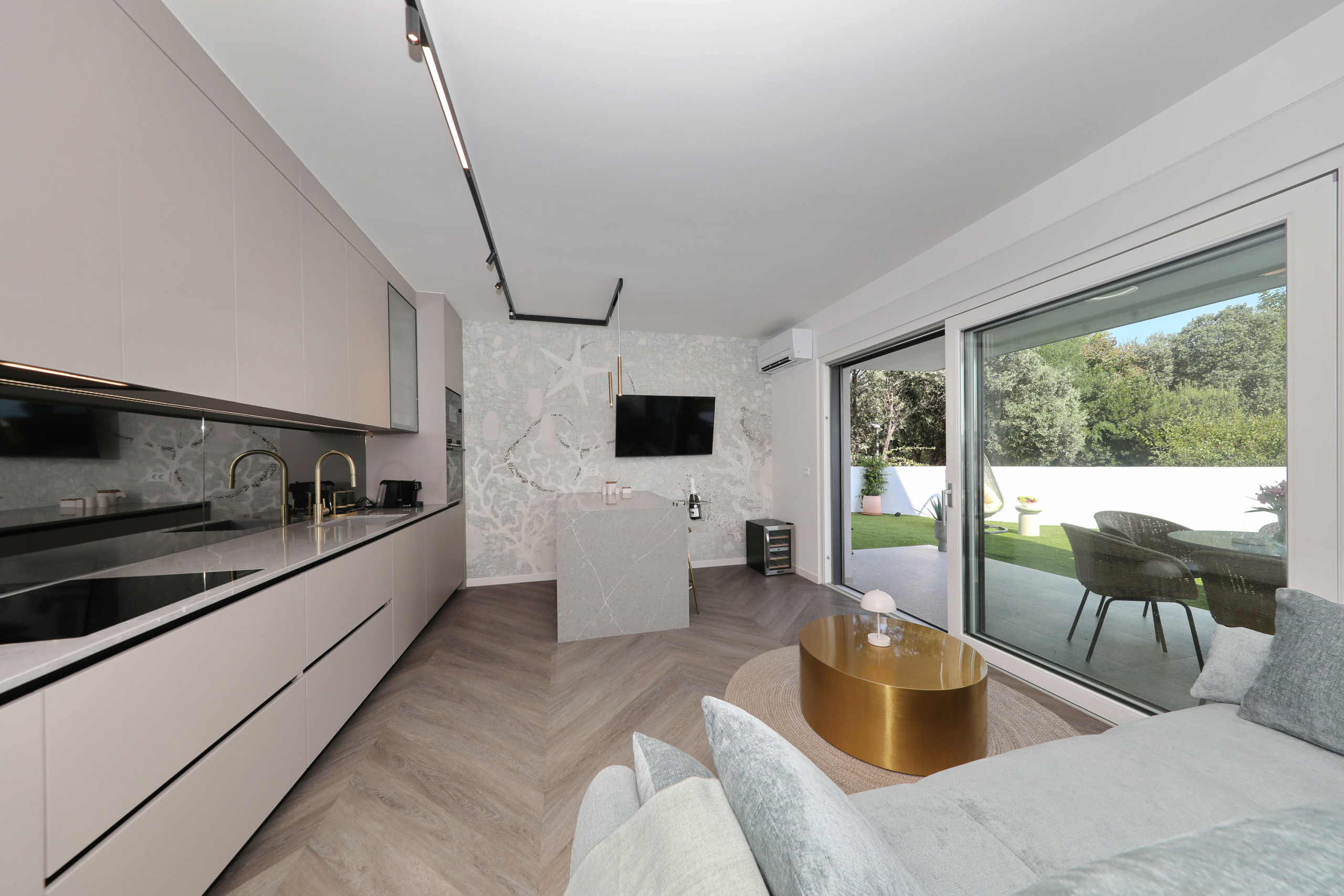 In der offenen Wohnküche können Gäste gemeinsam kochen und essen. Auch eine Pad-/Kapsel-Kaffeemaschine steht bereit. Der Check-in erfolgt eigenständig und unkompliziert. Für Unterhaltung sorgt ein Smart-TV.