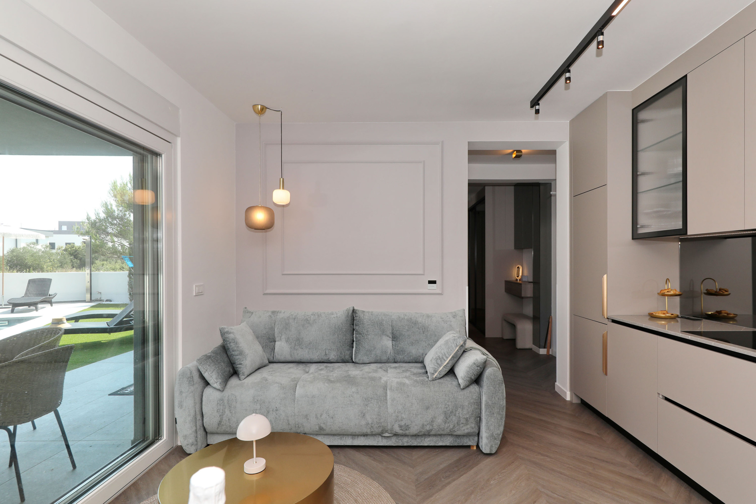 Das Apartment befindet sich in einer ruhigen Lage, ca. 800 m von der nächsten Einkaufsmöglichkeit entfernt. Der Strand ist nur 120 m entfernt und die Ortsmitte von Zaton ist in 1,2 km bequem zu Fuß zu erreichen. In der Nähe (ca. 500 m) gibt es auch ein Restaurant, in dem man lokale Spezialitäten genießen kann.
