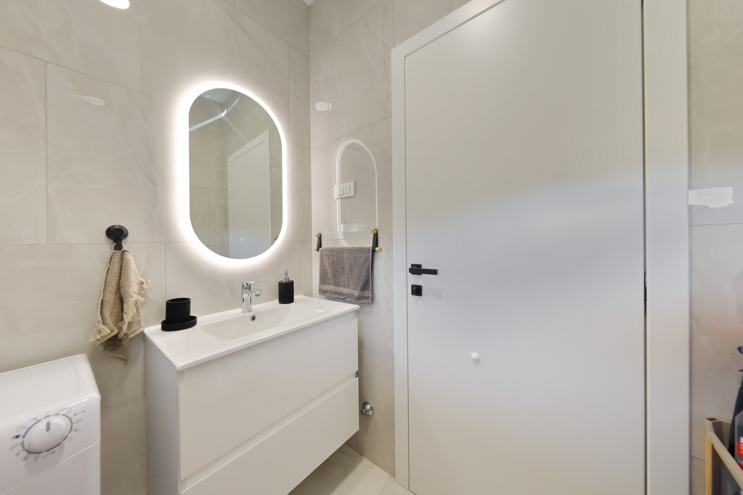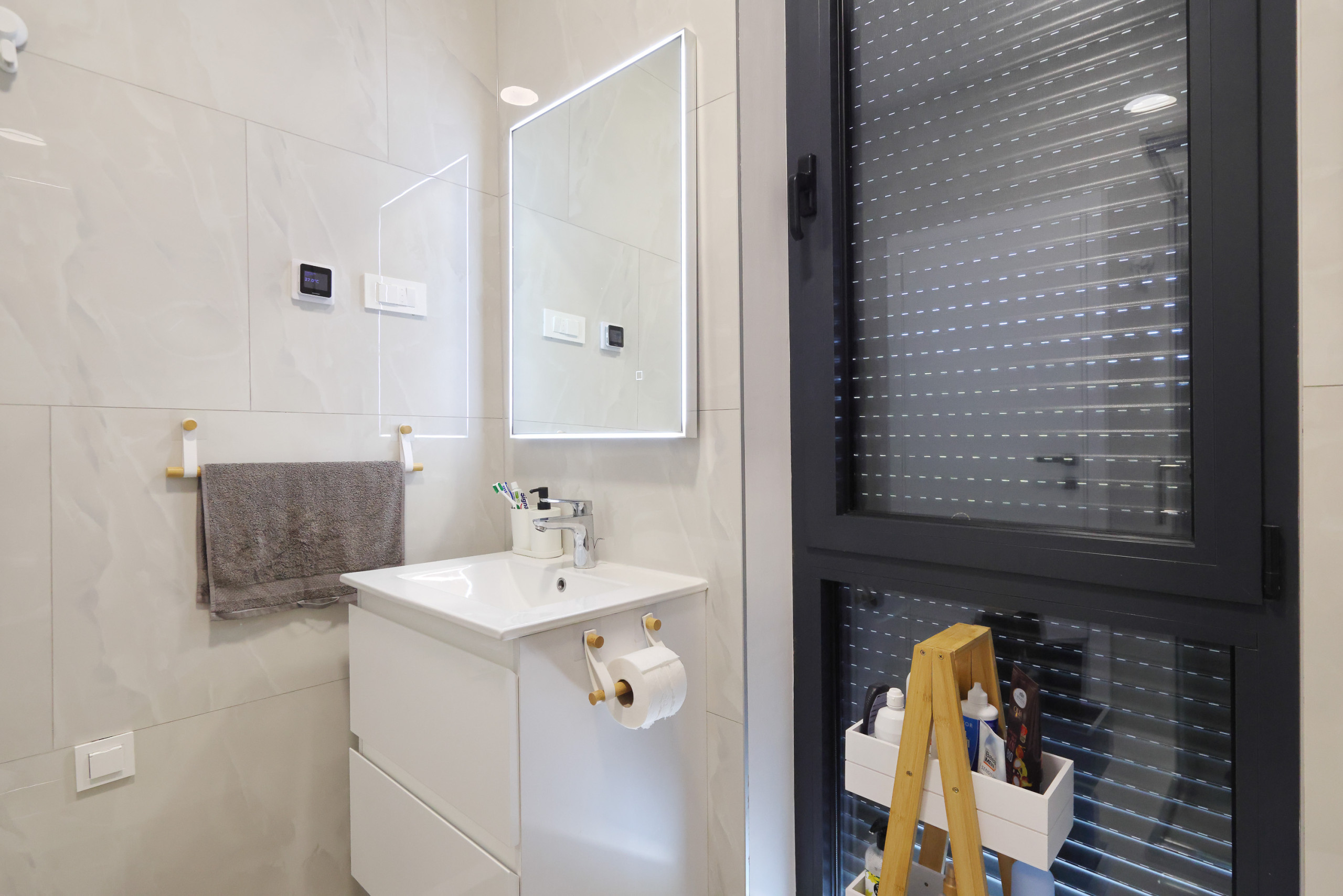 Zwei gut gestaltete Badezimmer - eines mit einer Dusche und ein anderes mit einer Toilette - gewährleisten Bequemlichkeit und Privatsphäre für alle Gäste. Das Haus ist klimatisiert mit einer Wärmepumpe und Klimaanlage und garantiert Komfort in allen Jahreszeiten.