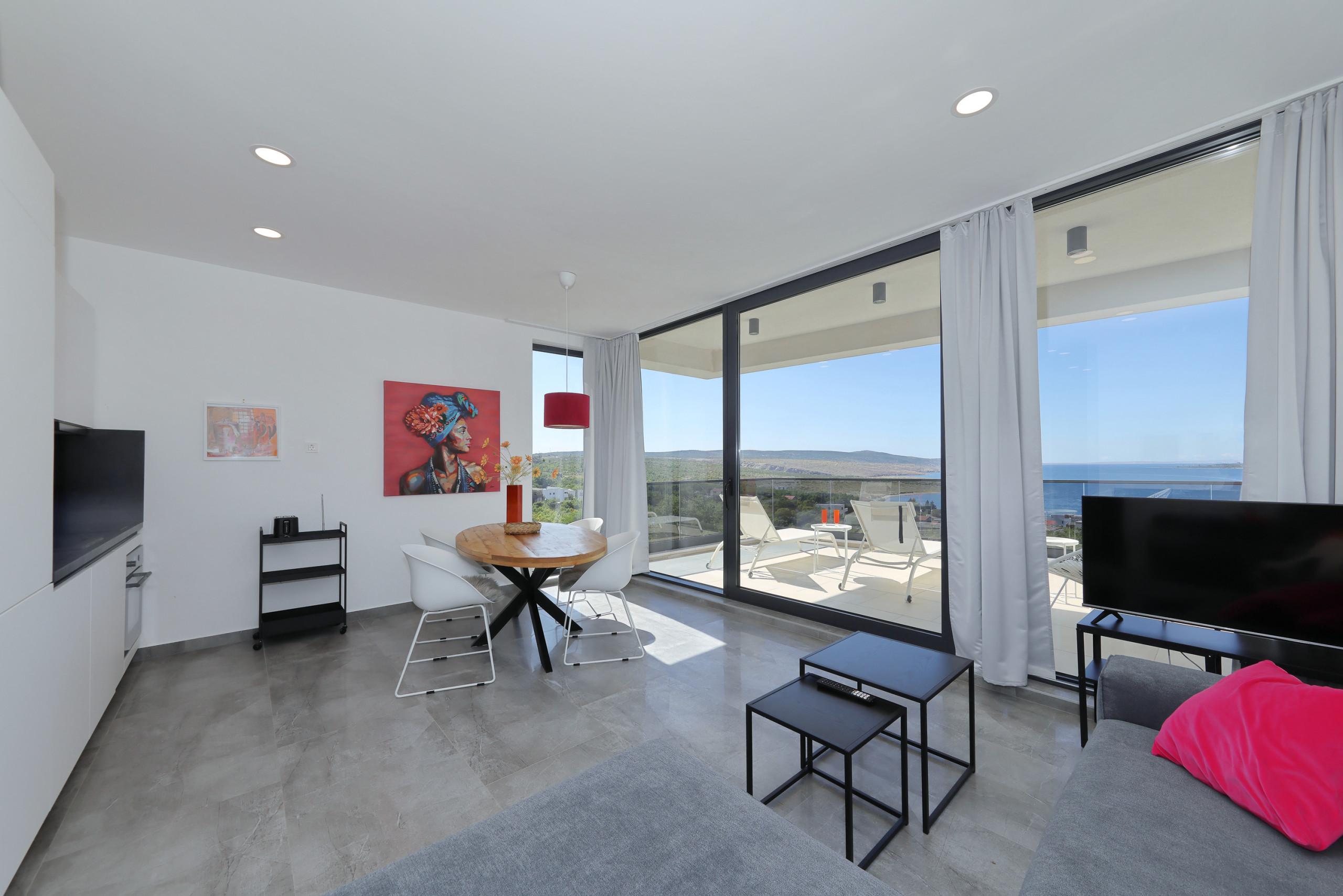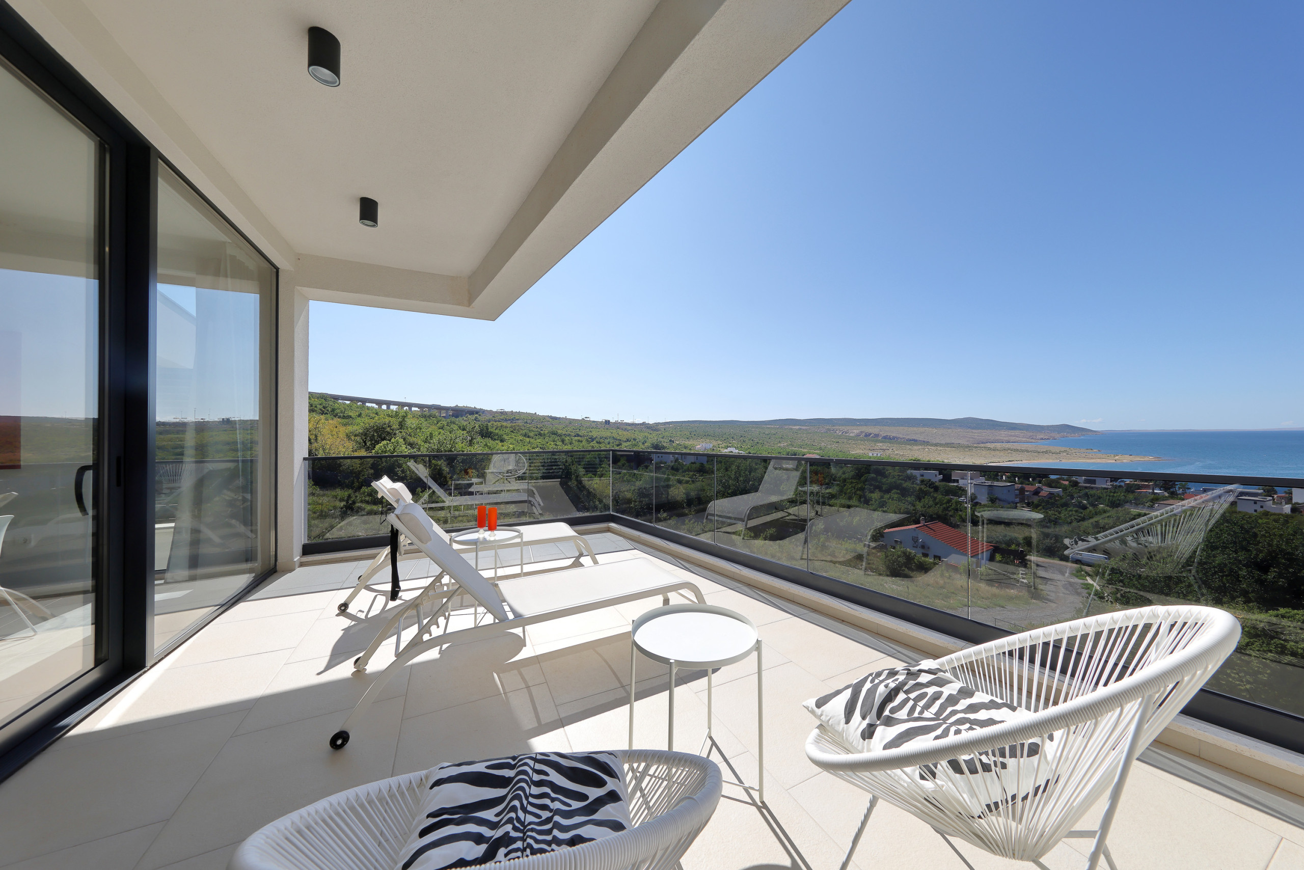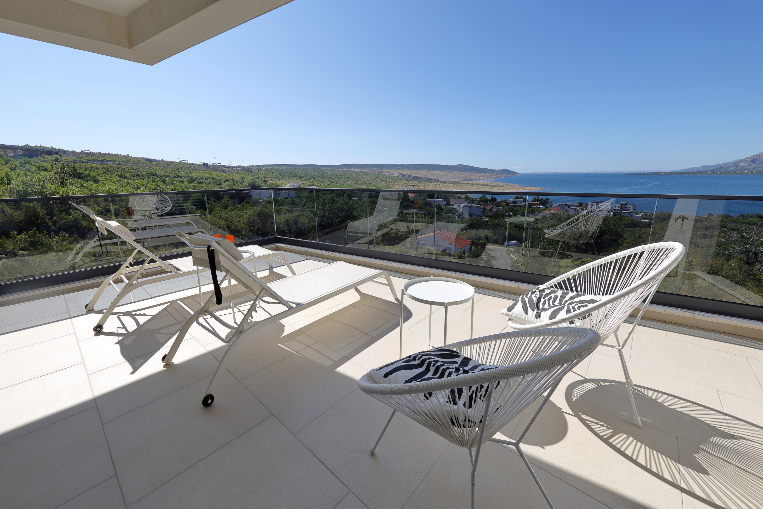 Die Ferienwohnung Meerblick Rovanjska erwartet Sie in dem ruhigen Küstenort Rovanjska, nur 10 km vom beeindruckenden Nationalpark Paklenica entfernt. Die modern eingerichtete Ferienwohnung liegt im zweiten Stock und bietet auf 65 m² Wohnfläche einen großzügigen Balkon mit Liegestühlen und einem atemberaubenden Panoramablick auf die Bucht, das glitzernde Adriatische Meer und das mächtige Velebit-Gebirge – der ideale Ort, um den Tag entspannt zu beginnen oder stilvoll ausklingen zu lassen.