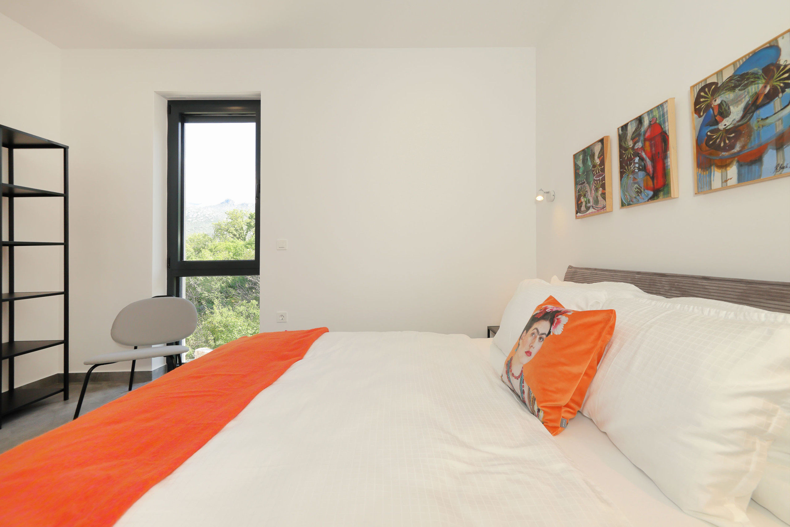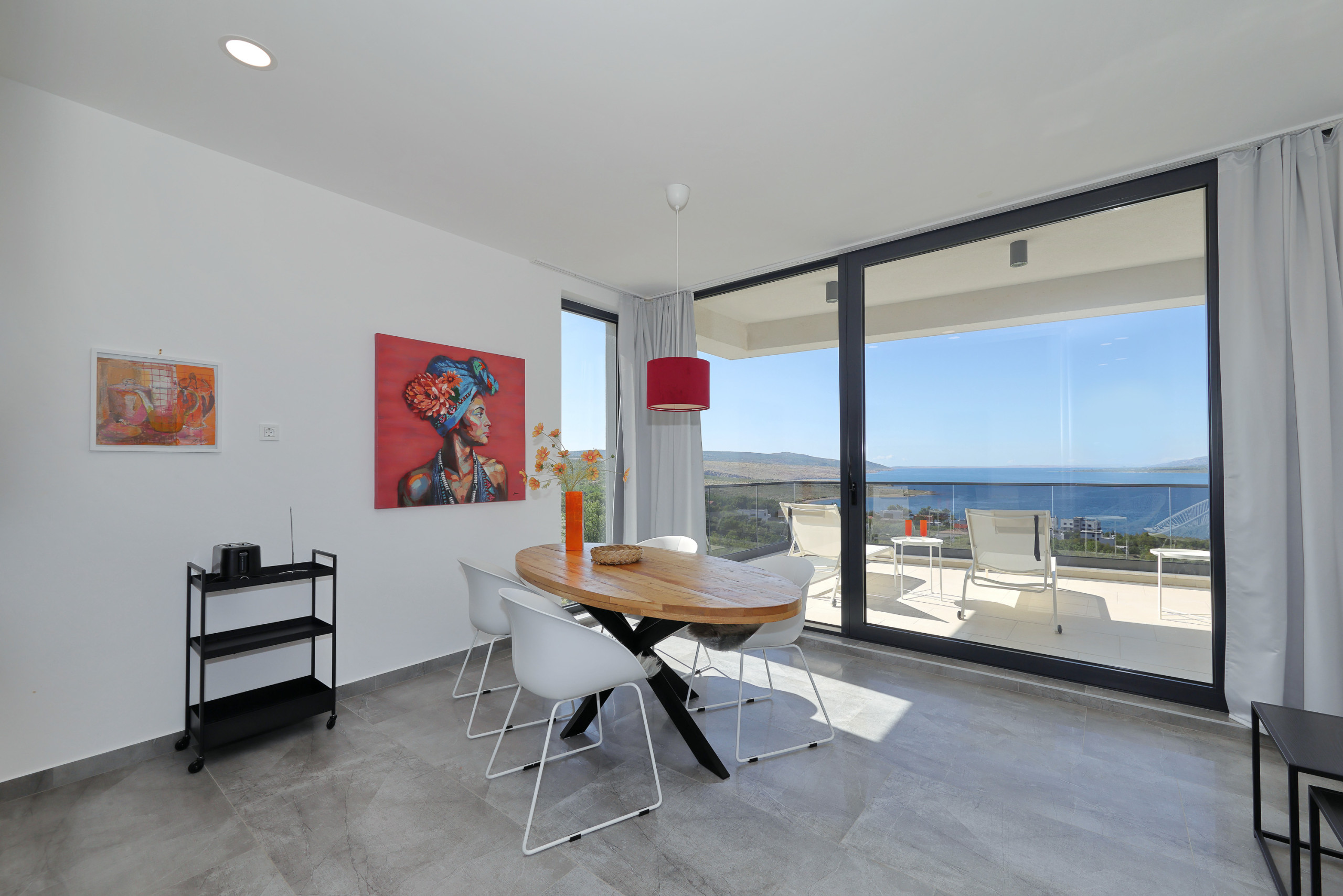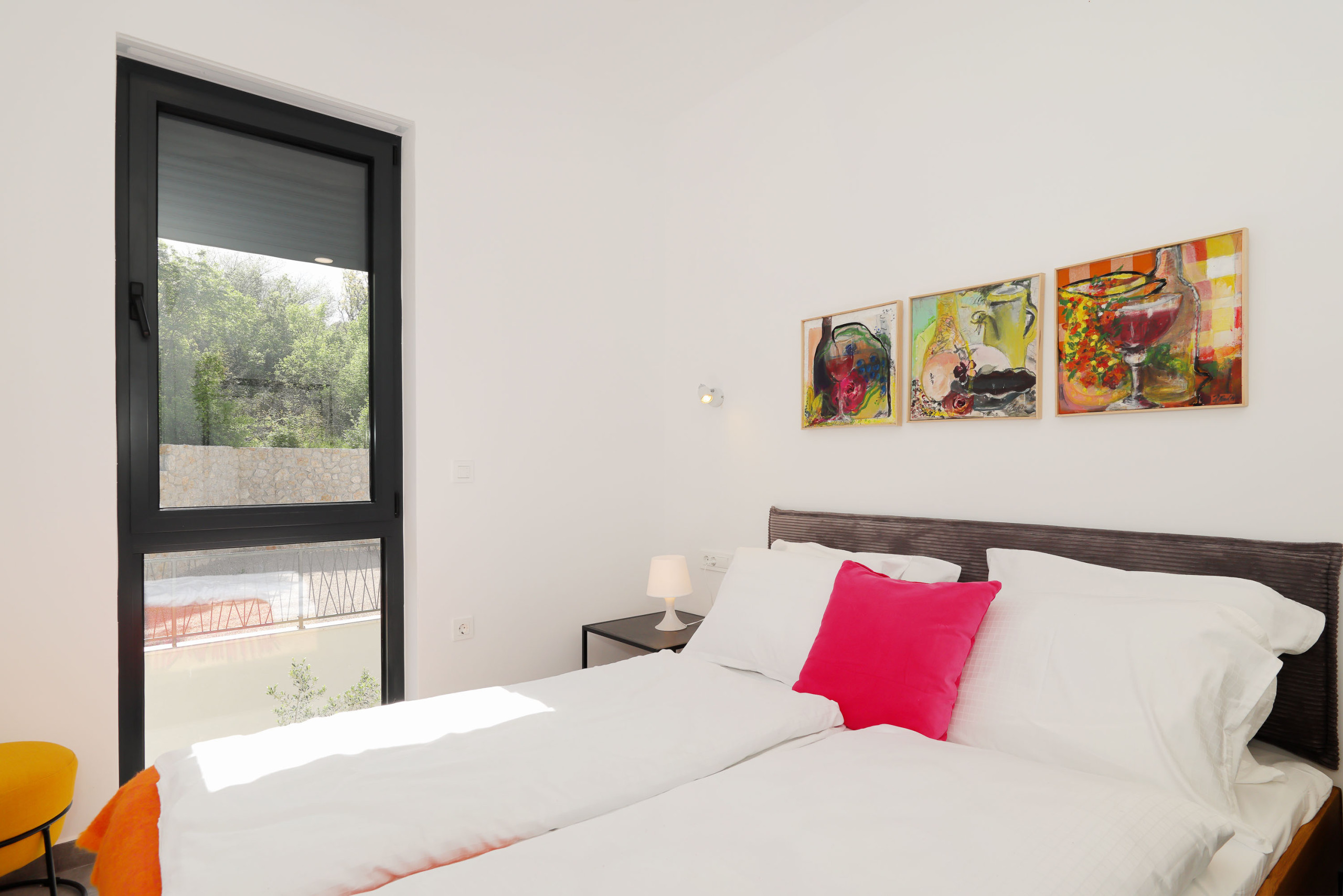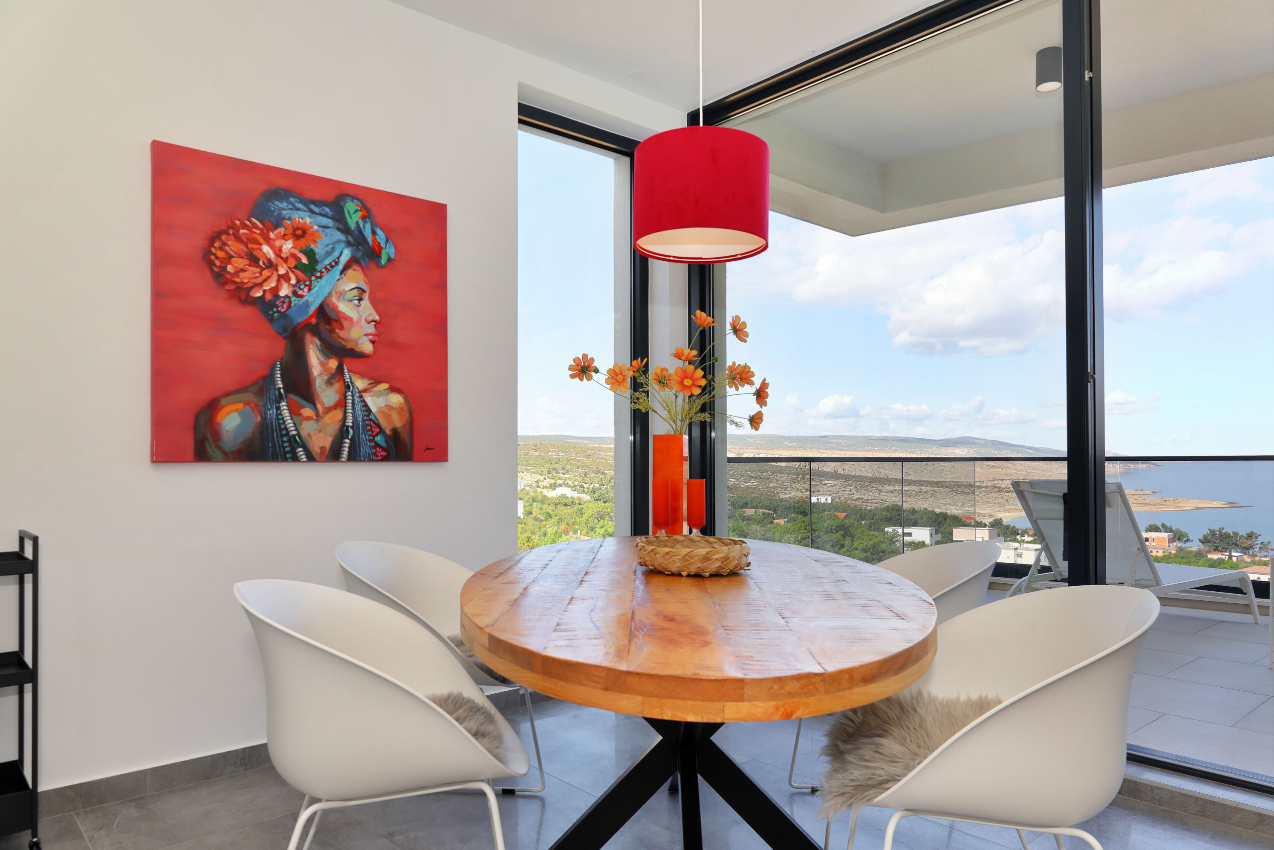 Die Ferienwohnung Meerblick Rovanjska erwartet Sie in dem ruhigen Küstenort Rovanjska, nur 10 km vom beeindruckenden Nationalpark Paklenica entfernt. Die modern eingerichtete Ferienwohnung liegt im zweiten Stock und bietet auf 65 m² Wohnfläche einen großzügigen Balkon mit Liegestühlen und einem atemberaubenden Panoramablick auf die Bucht, das glitzernde Adriatische Meer und das mächtige Velebit-Gebirge – der ideale Ort, um den Tag entspannt zu beginnen oder stilvoll ausklingen zu lassen.