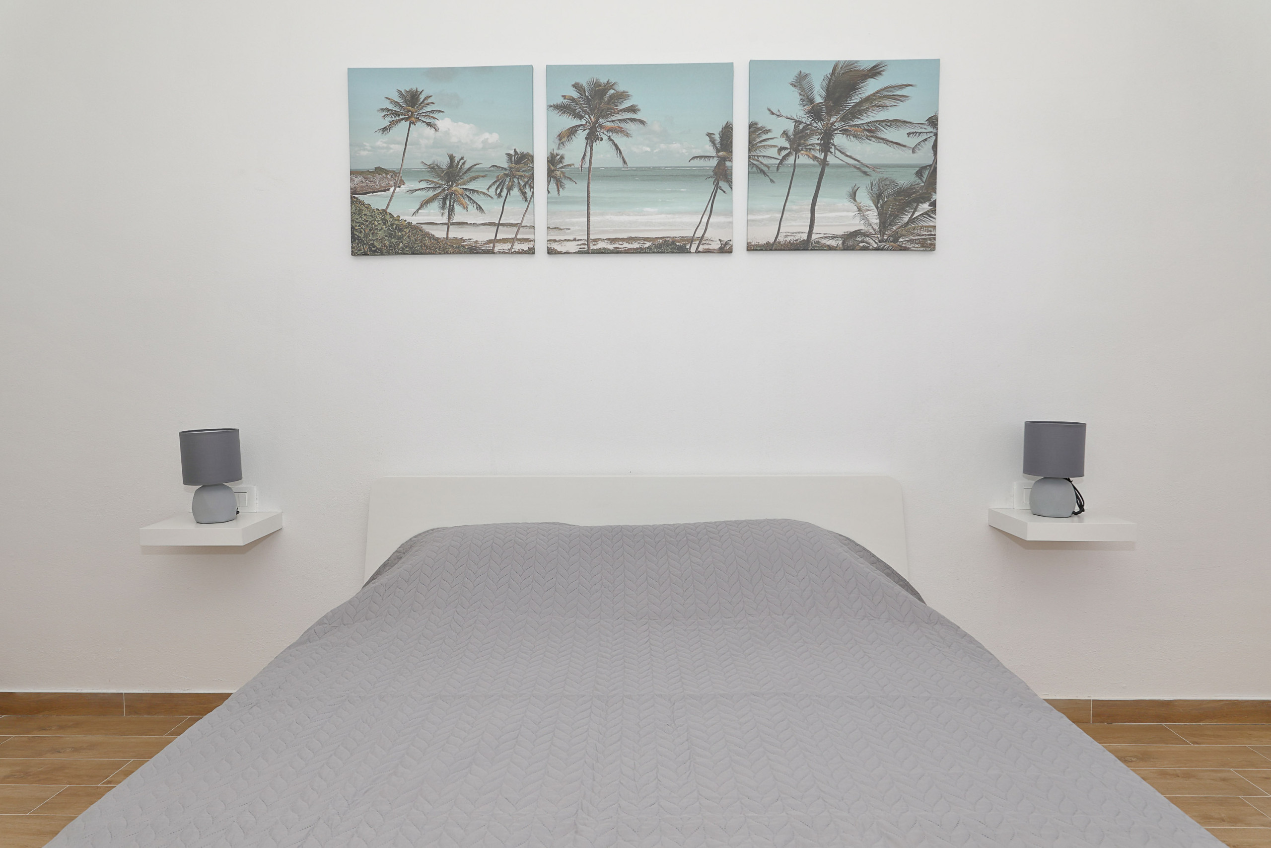 Die Wohnung verfügt über drei gemütliche Schlafzimmer mit insgesamt vier Betten: ein Kingsize-Bett, zwei Queensize-Betten und ein Schlafsofa. Zwei moderne Badezimmer sorgen für ausreichend Komfort, wobei eines eine Dusche und das andere eine Toilette hat.