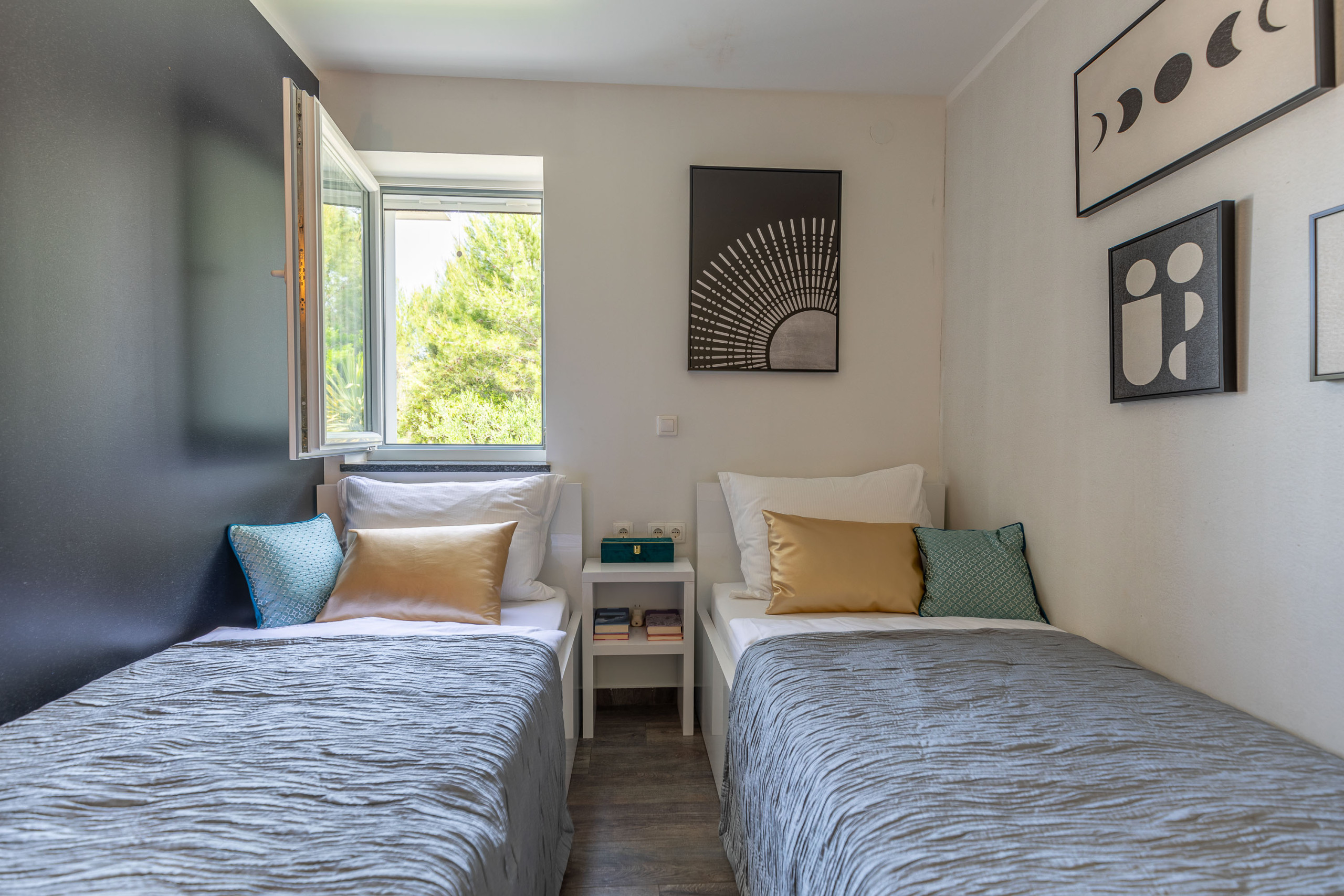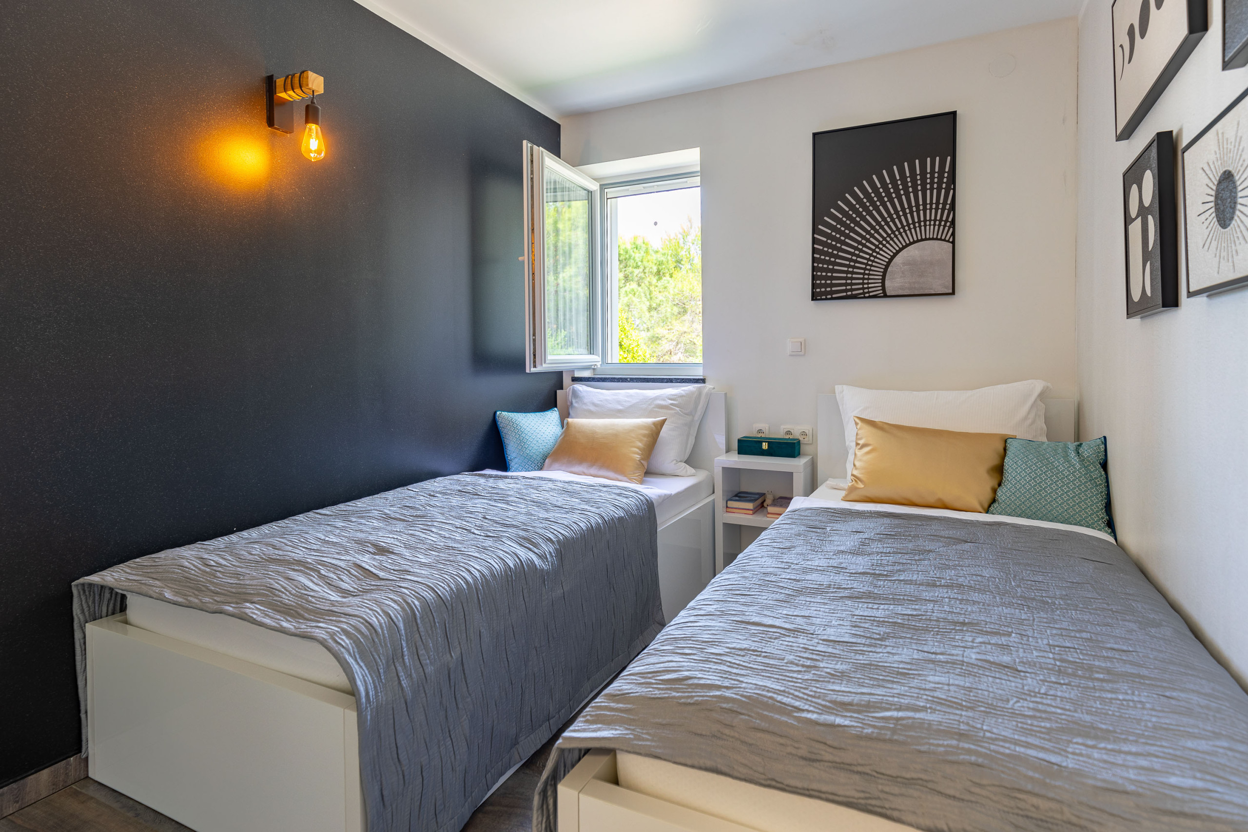 Die geräumige Ferienwohnung Cicak, No.1 befindet sich im Haus Cicak auf der 1. Etage und bietet Platz für bis zu 9 Personen auf einer Wohnfläche von 90 m². Die Unterkunft verfügt über 3 Schlafzimmer und 2 Badezimmer, die genügend Platz für eine große Familie oder Gruppe bieten.Die moderne Ausstattung umfasst unter anderem einen Internetzugang mit WLAN, eine Waschmaschine, einen Geschirrspüler, eine Mikrowelle und vier Klimaanlagen. Ein Parkplatz sowie eine ...