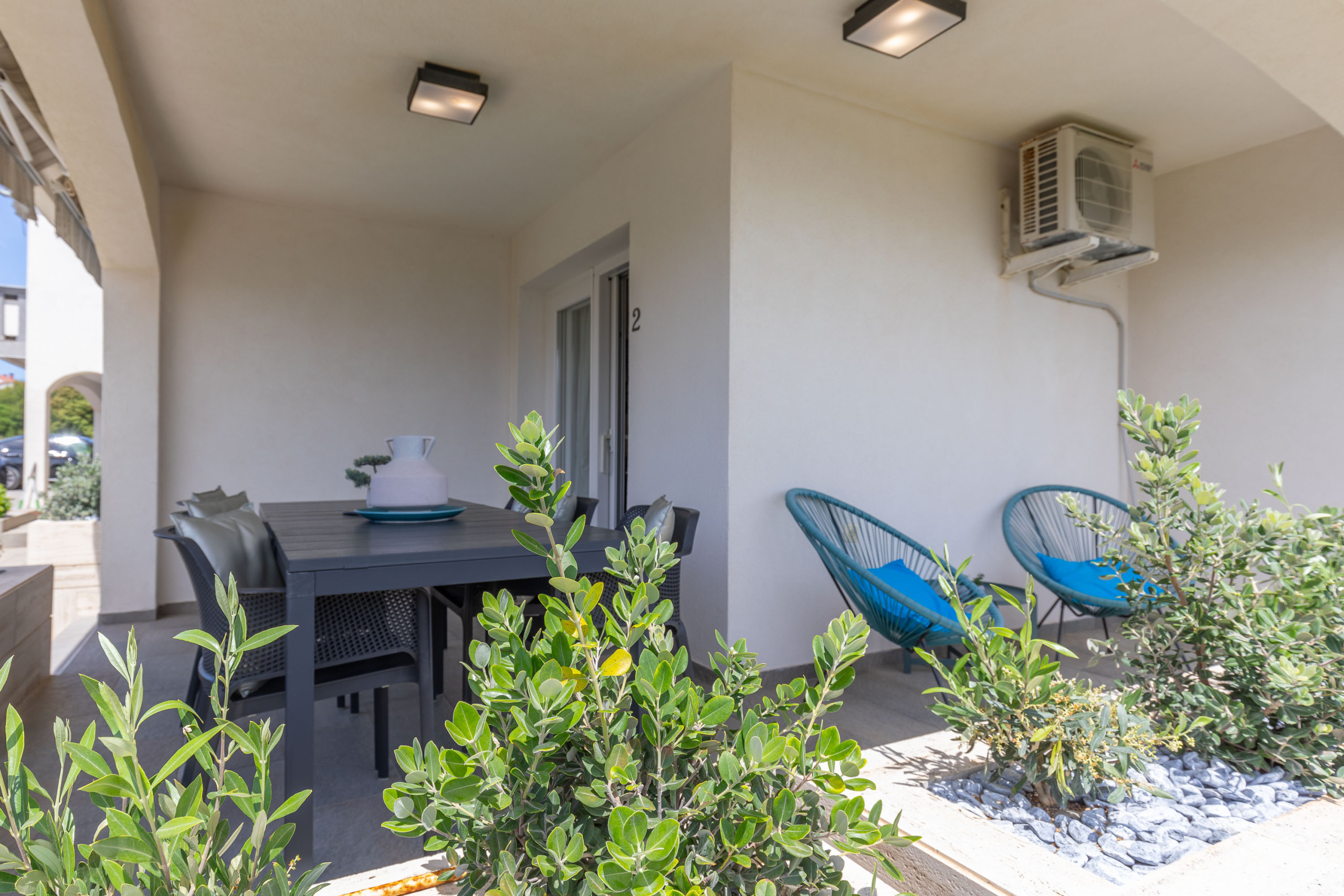 ... vorhanden.Von dem Balkon aus können Sie den atemberaubenden Meerblick genießen und die Panoramaaussicht auf das Meer und die Umgebung wird Sie begeistern. Der direkte Zugang zum Meer macht die Ferienwohnung besonders attraktiv für Strandliebhaber und Wassersportler.Auch für Familien ist die Ferienwohnung ideal, denn sie ist familienfreundlich ausgestattet und bietet mit einem Smart-TV auch Unterhaltungsmöglichkeiten für Kinder.Der Strand ist nur ca. 40 m von der Wohnung entfernt, so dass Sie jederzeit die Möglichkeit haben, ins erfrischende Meer zu springen. Die Ortsmitte von Vir ist ca. 3 km entfernt und lädt zum Bummeln und Entdecken ein. Auch ein Restaurant ist in nur 400 m Entfernung zu finden.Die Lage der Ferienwohnung ist ideal für Radfahrer, denn sie ist radfreundlich ausgestattet und bietet die Möglichkeit zur Lagerung von Fahrrädern. Kommen Sie nach Vir und erleben Sie einen erholsamen Urlaub in der Ferienwohnung Cicak, No.2 mit traumhaftem Meerblick und allen Annehmlichkeiten für einen gelungenen Aufenthalt.