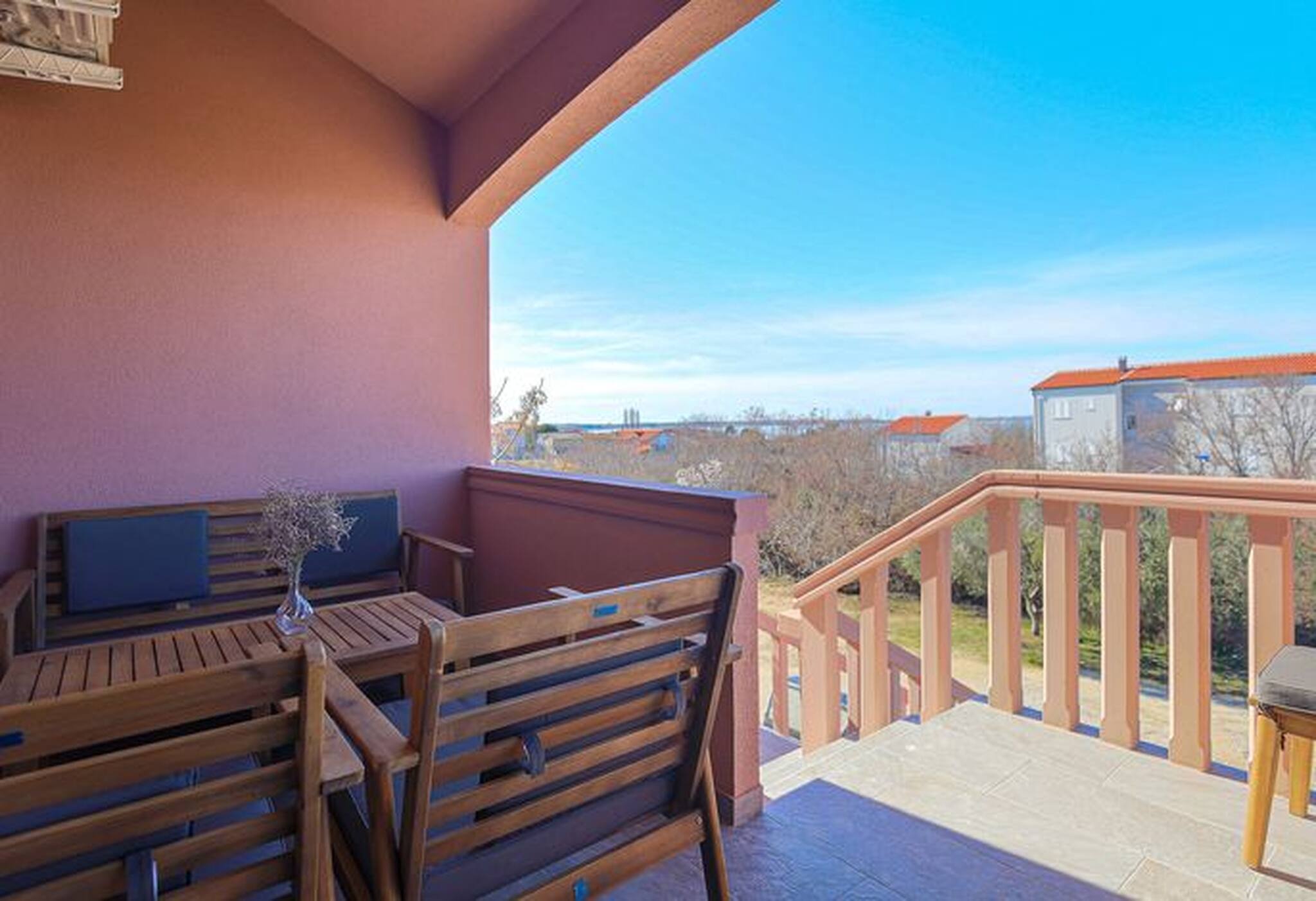 Ferienwohnung Rubbi, no2 im Ferienort Vrsi, eignet sich mit einer Größe von 55 qm für bis zu 5 Personen. Die Wohnung befindet sich im erhöhten Erdgeschoss mit Blick ins Grüne.