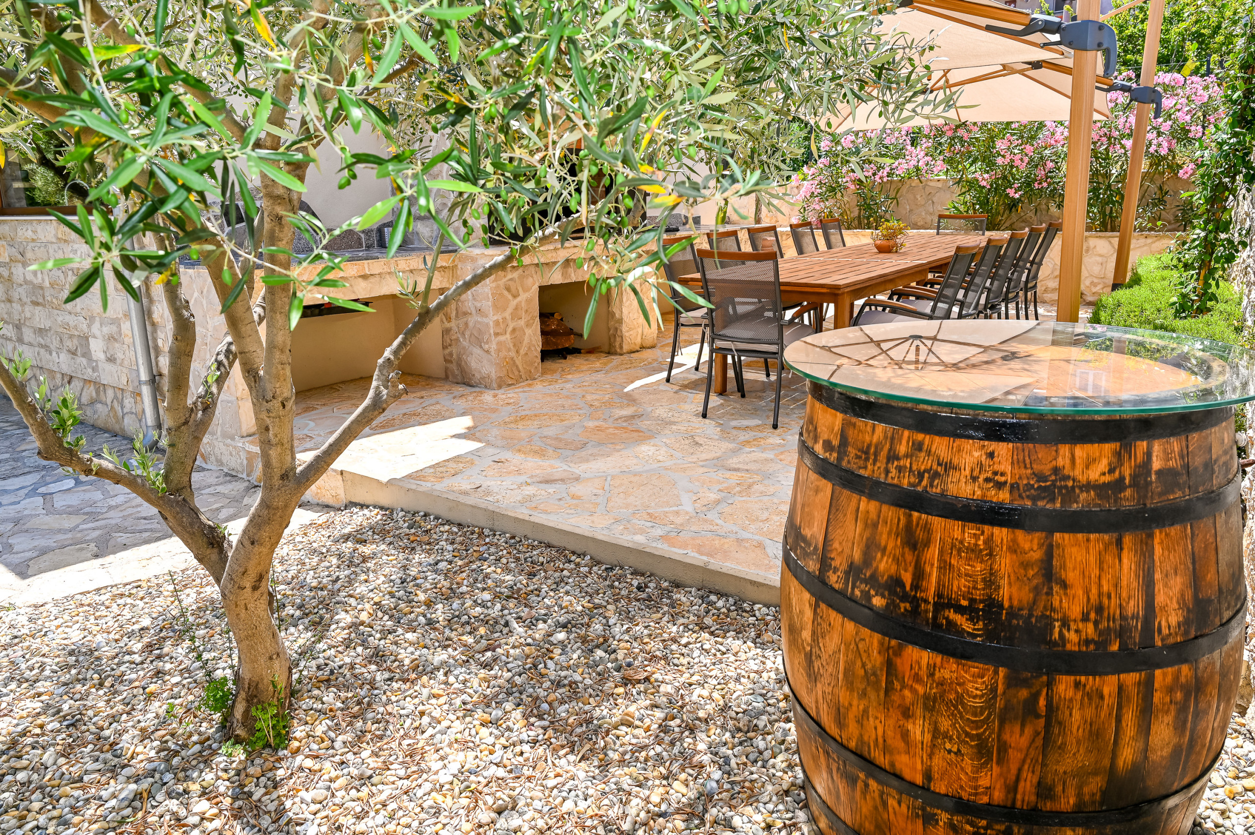 Die Unterkunft verfügt über einen Garten, Gartenmöbel, ein umzäuntes Grundstück, eine Terrasse, eine Waschmaschine, einen Trockner, einen Grillplatz, ein Internetanschluss (WLAN), ein Föhn, ein Balkon, ein Fitnessraum, eine Wärmepumpe, eine Klimaanlage in der ganzen Unterkunft, einen klimatisierter Privatpool, einen Parkplatz im Freien (4 Stellplätze) auf dem Grundstück, ein Fernsehgeräte.