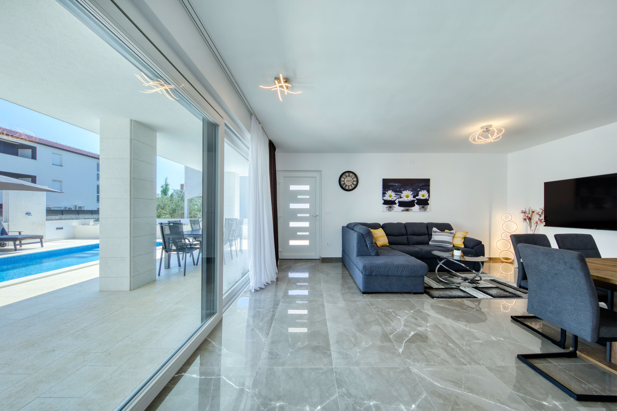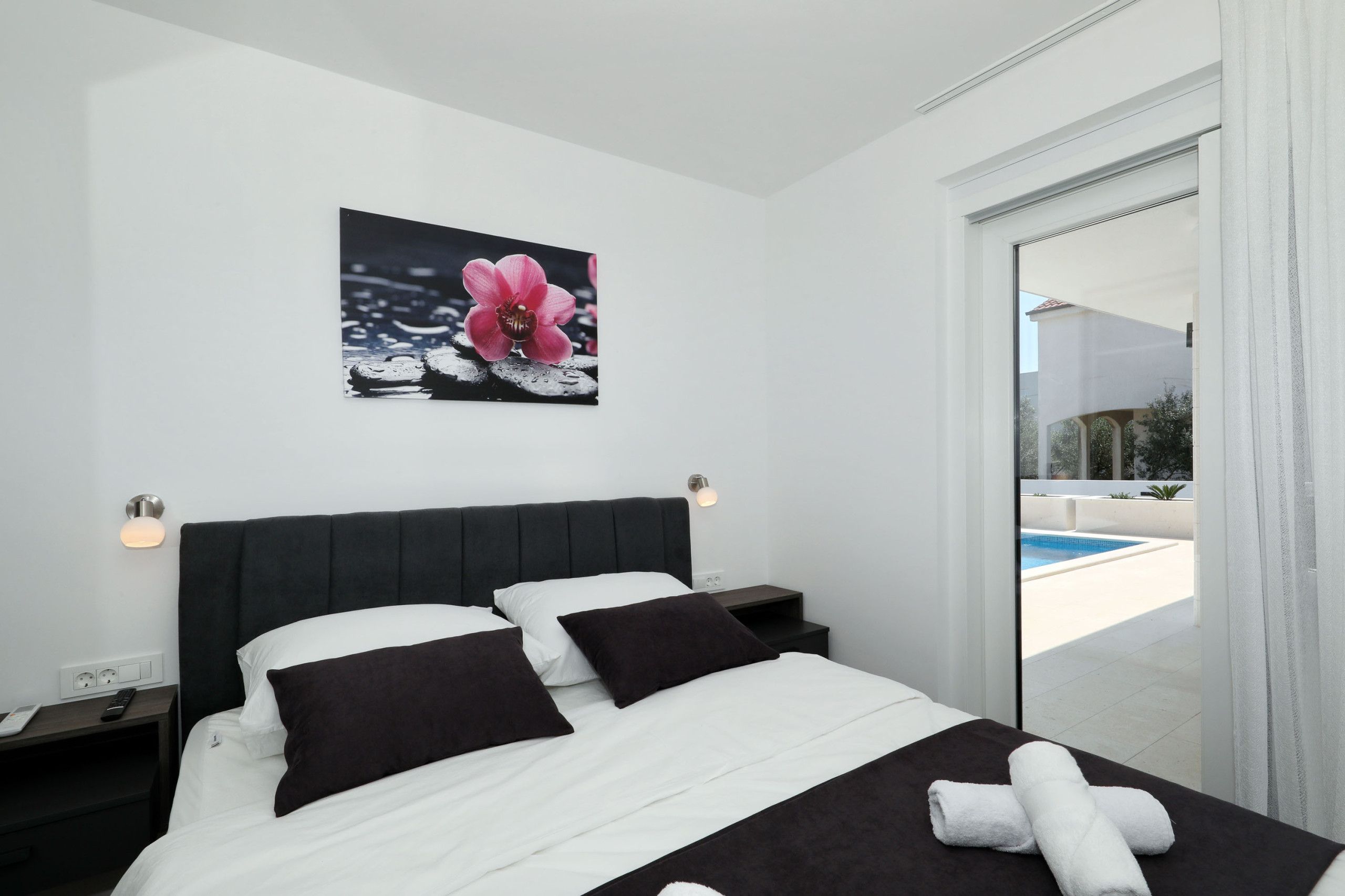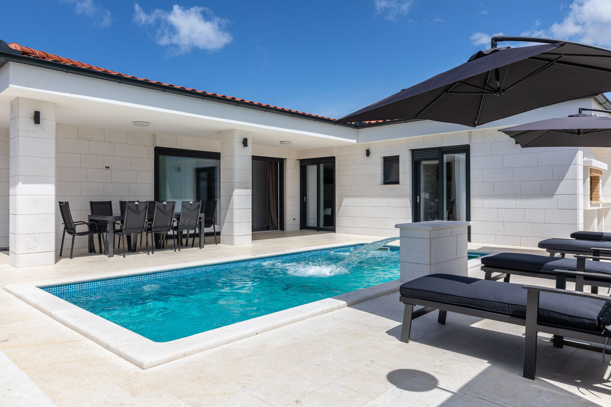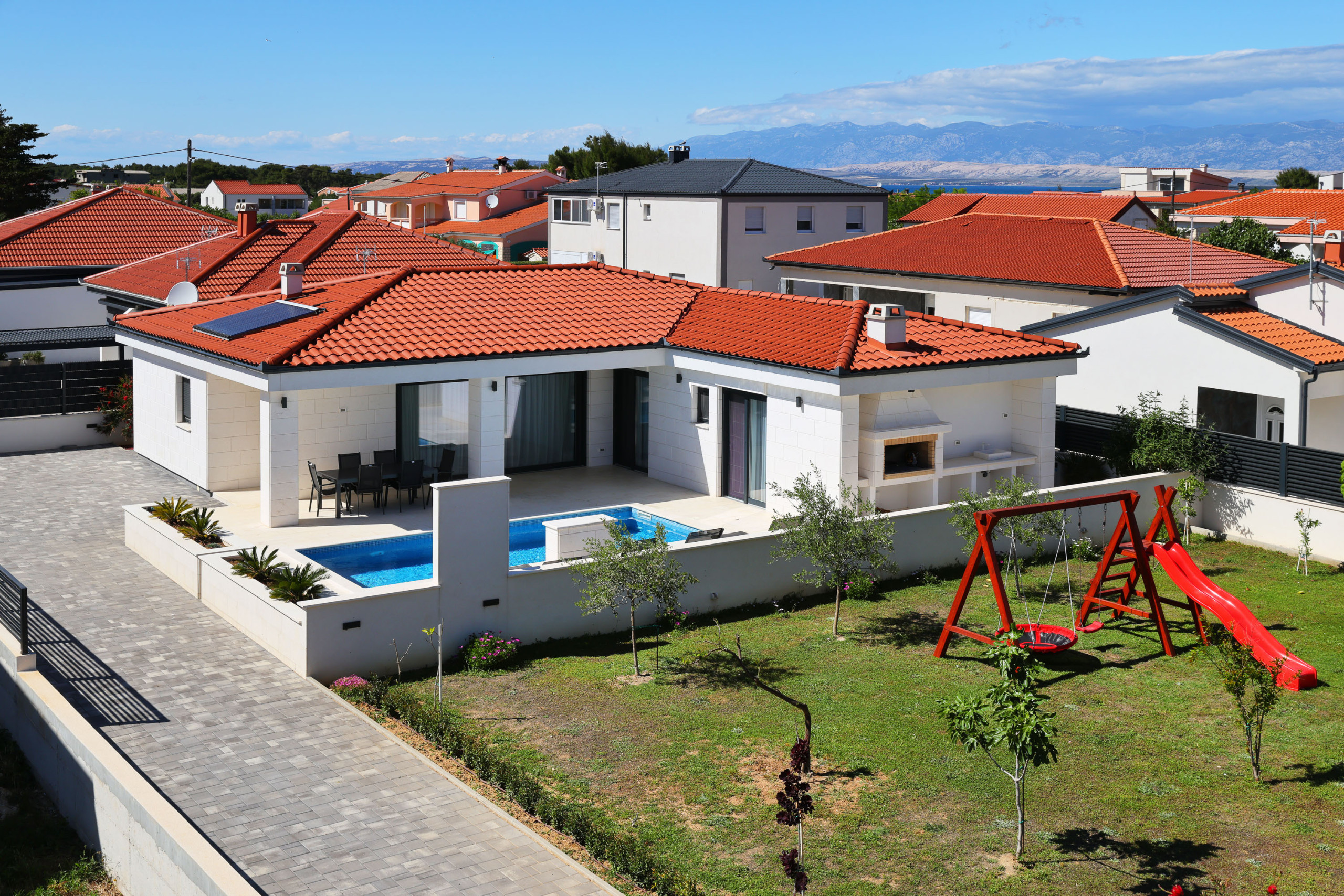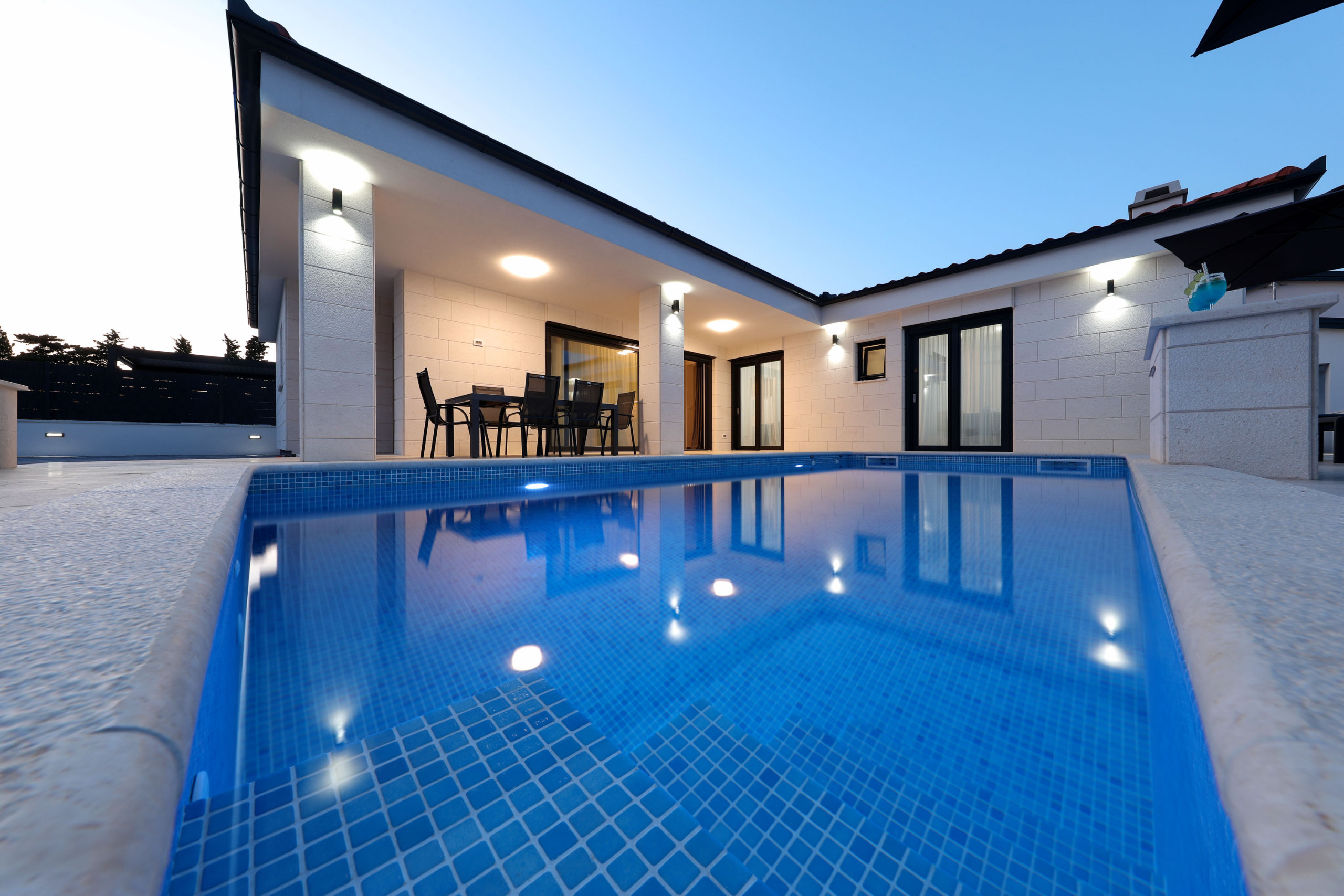 Die Villa Mariva in Vir bietet auf 110 m² ausreichend Platz für bis zu 7 Personen. Sie verfügt über 3 Schlafzimmer und 2 Badezimmer. Zur Ausstattung gehören WLAN-Internet, eine Waschmaschine, ein Geschirrspüler, eine Mikrowelle, eine Klimaanlage und eine Filterkaffeemaschine. Auch ein Parkplatz und eine Fahrradabstellmöglichkeit sind vorhanden. Der Garten steht den Gästen zur Nutzung zur Verfügung und kann mit einem Grill (Holz/Holzkohle) genutzt werden. Die Unterkunft ist radfreundlich und für Nichtraucher geeignet. Eine Terrasse, ein abschließbarer Fahrradraum, ein beheizter Pool und die Erlaubnis, einen Hund mitzubringen, runden das Angebot ab. Die Villa verfügt über eine offene Wohnküche mit einem Flachbild-TV und ist besonders für Familien geeignet.