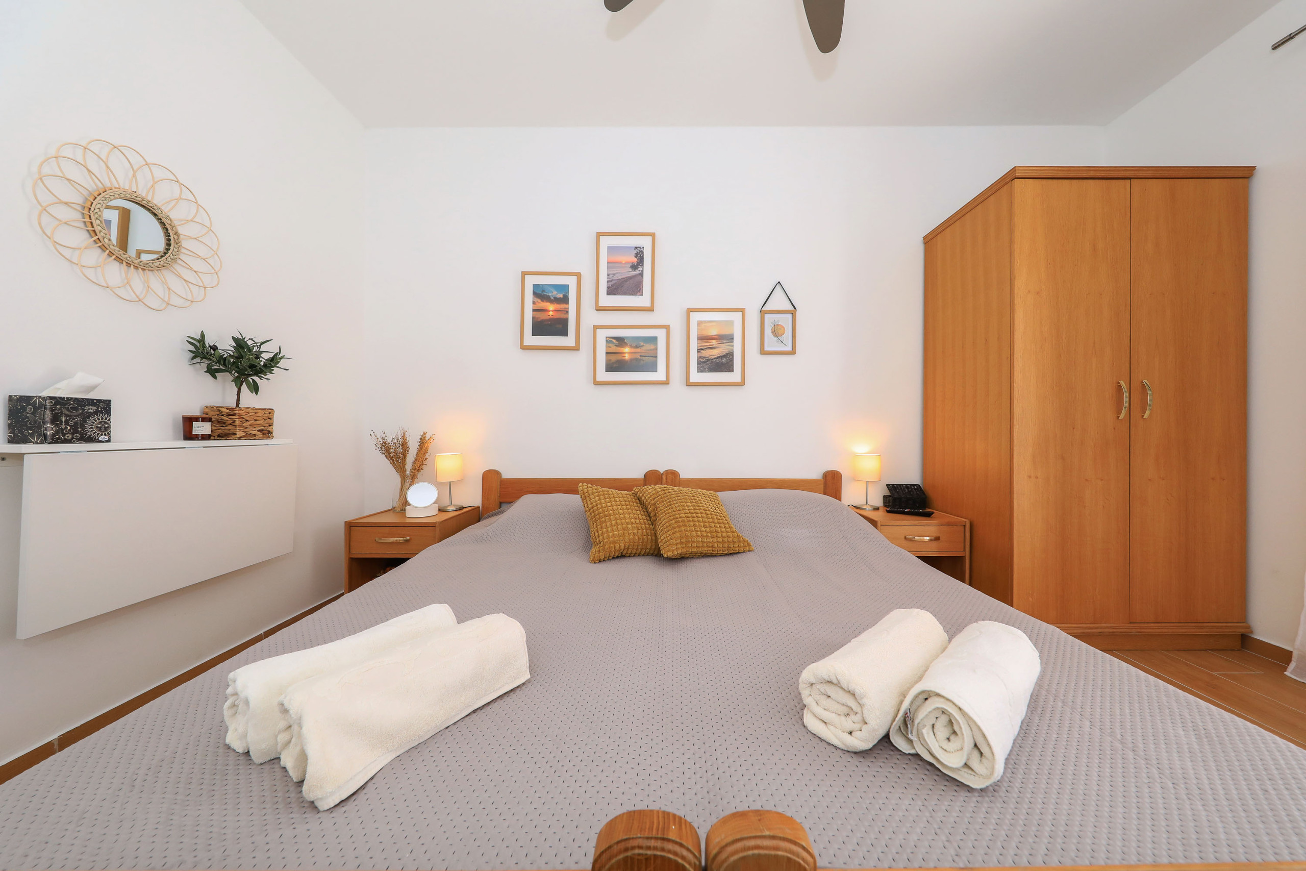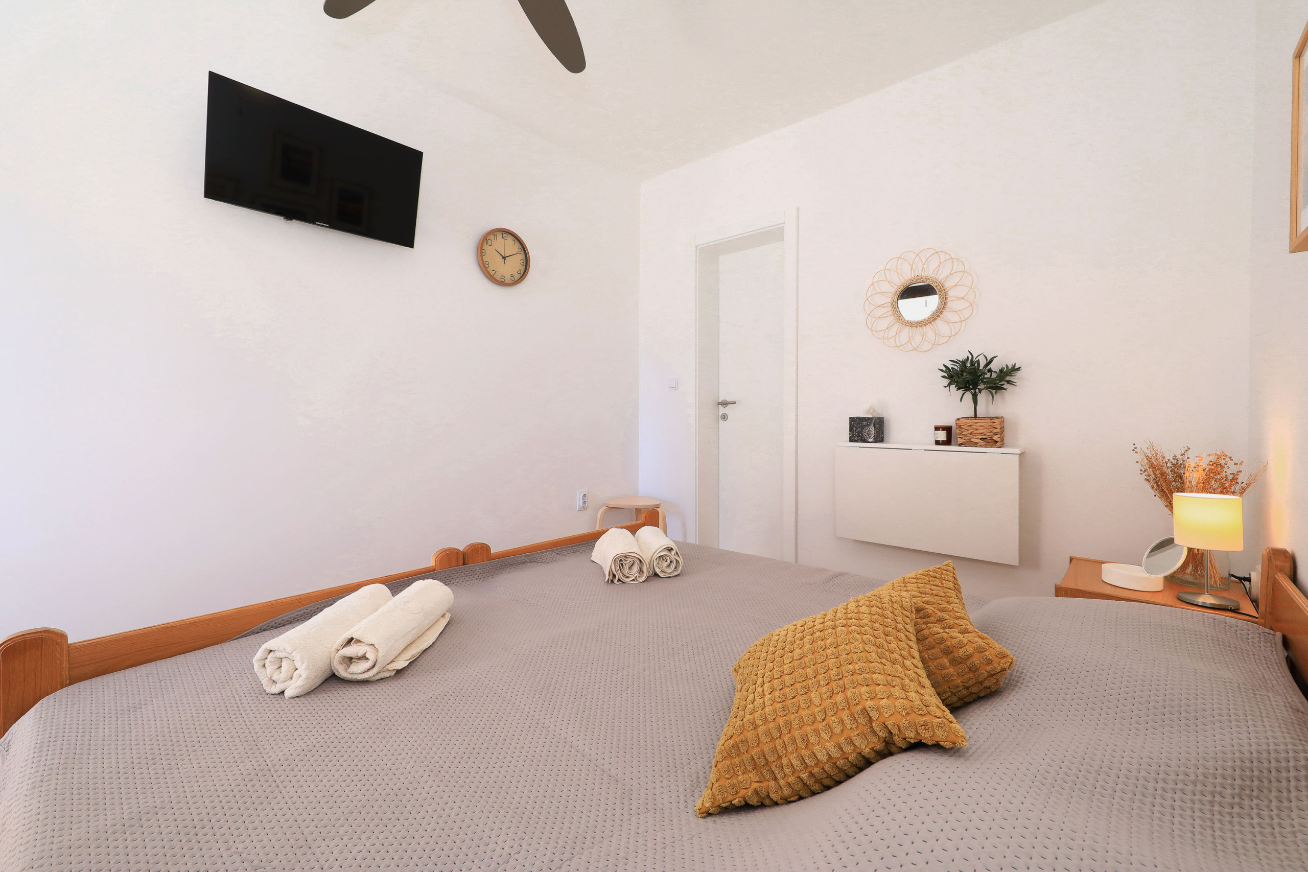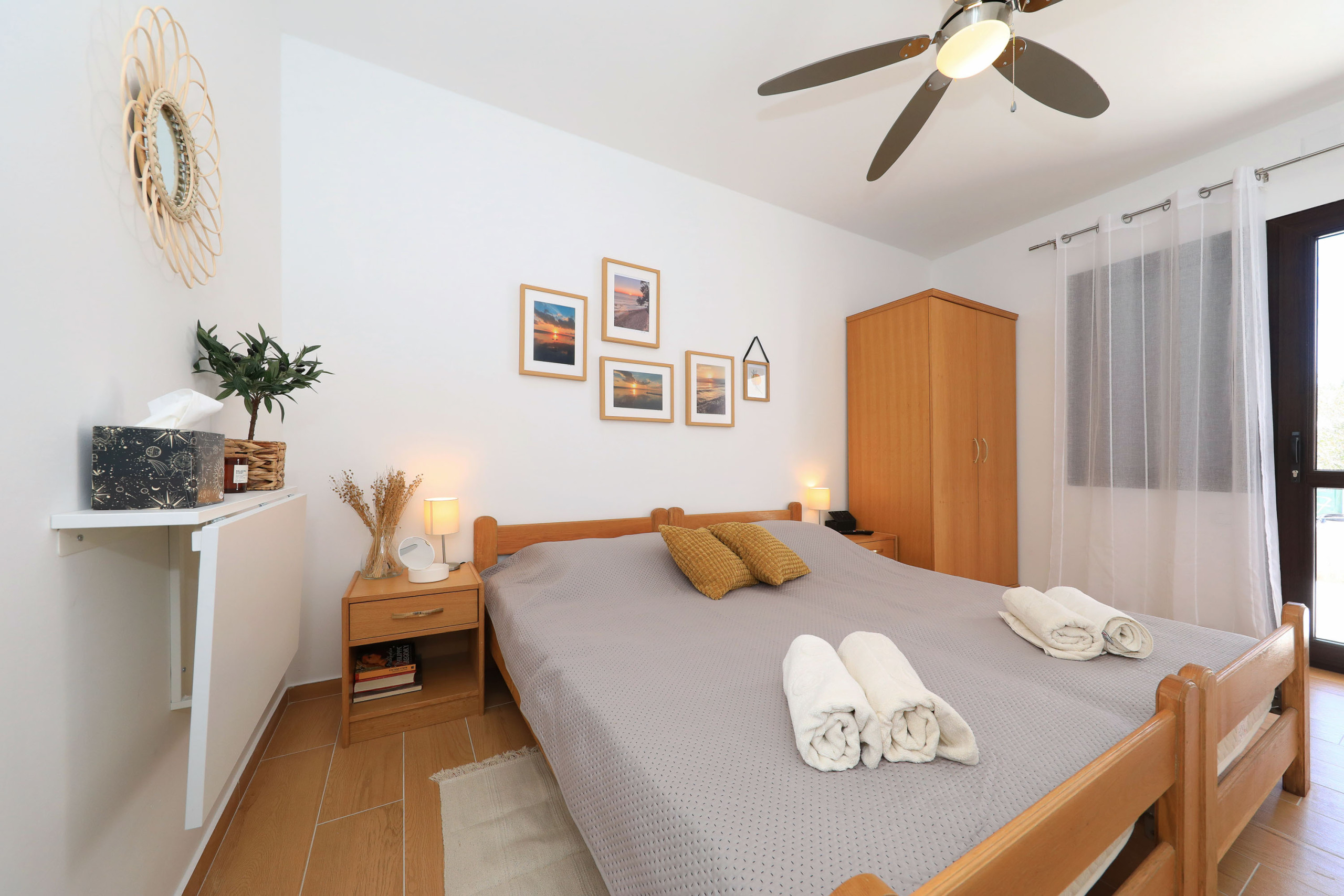Das Zimmer verfügt über ein komfortables Doppelbett, ein modernes Duschbad sowie einen Mini-Kühlschrank für kleine Erfrischungen. Ein Deckenventilator sorgt auch an warmen Sommertagen für angenehme Temperaturen.