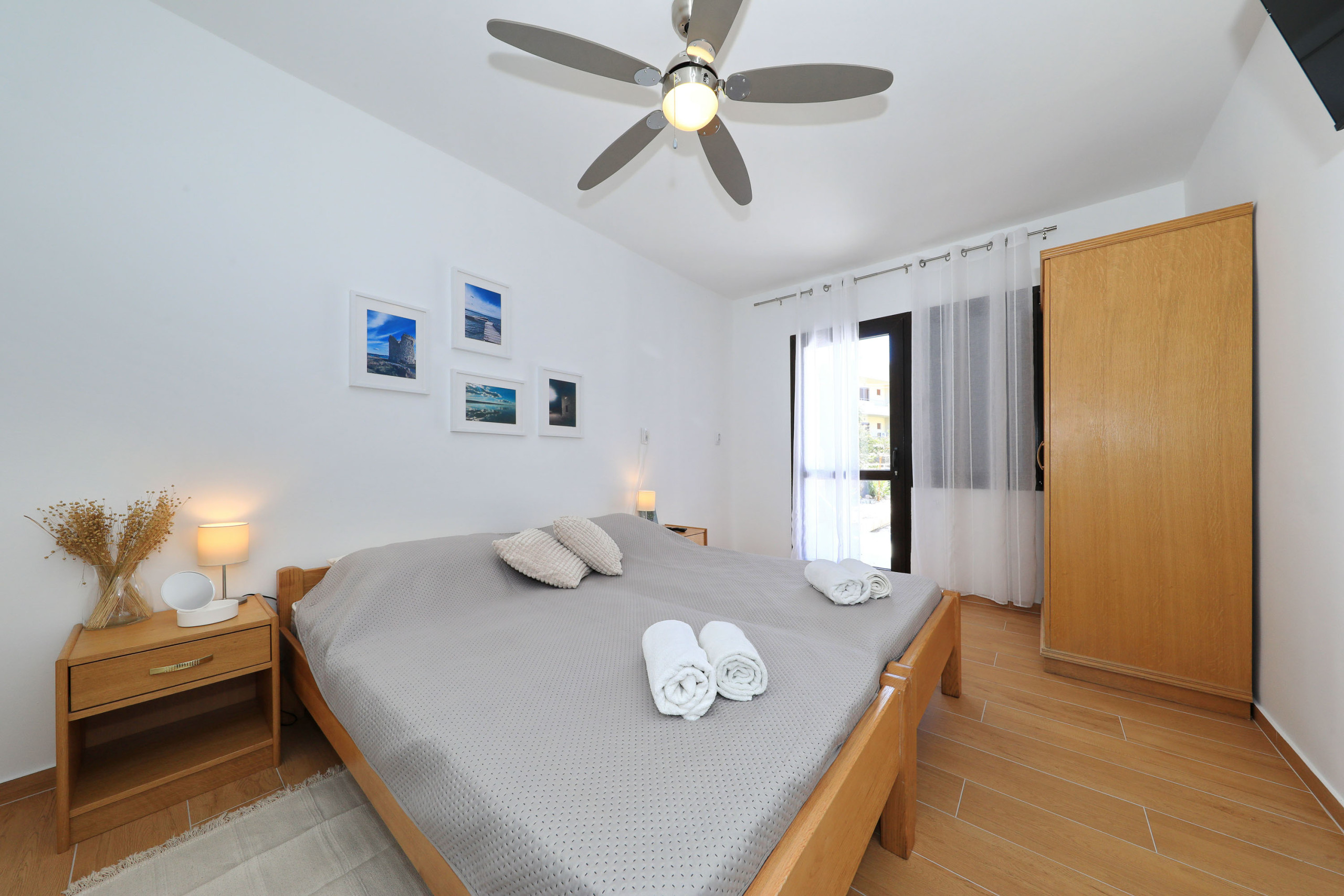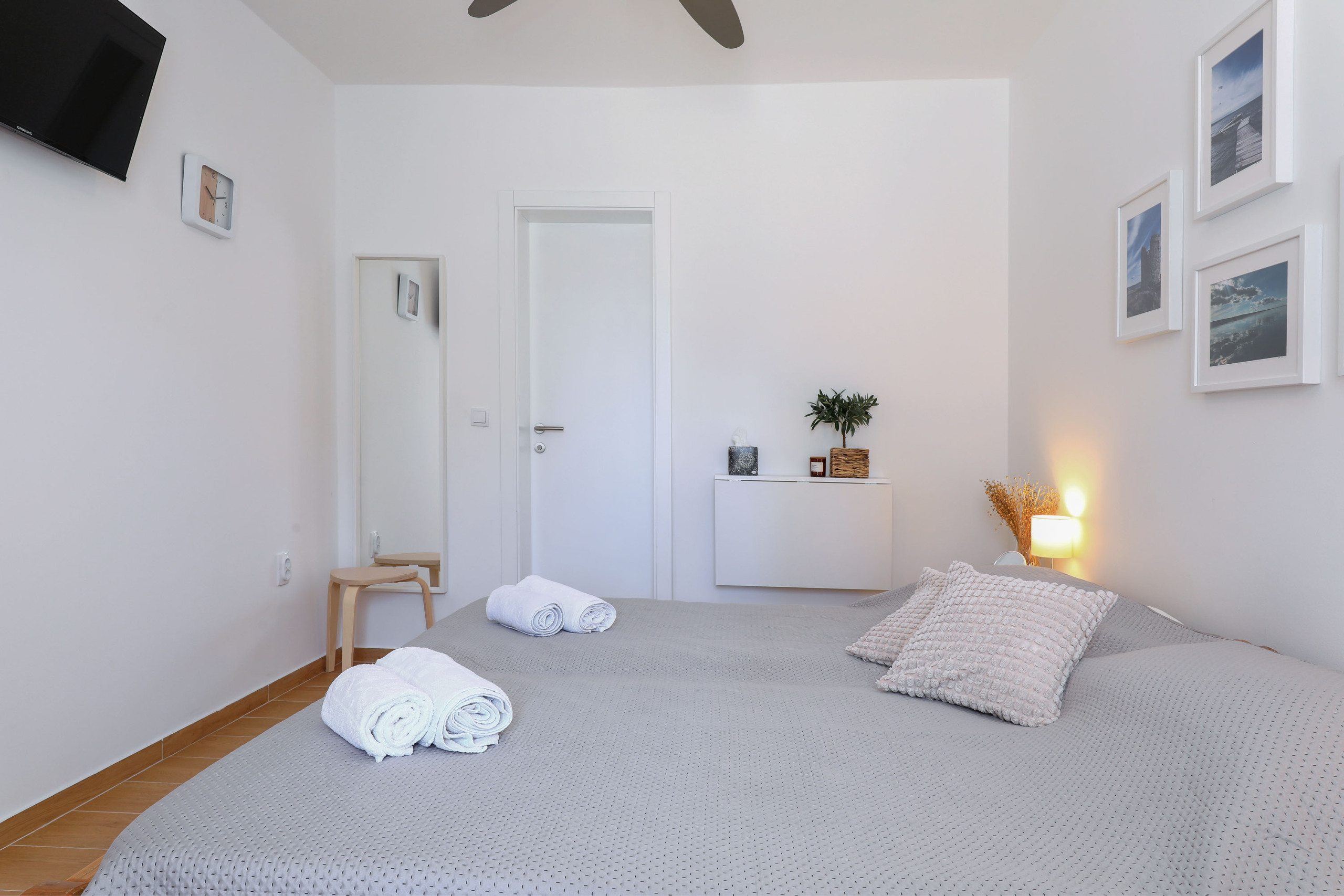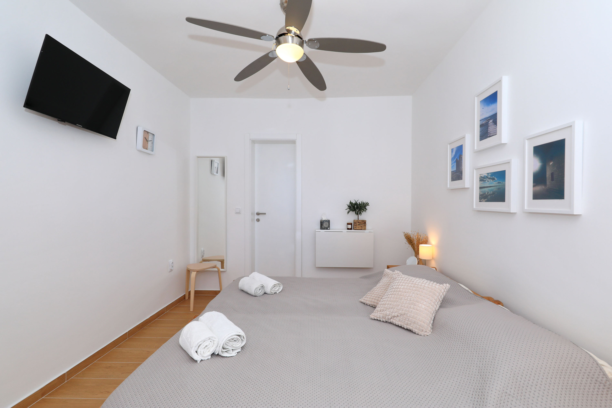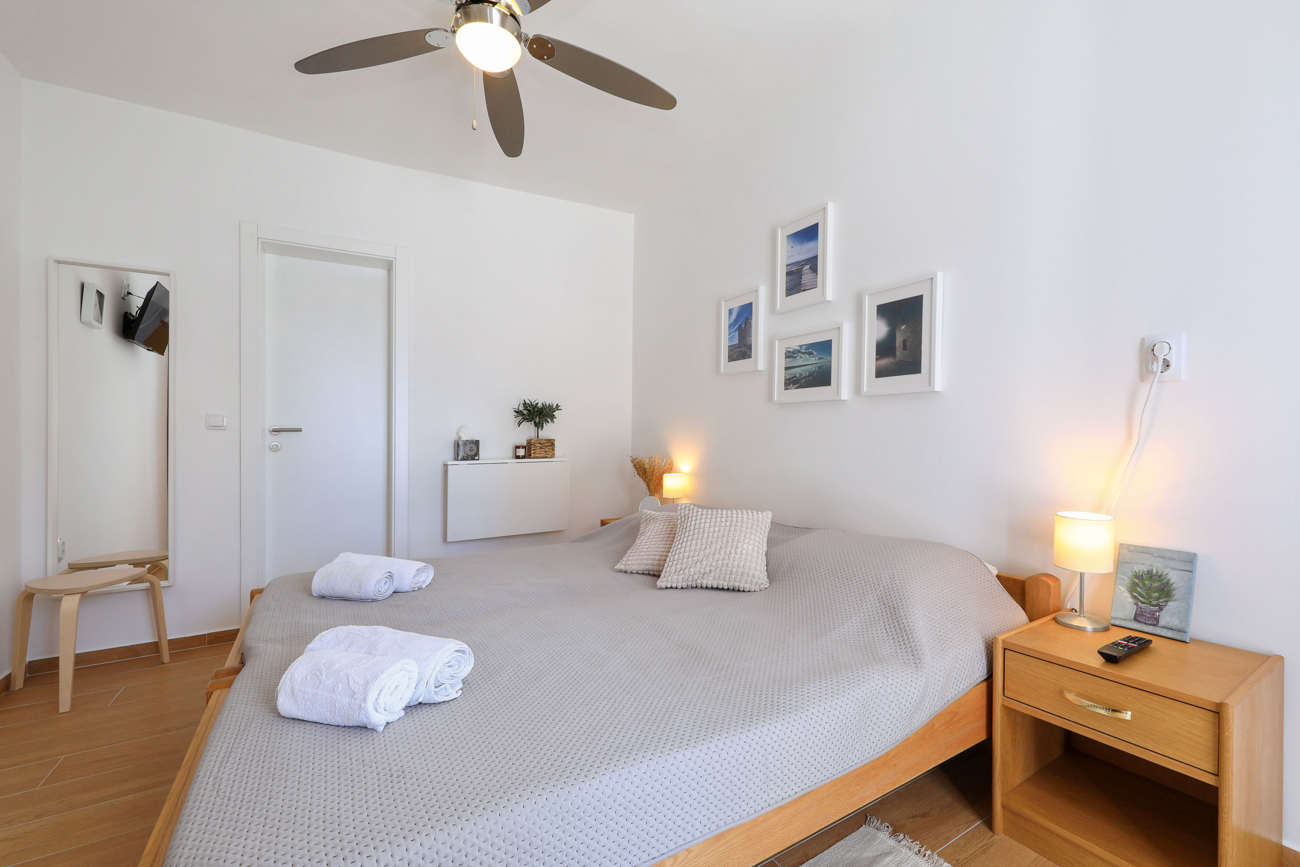 Das Zimmer verfügt über ein komfortables Doppelbett, ein modernes Duschbad sowie einen Mini-Kühlschrank für kleine Erfrischungen. Ein Deckenventilator sorgt auch an warmen Sommertagen für angenehme Temperaturen.